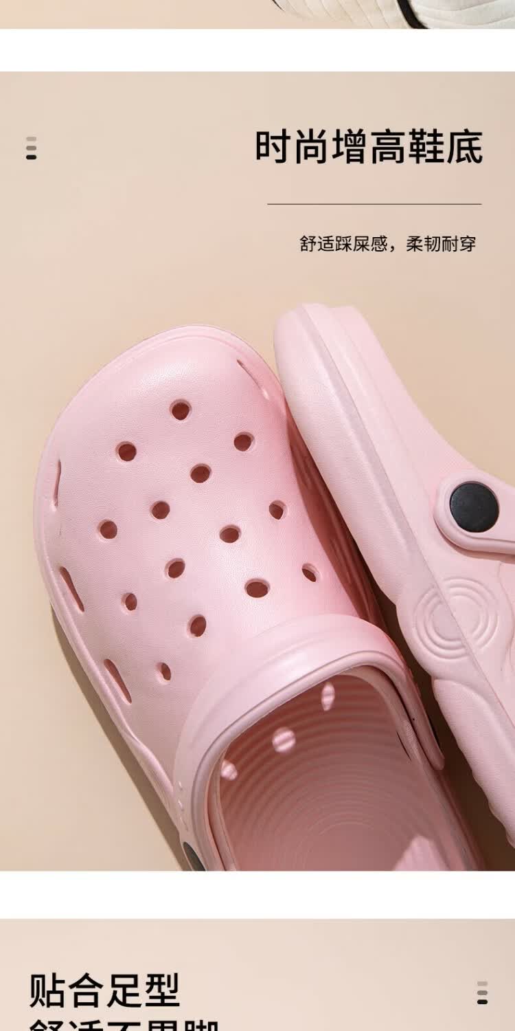 朴西科学倍率发泡纯色洞洞鞋女夏季新款厚底防滑防臭洞洞鞋沙滩外穿 沙色 【加厚轮胎底】 37-38