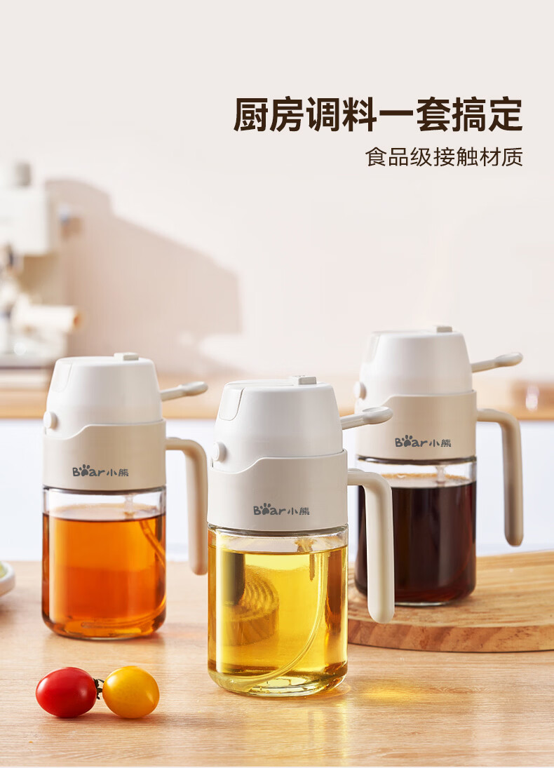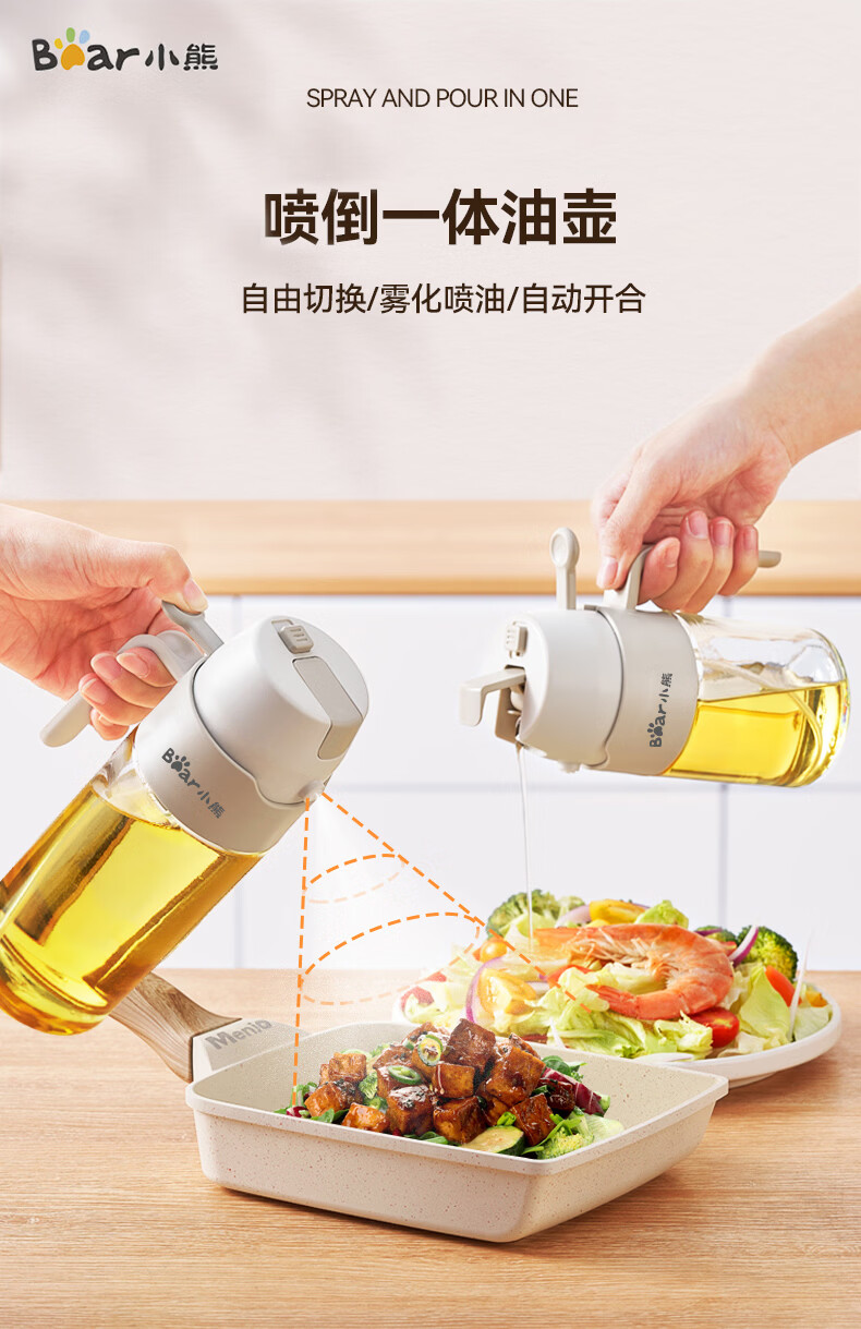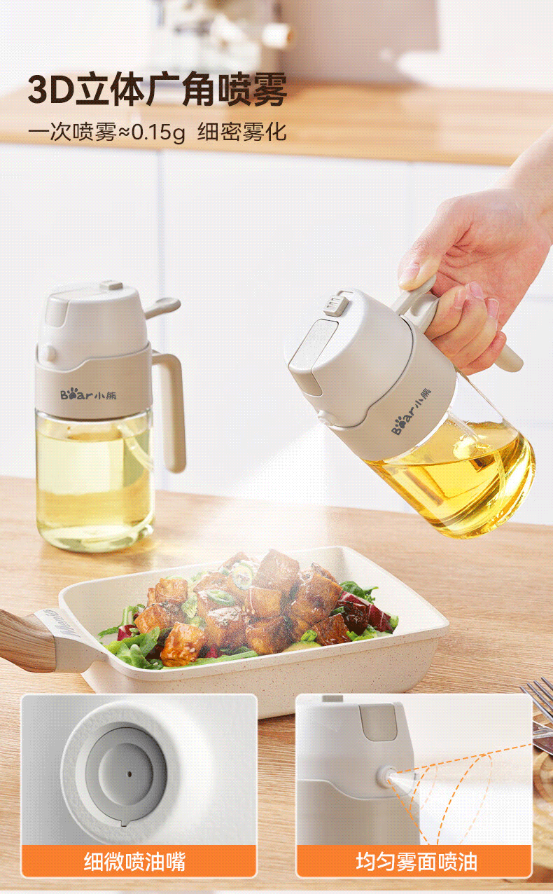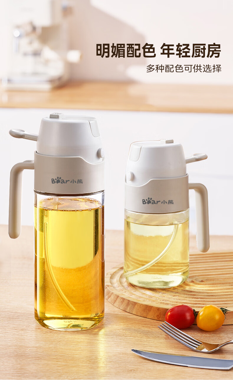 小熊(Bear)油壶喷油壶 倒油喷油一体 玻璃油壶厨房自动开合 雾化不挂油350ml