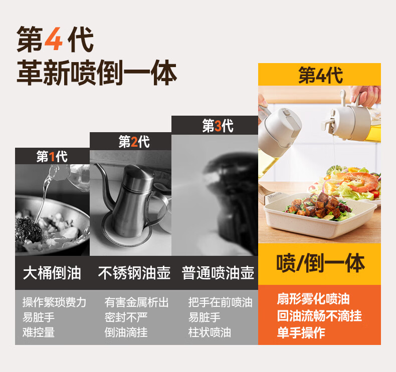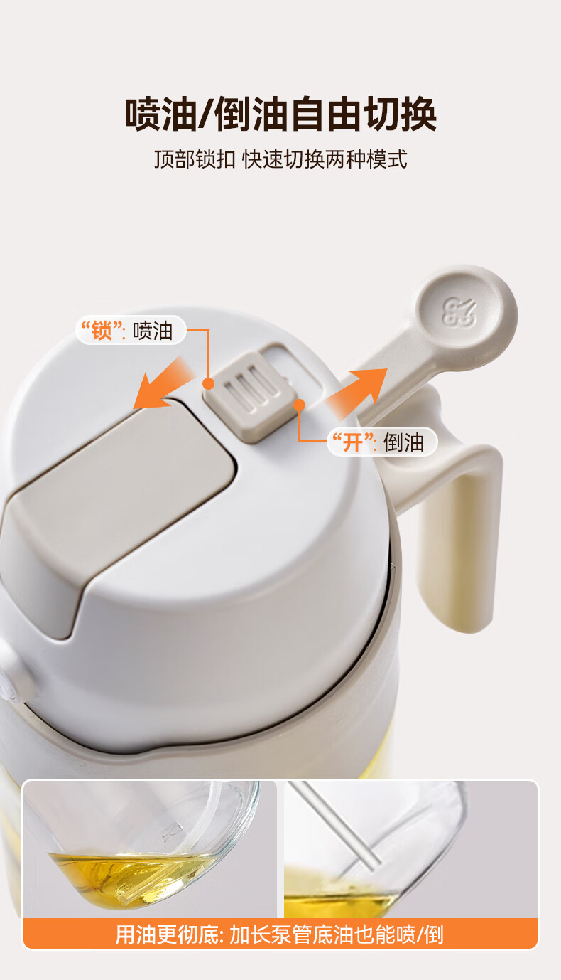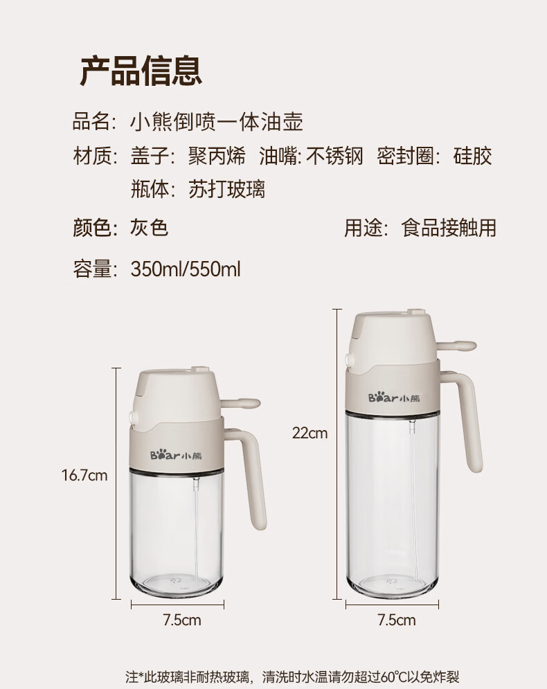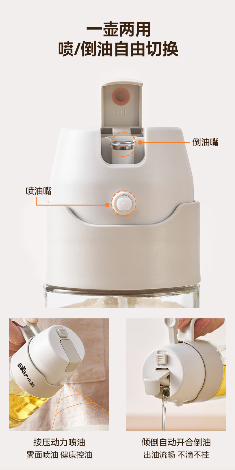小熊(Bear)油壶喷油壶 倒油喷油一体 玻璃油壶厨房自动开合 雾化不挂油350ml