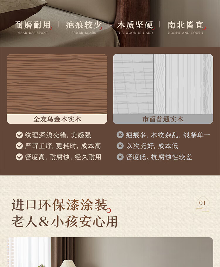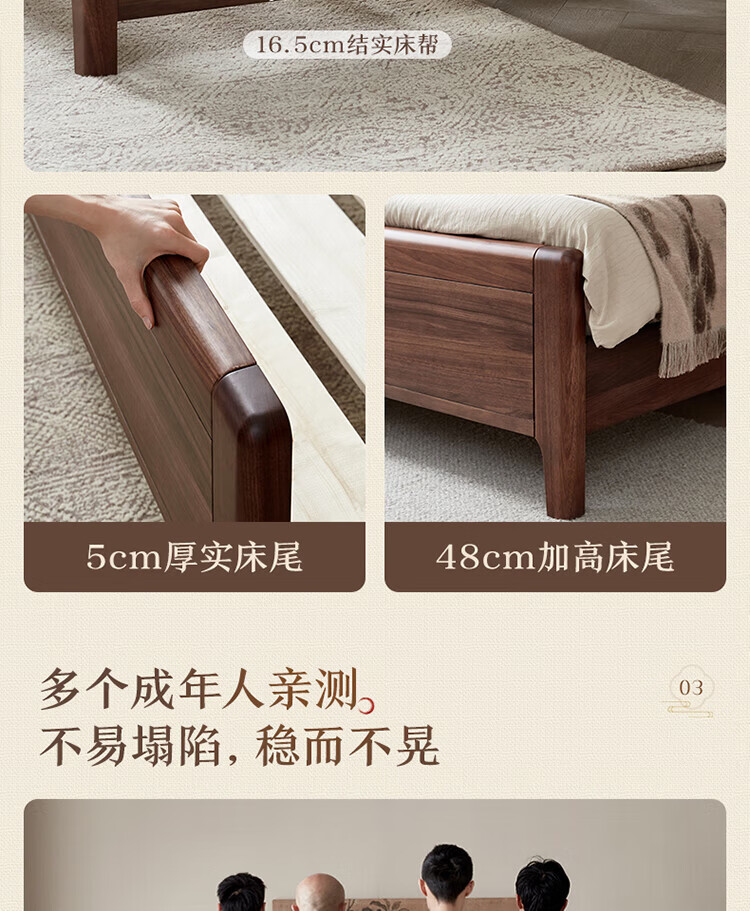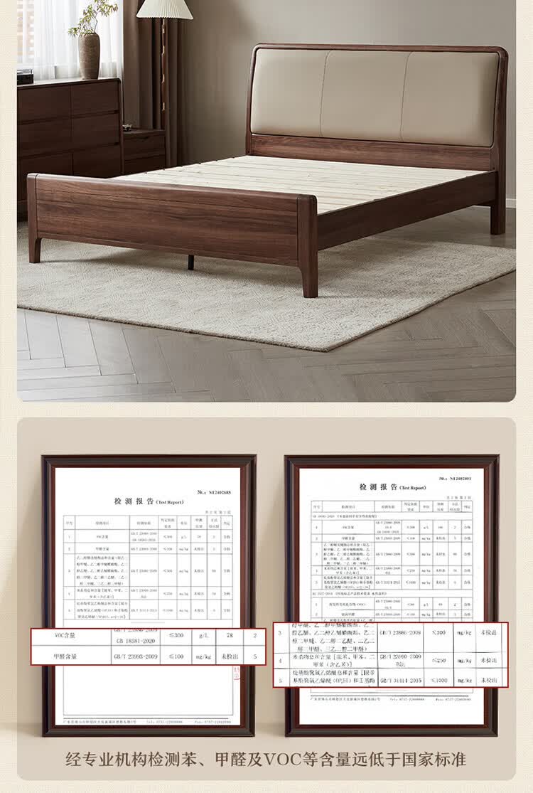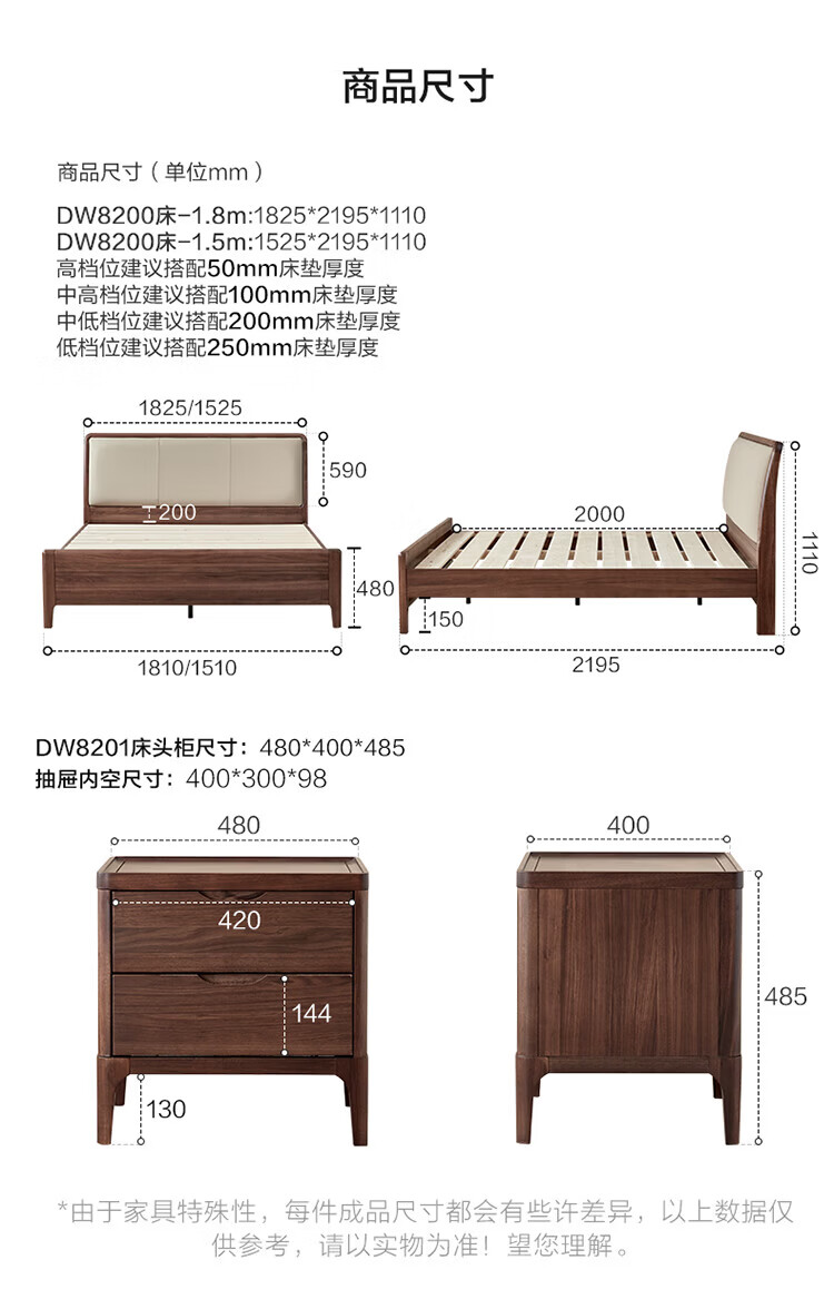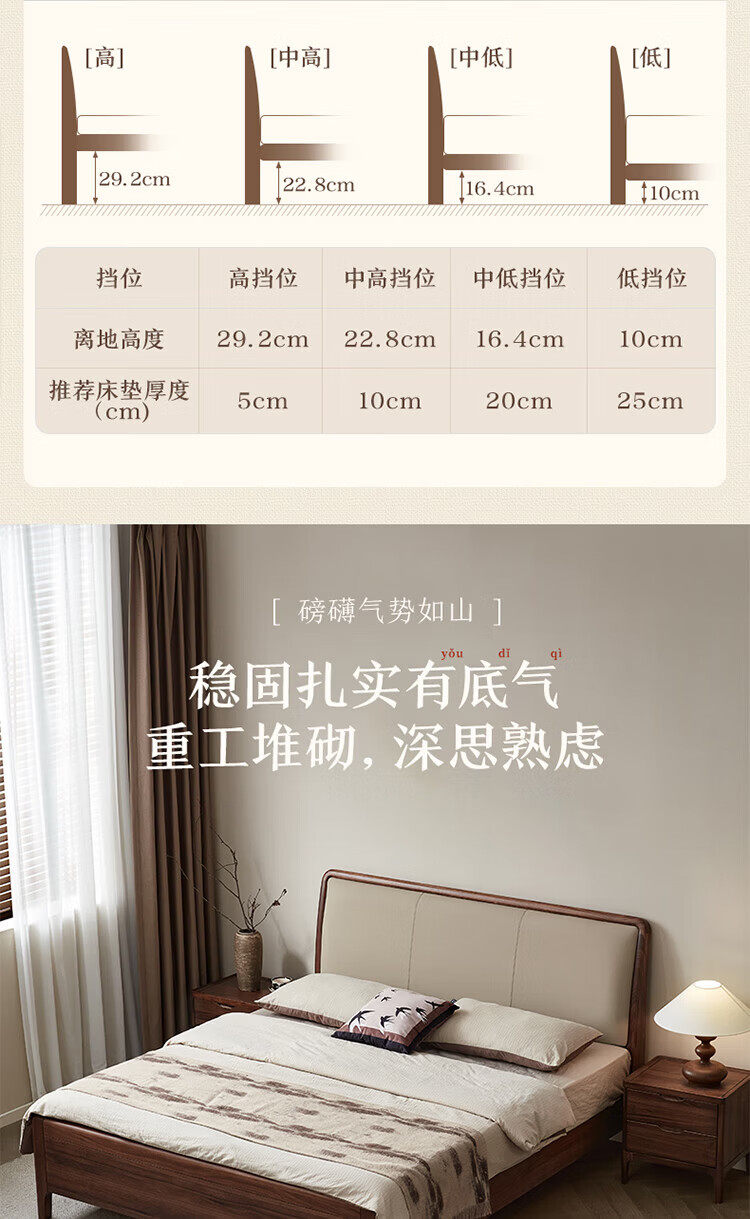 全友家居新中式乌金木实木床1.8x2米主卧软包双人大床高脚床 单床+床垫+床头柜*2 1.8x2米【乌金木带软包+床头四档可调】