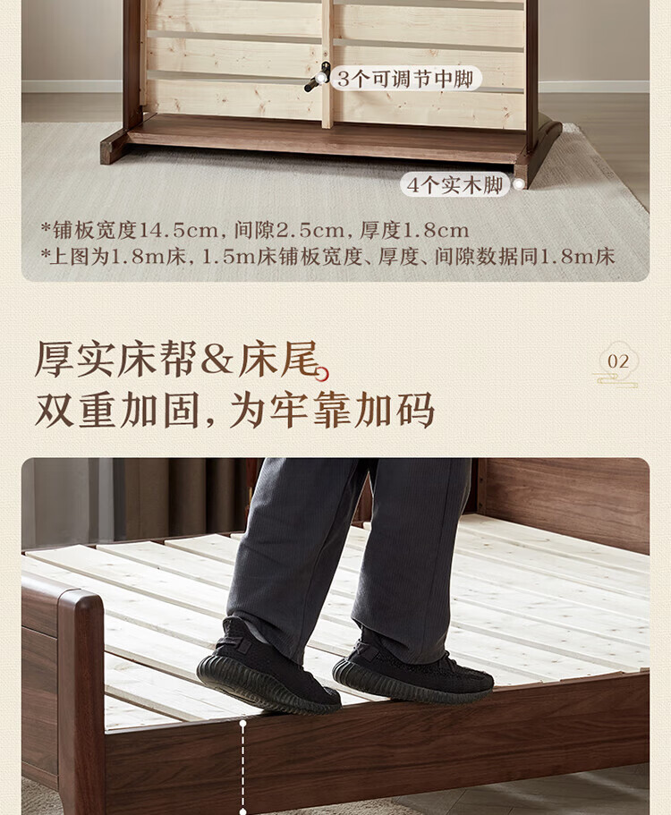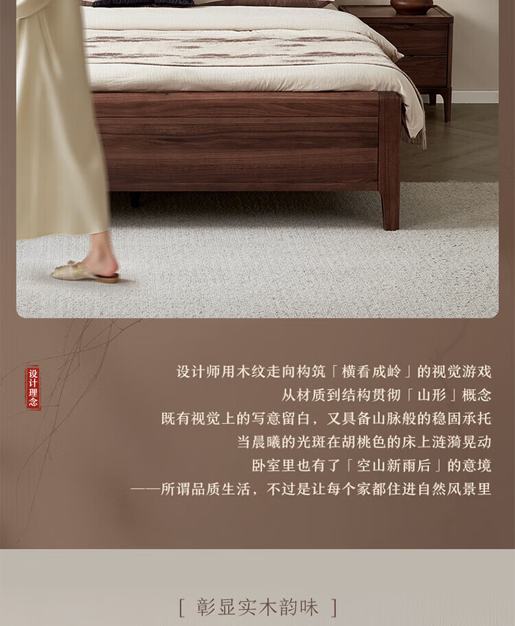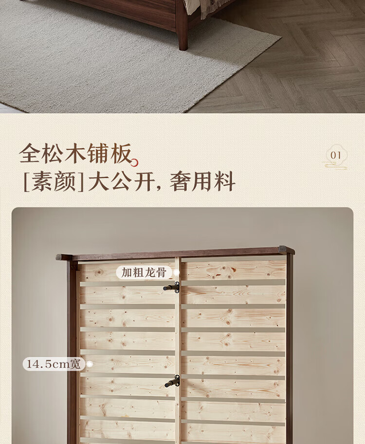全友家居原木风高脚储物双人床2026新款小户型卧室排骨架床和床垫组合 【黑胡桃木风】 1.5米x2米 单床