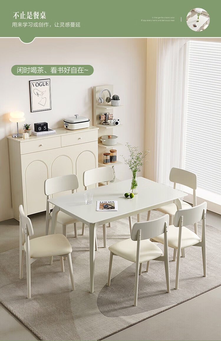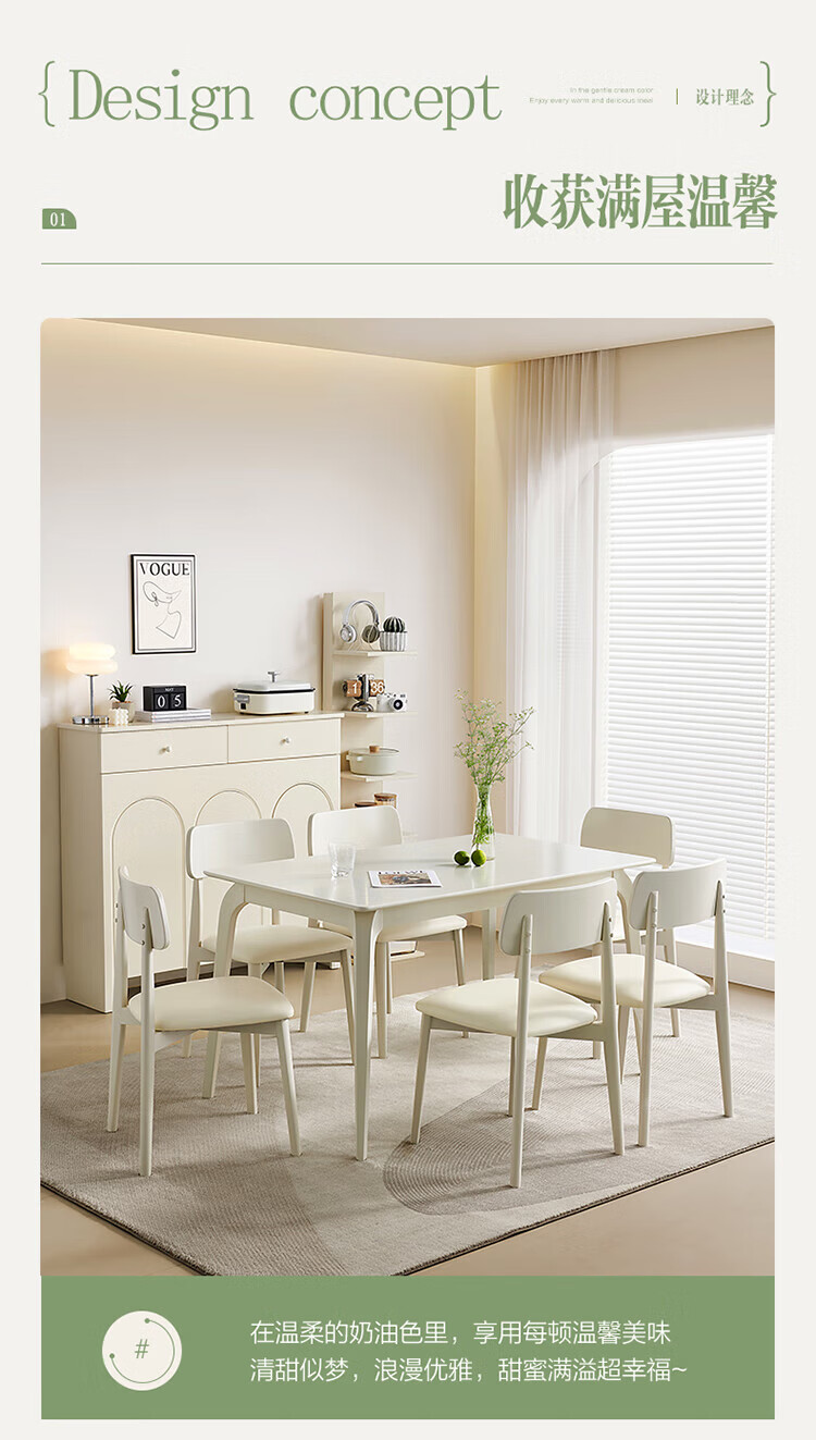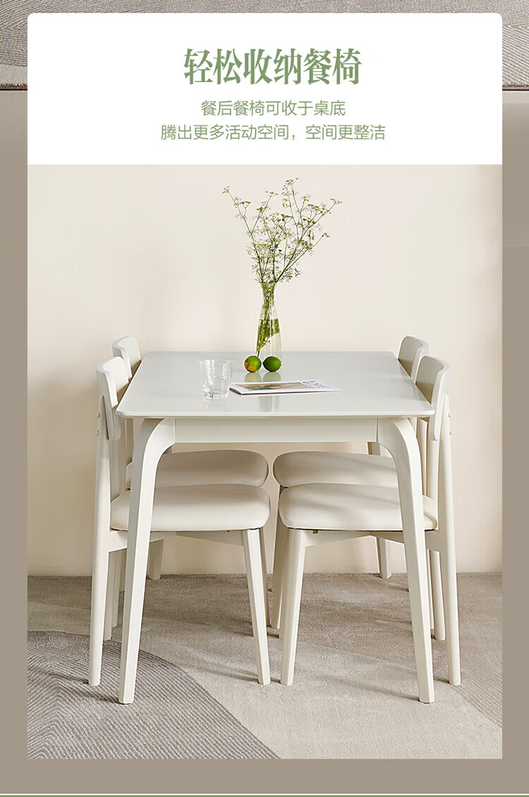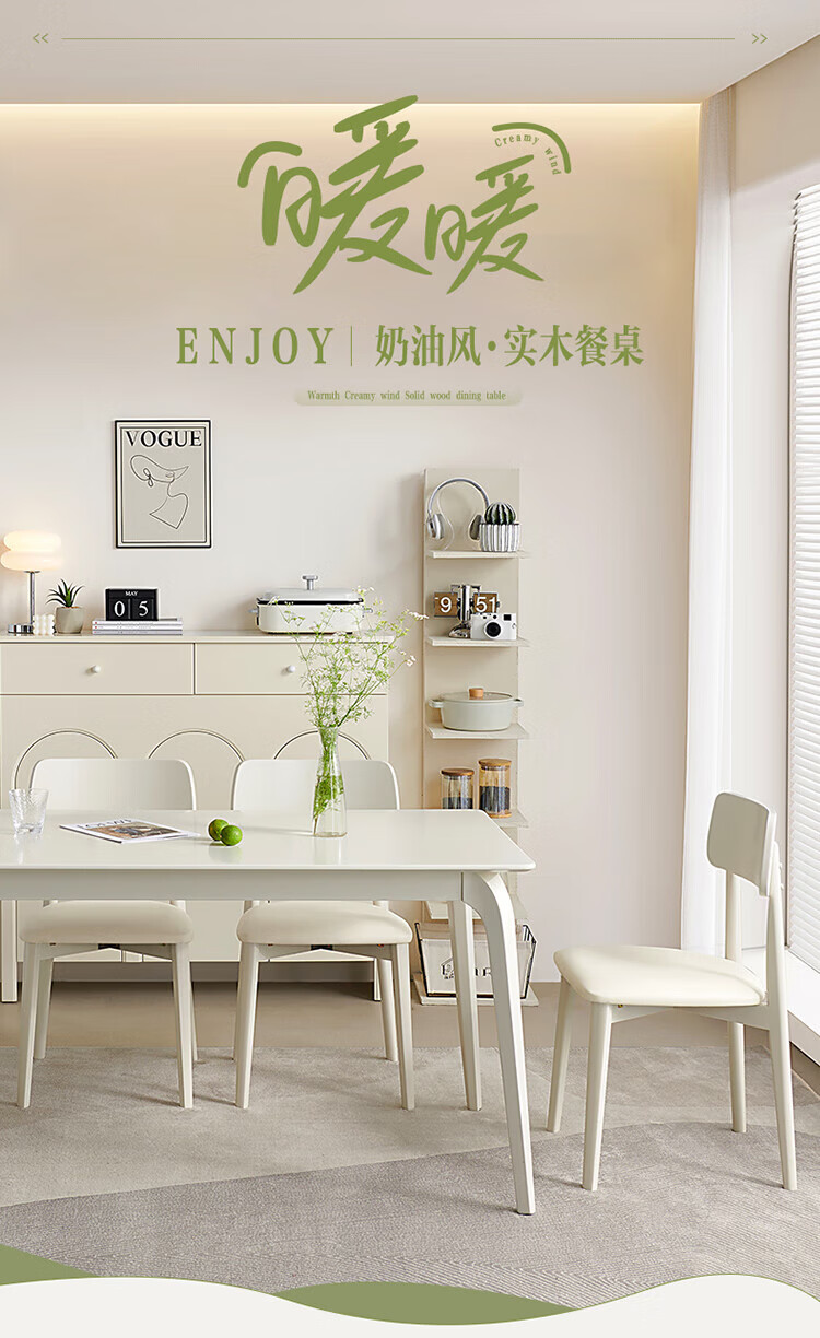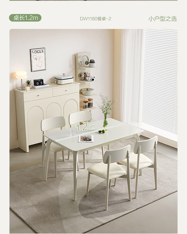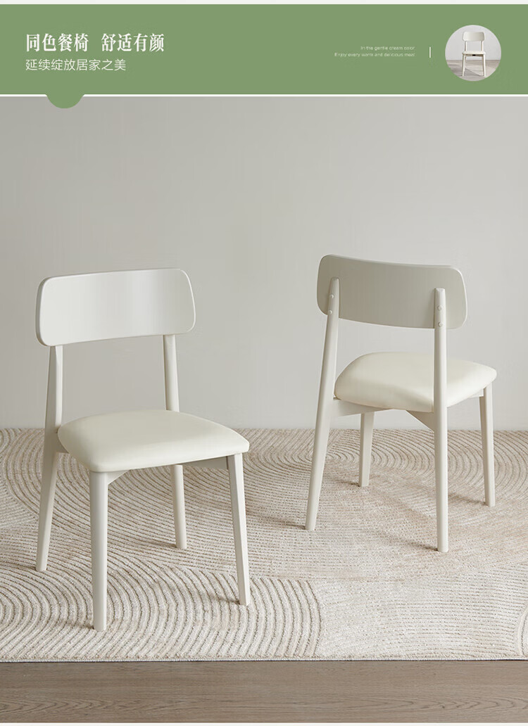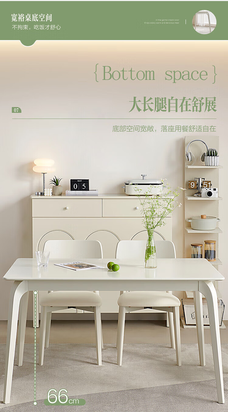 全友家居奶油风餐桌小户型长方形实木腿吃饭桌椅子组合一桌四椅家用 木质台面|1.2m单餐桌