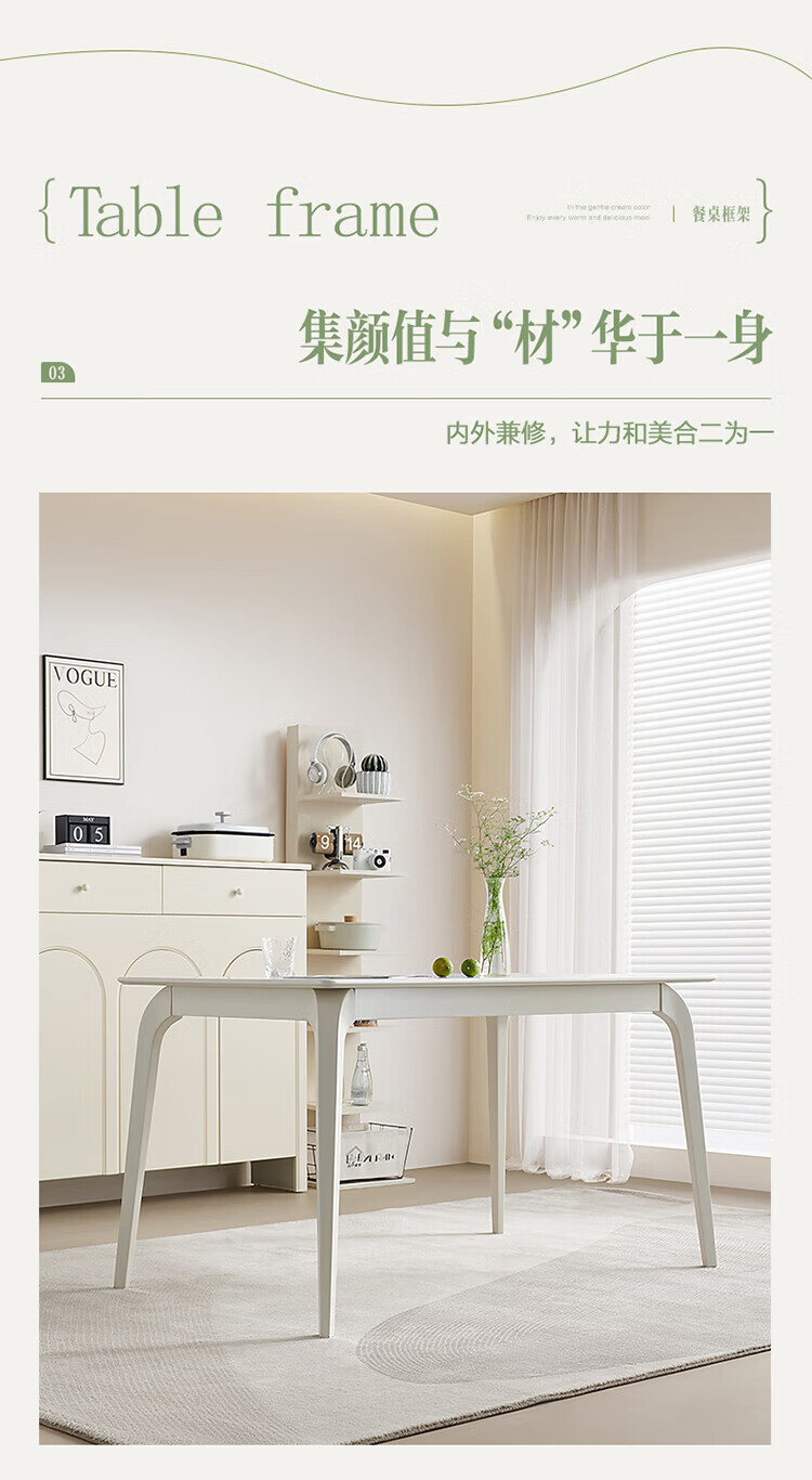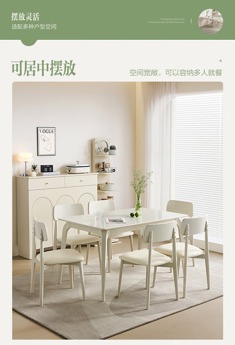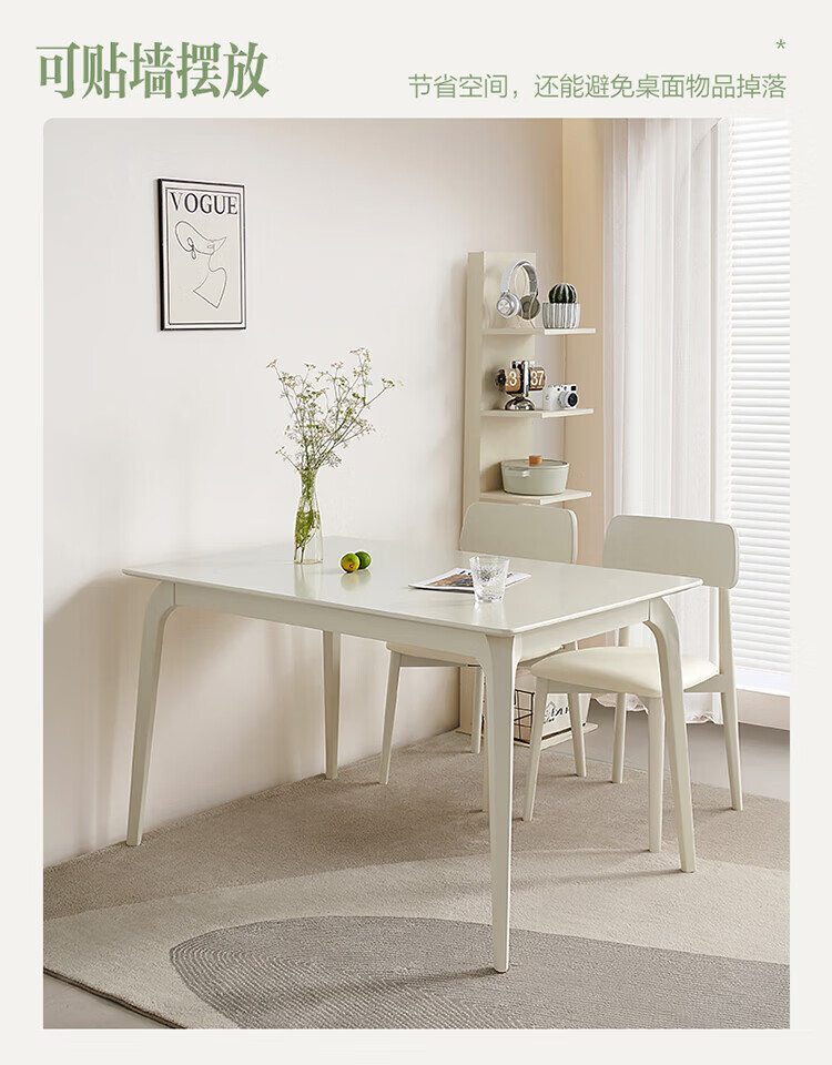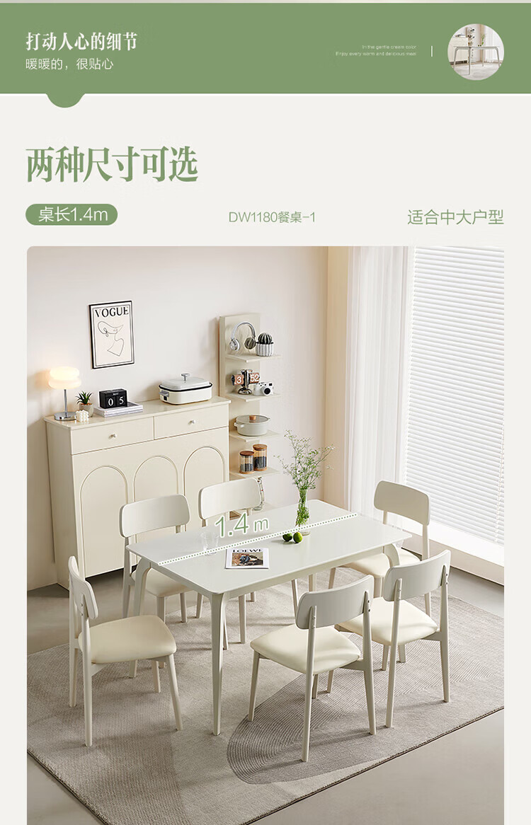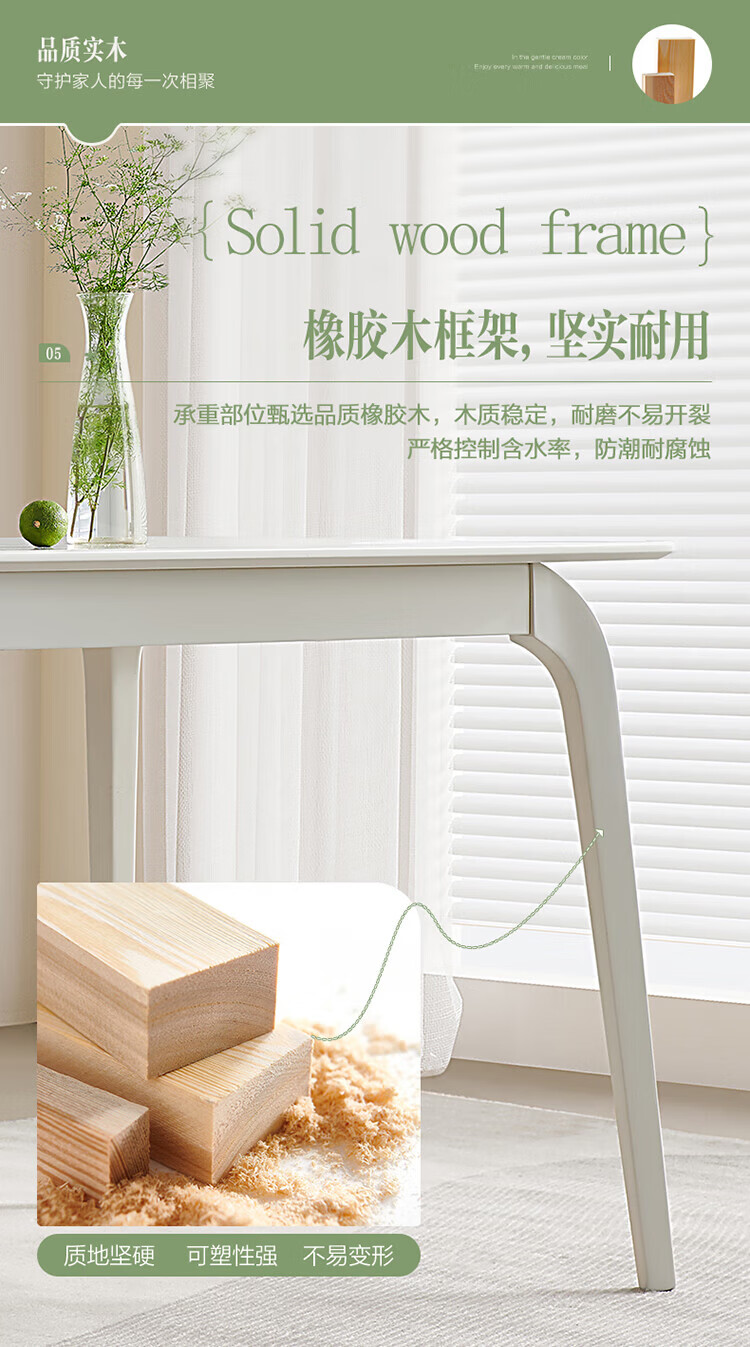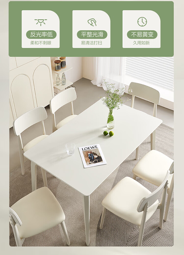 全友家居奶油风餐桌小户型长方形实木腿吃饭桌椅子组合一桌四椅家用 木质台面|1.2m单餐桌