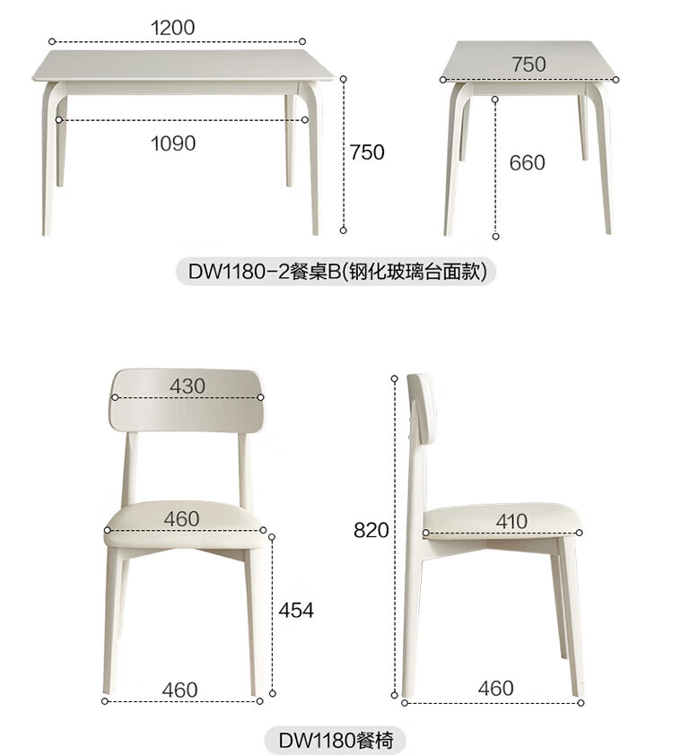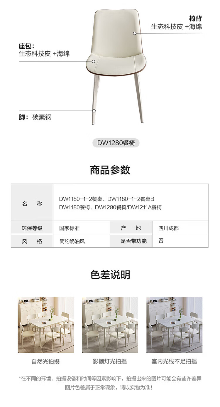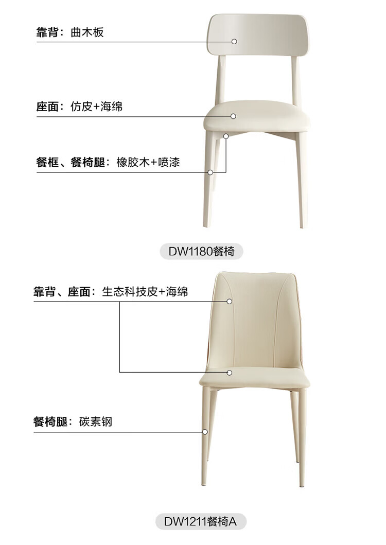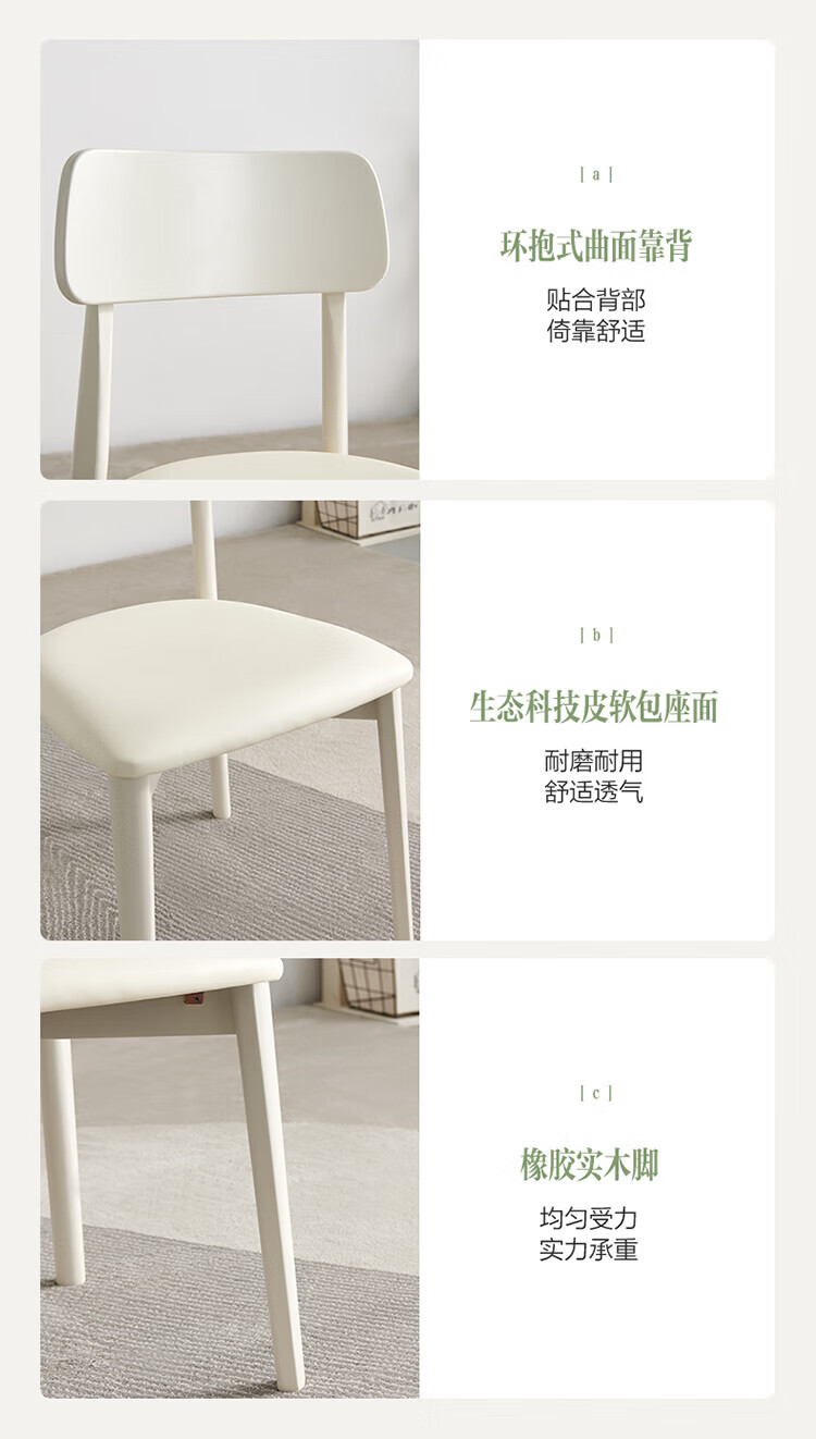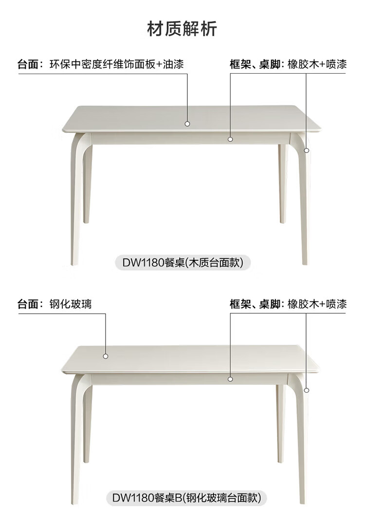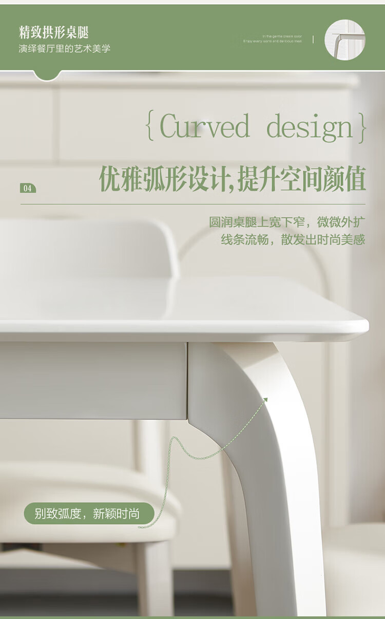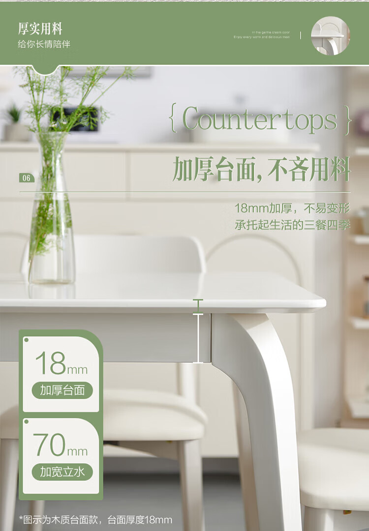 全友家居奶油风餐桌小户型长方形实木腿吃饭桌椅子组合一桌四椅家用 木质台面|1.2m单餐桌