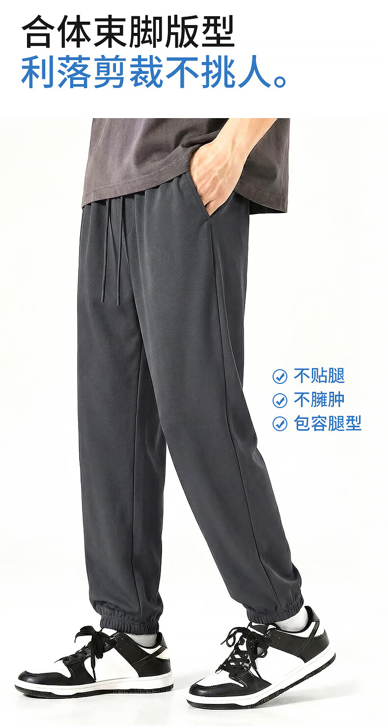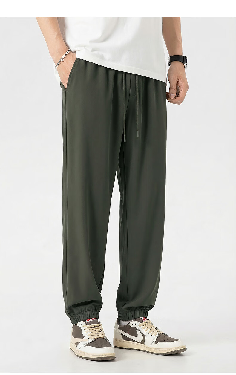 真维斯(Jeanswest)冰丝裤子男款夏季薄款2026新款运动透气速干裤男士束脚裤凉感长裤 军绿 斜四杠_K M