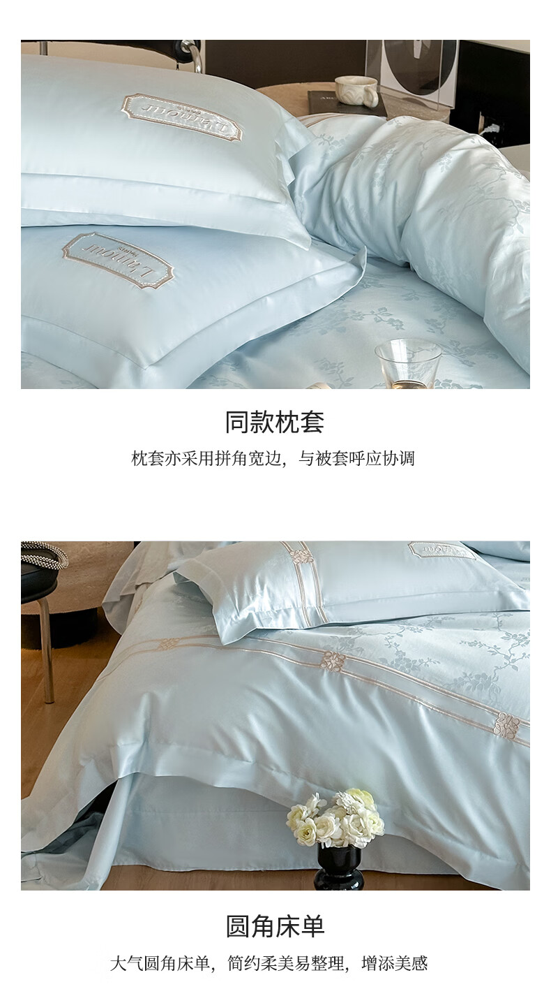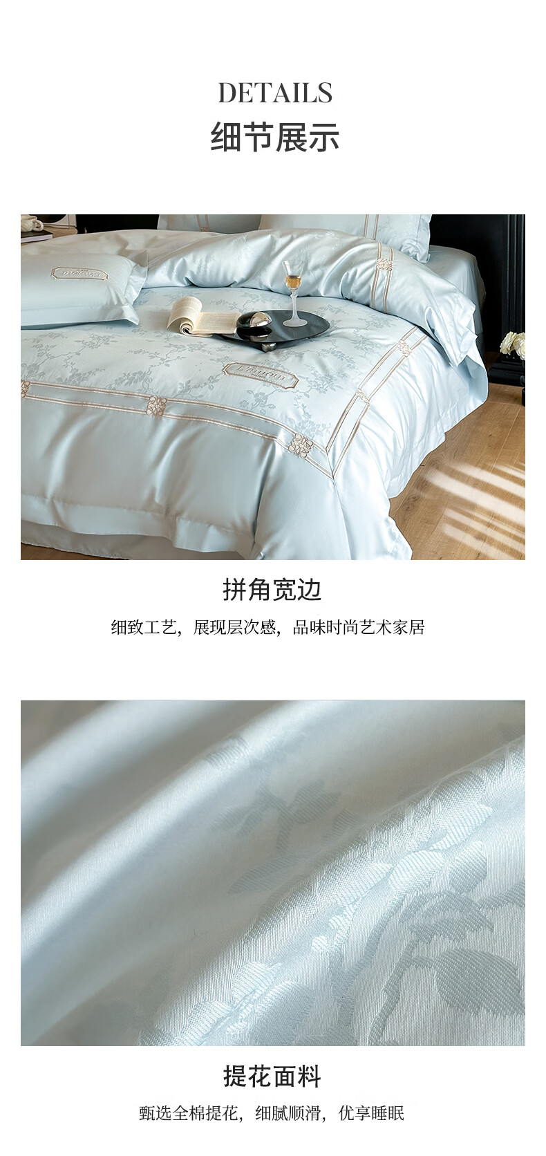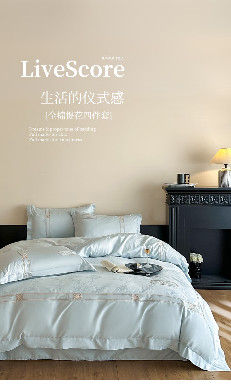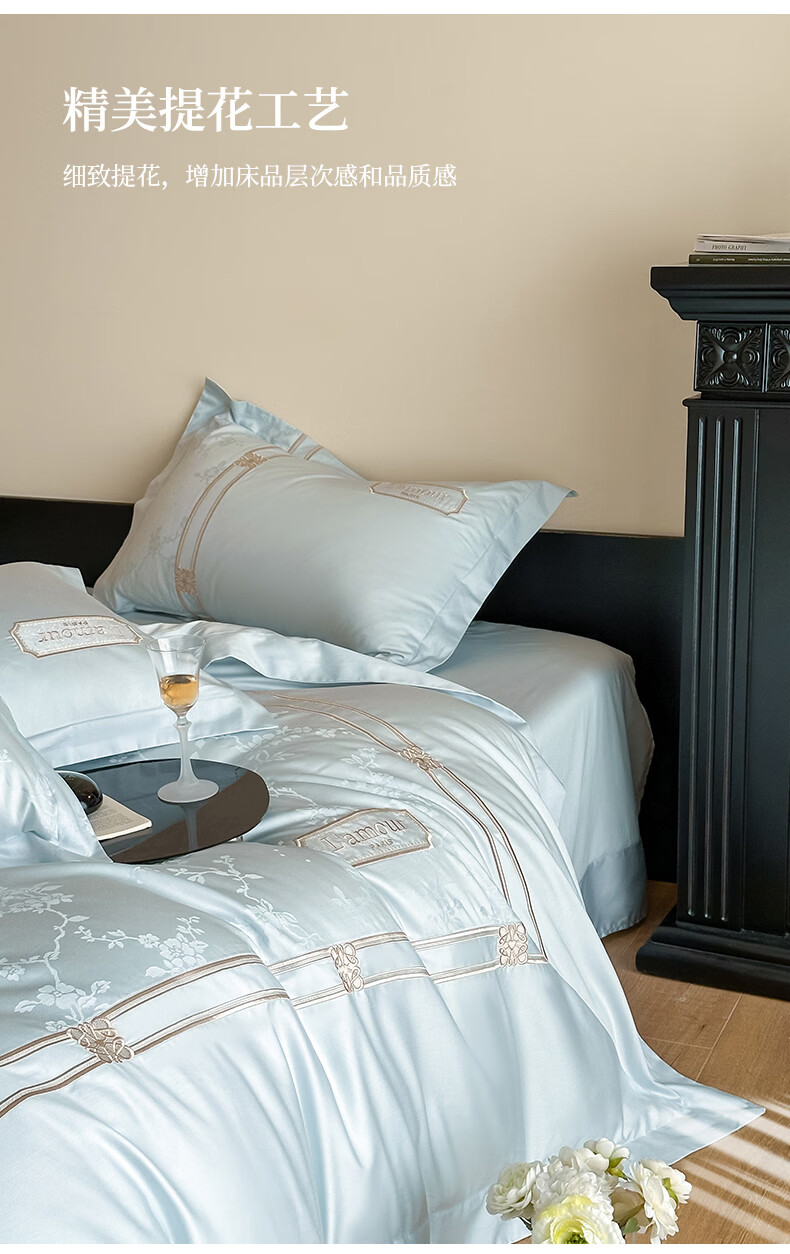 恒源祥床上四件套 100%纯棉50双股四件套轻奢提花四季通用亲肤柔软套件 【50双股全棉】浅香槟 1.5米床 床单款 (被套200*230cm)