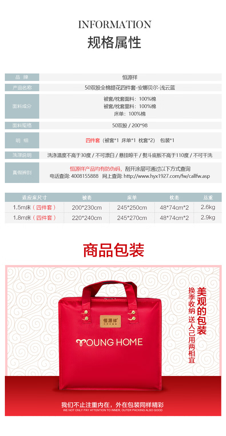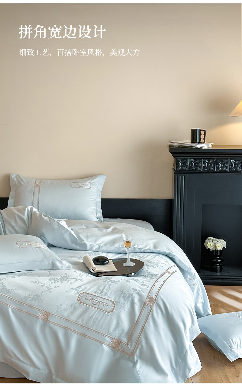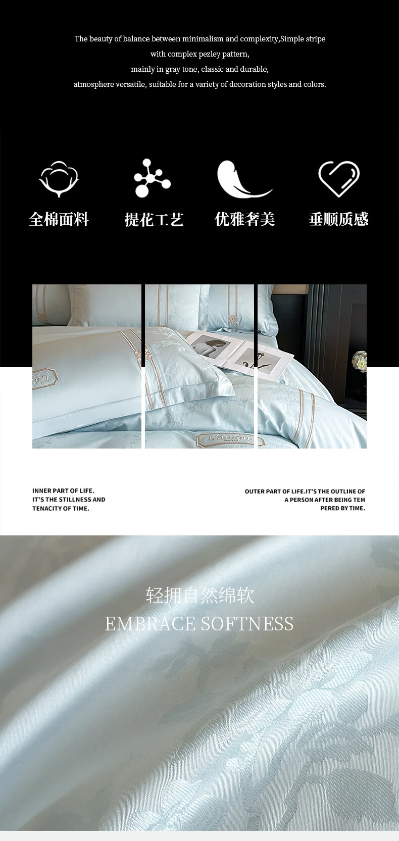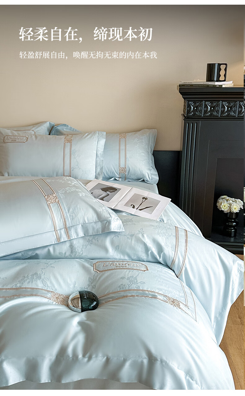 恒源祥床上四件套 100%纯棉50双股四件套轻奢提花四季通用亲肤柔软套件 【50双股全棉】浅香槟 1.5米床 床单款 (被套200*230cm)
