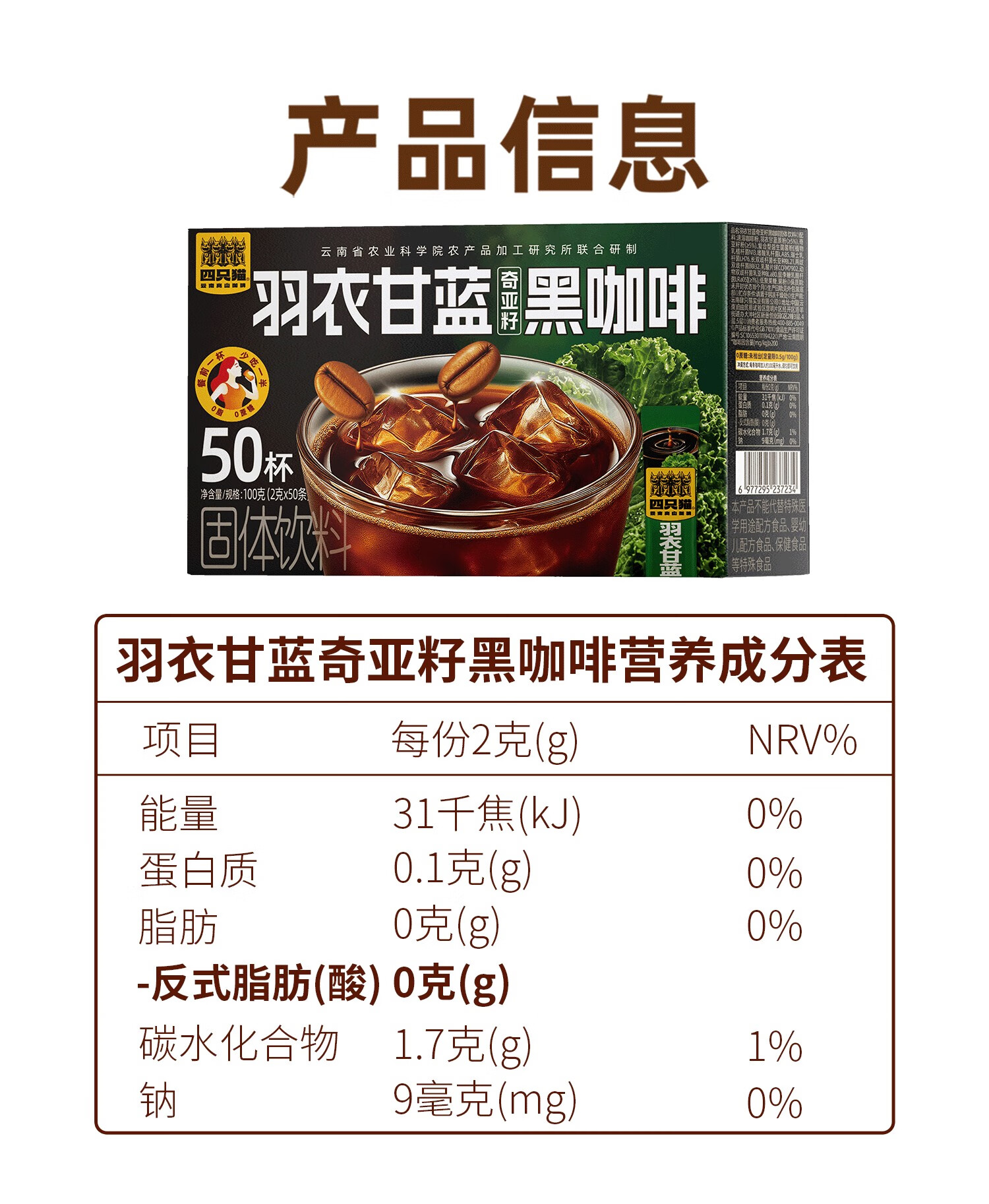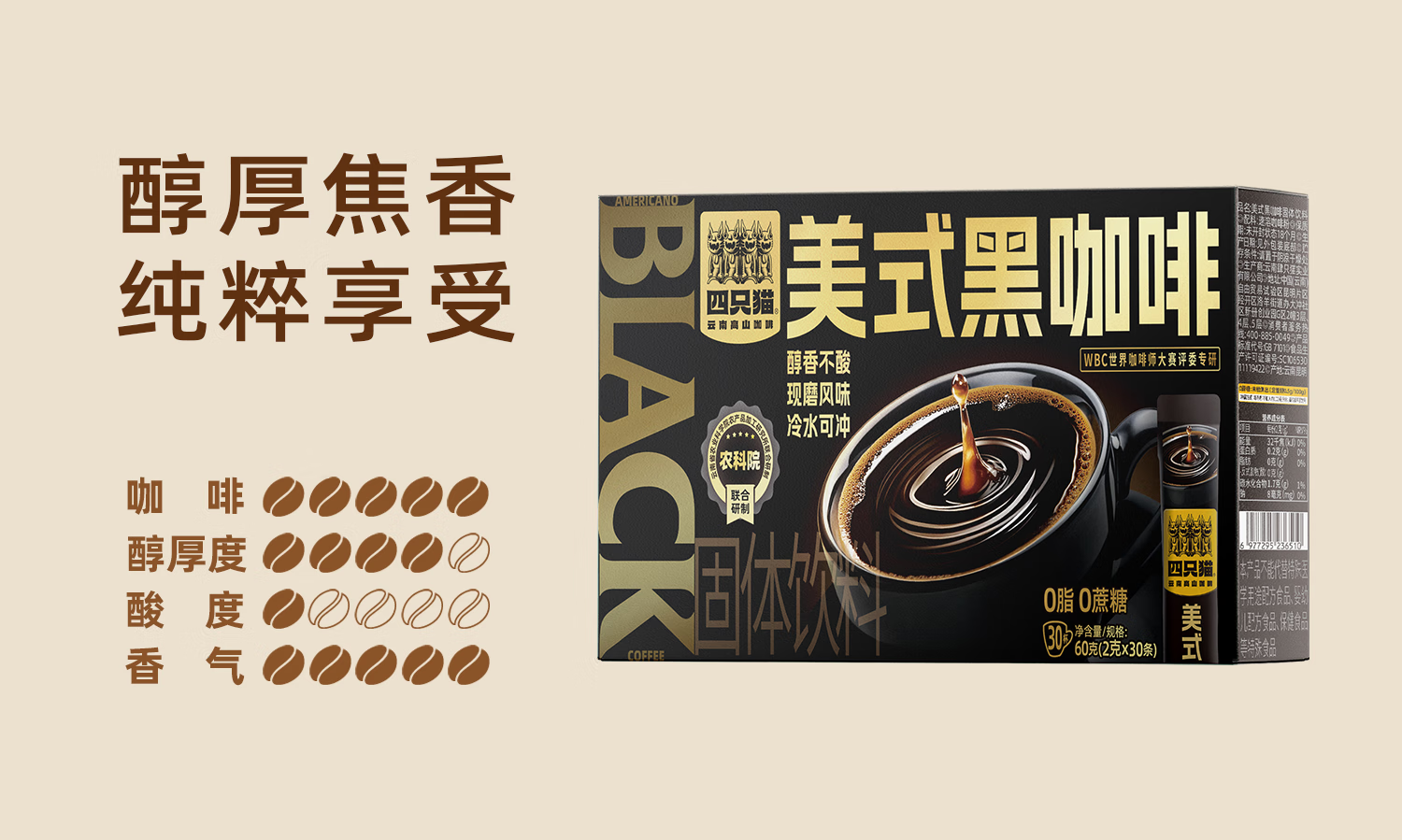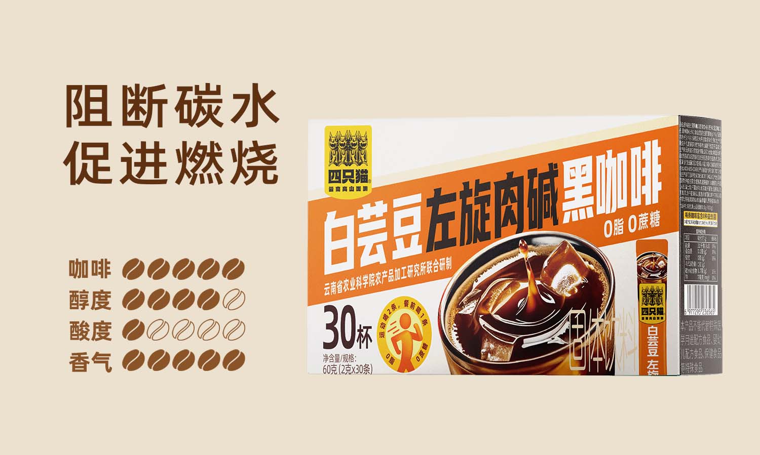 四只猫咖啡西梅羽衣甘蓝白芸豆左旋肉碱美式速溶黑咖啡 0蔗糖 0脂肪 买2送杯 羽衣甘蓝黑咖啡30杯 买2送杯