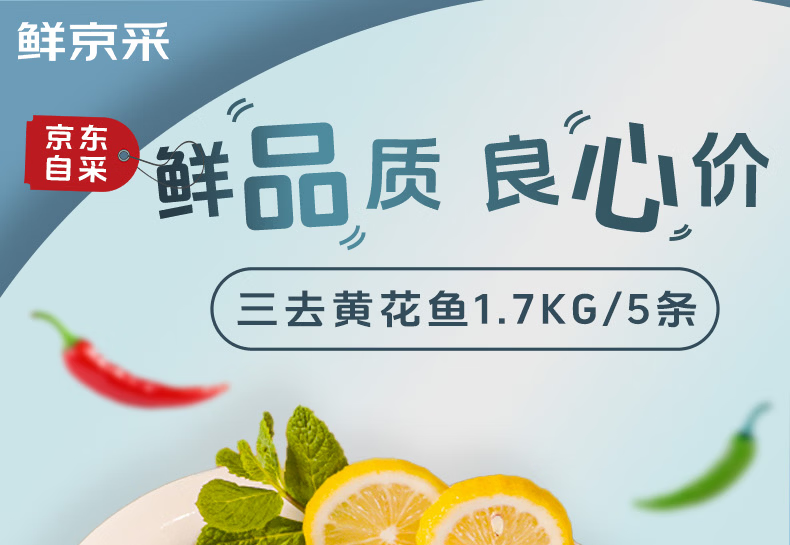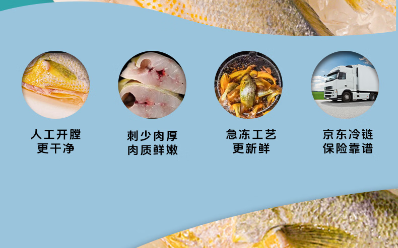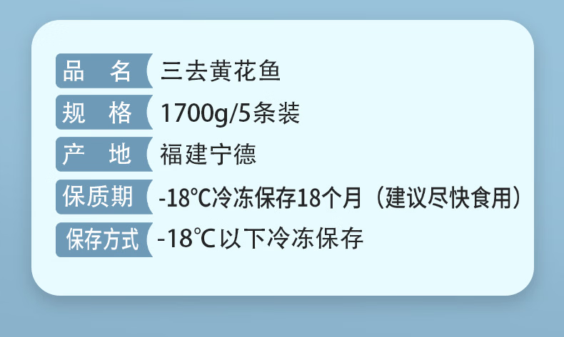鲜京采冷冻三去黄花鱼(宁德大黄鱼)1700g(5条装)礼盒