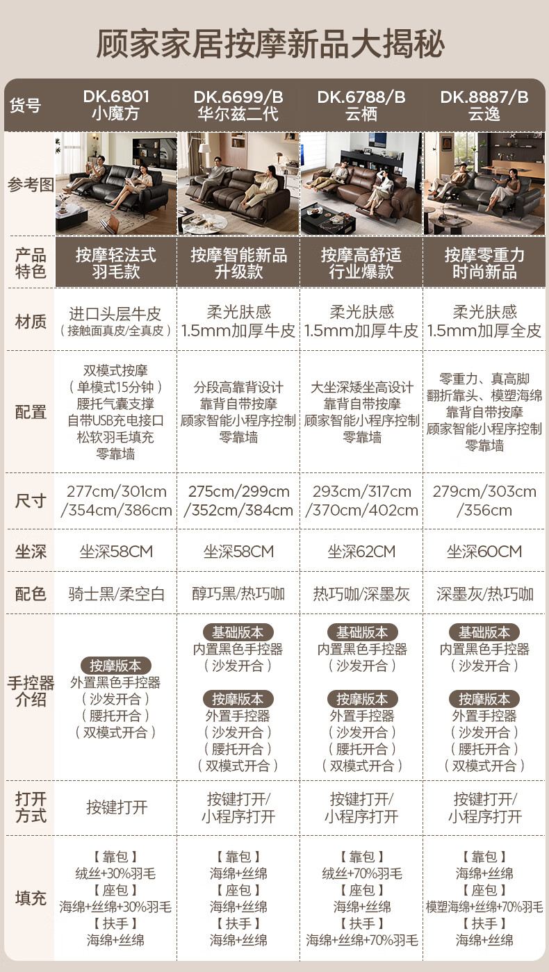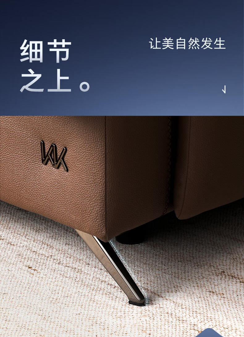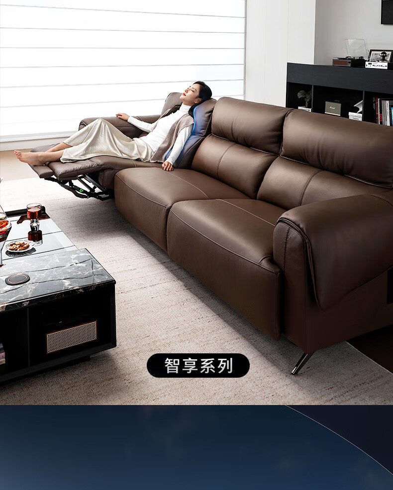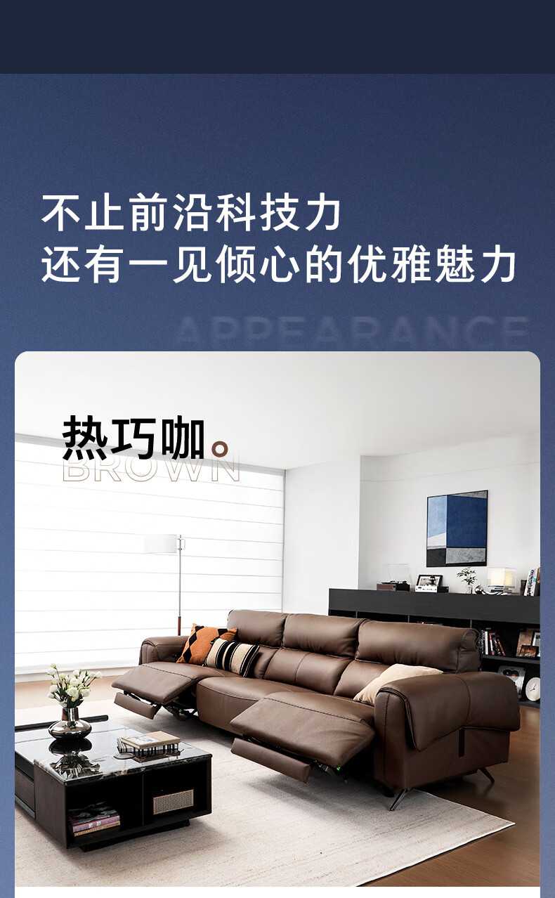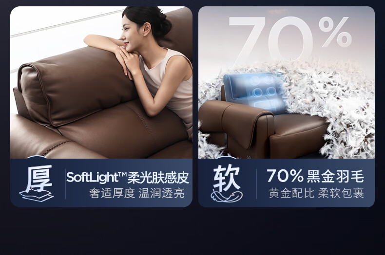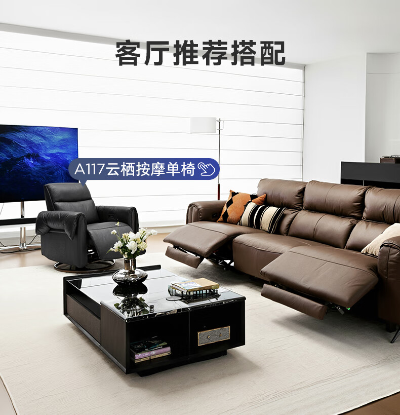 顾家家居(KUKA)【吴磊推荐】智享按摩半青皮零靠墙羽毛沙发客厅6788云栖2.93M咖