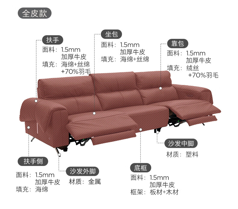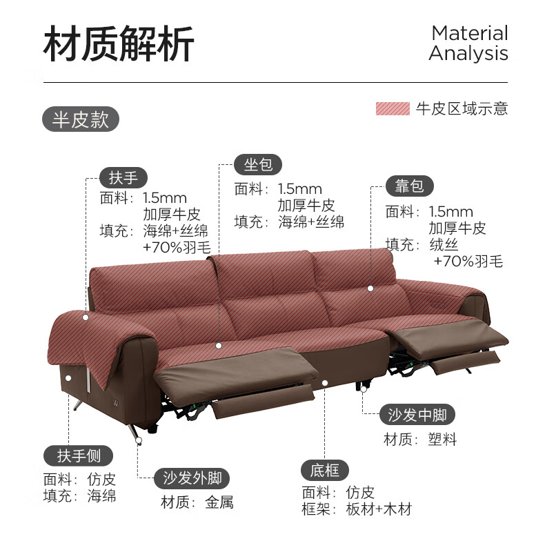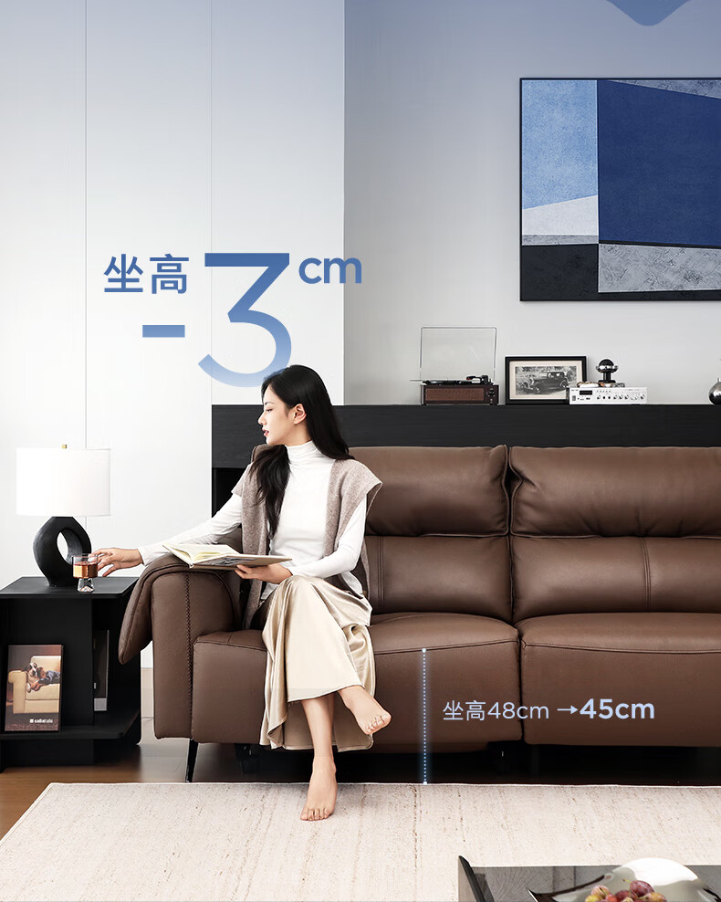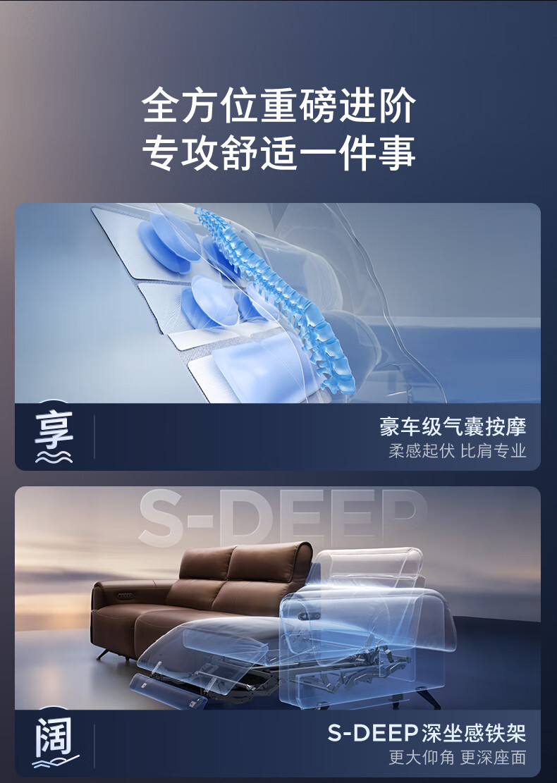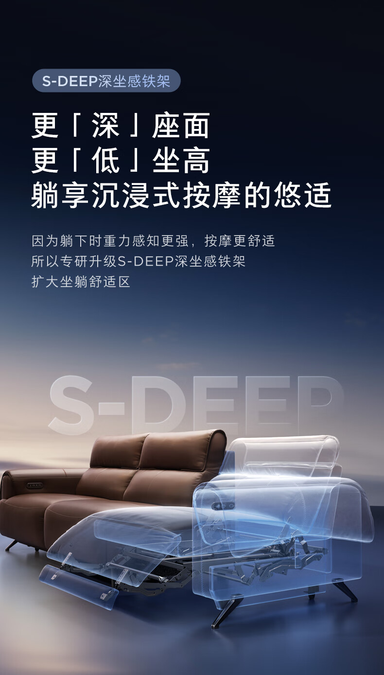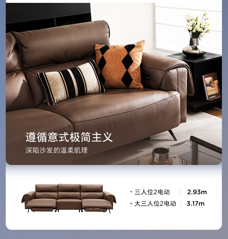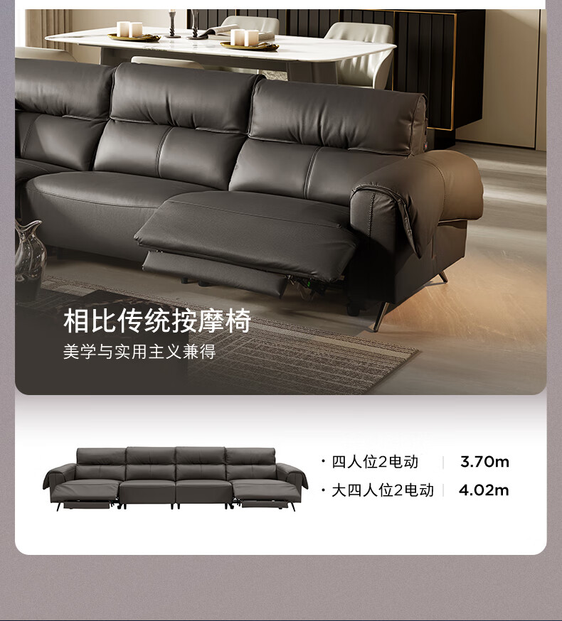顾家家居(KUKA)【吴磊推荐】智享按摩半青皮零靠墙羽毛沙发客厅6788云栖2.93M咖