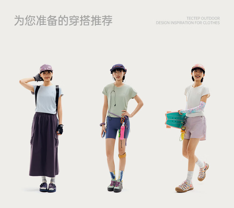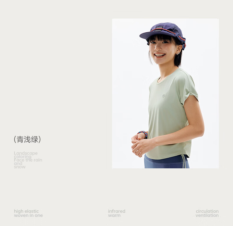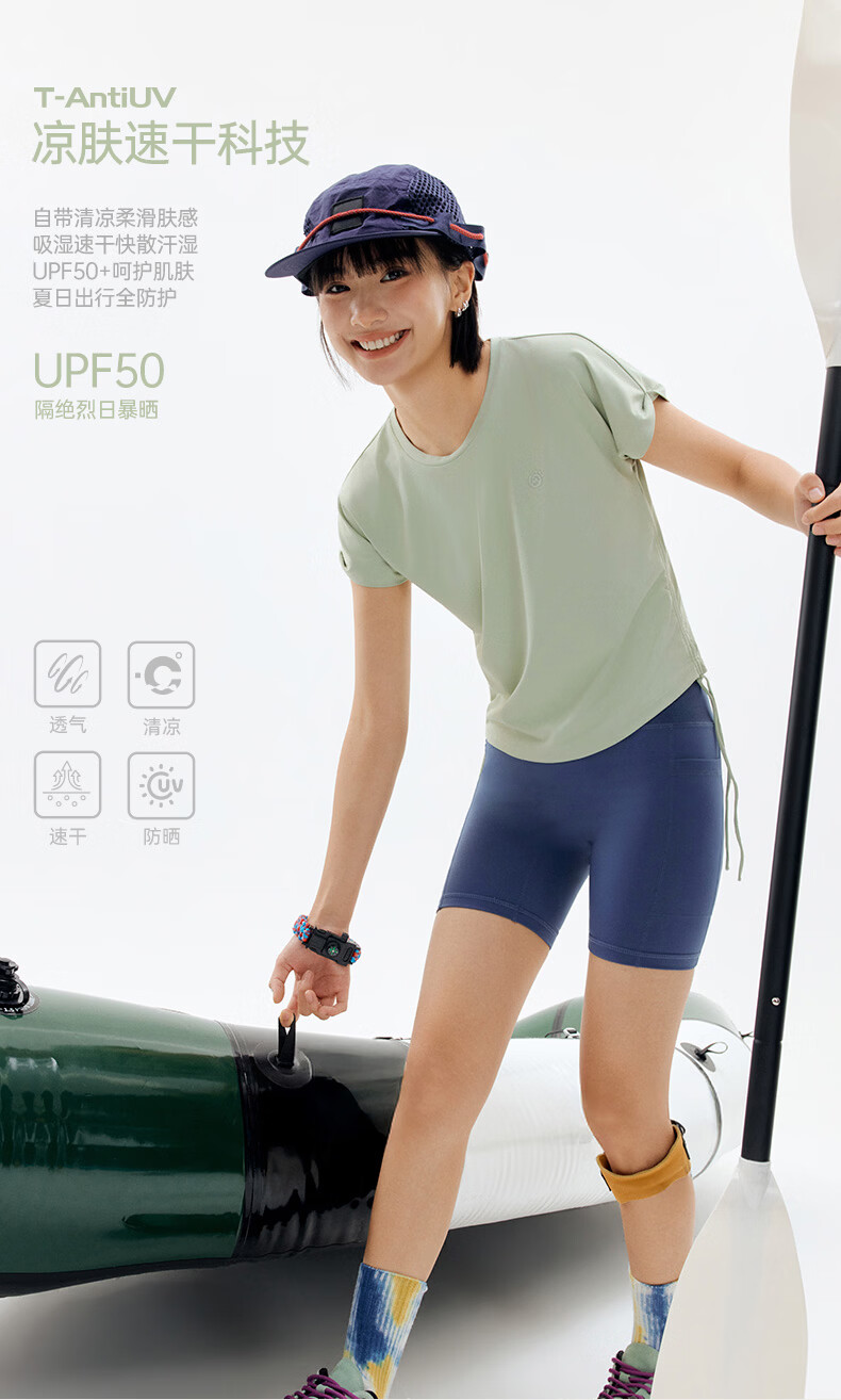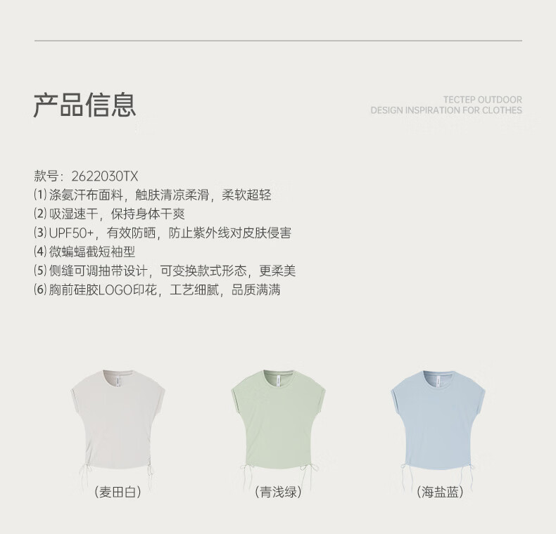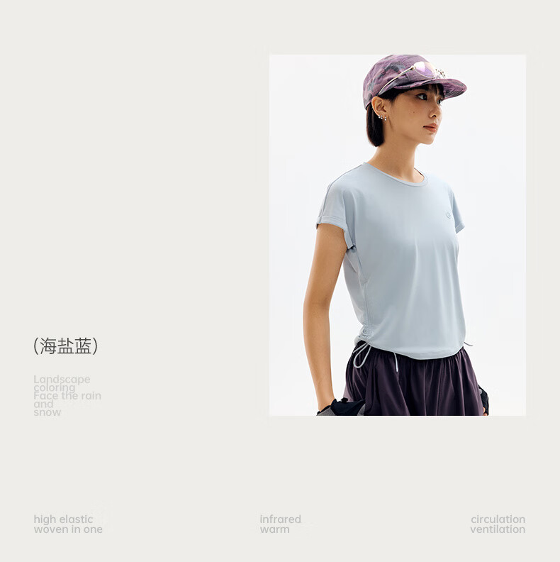 探拓(TECTOP)26新款速干衣女夏季户外防晒短袖冰肤透气运动T恤 海盐蓝 S