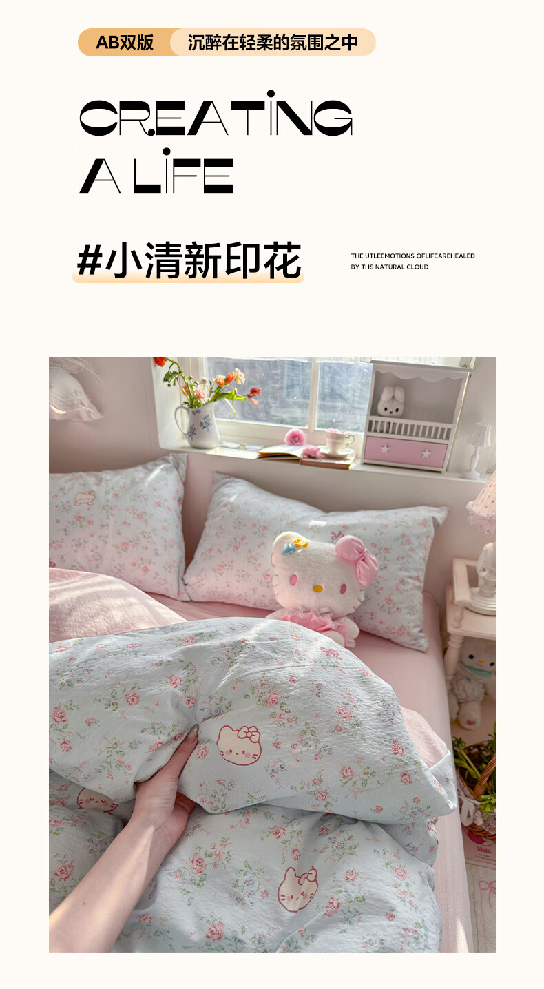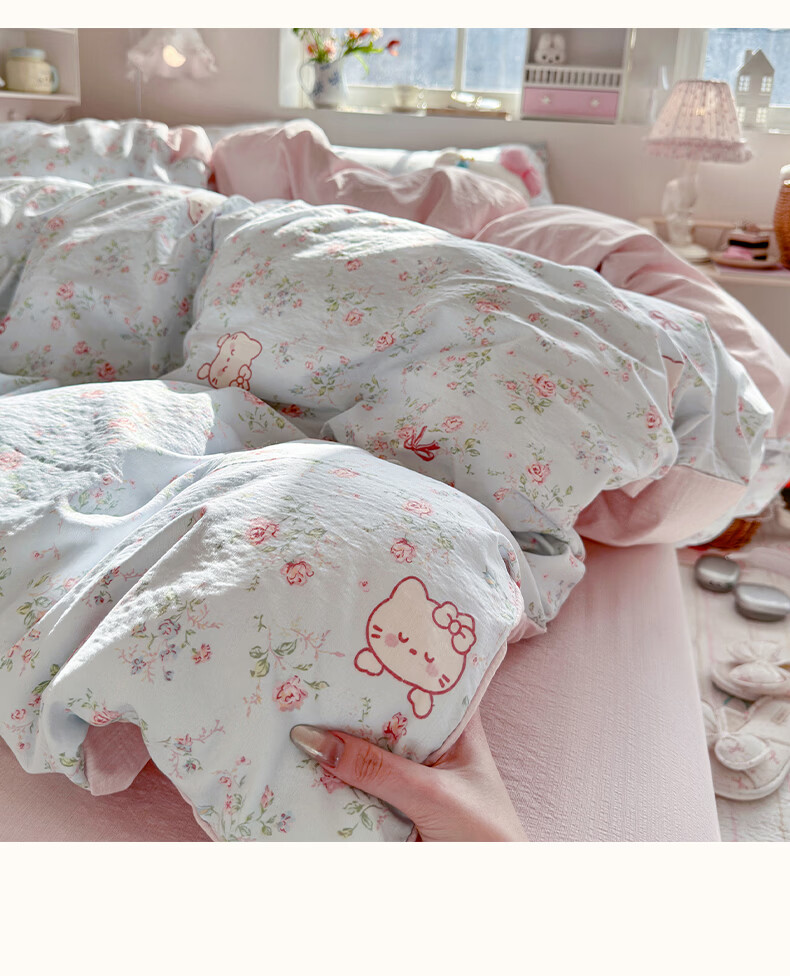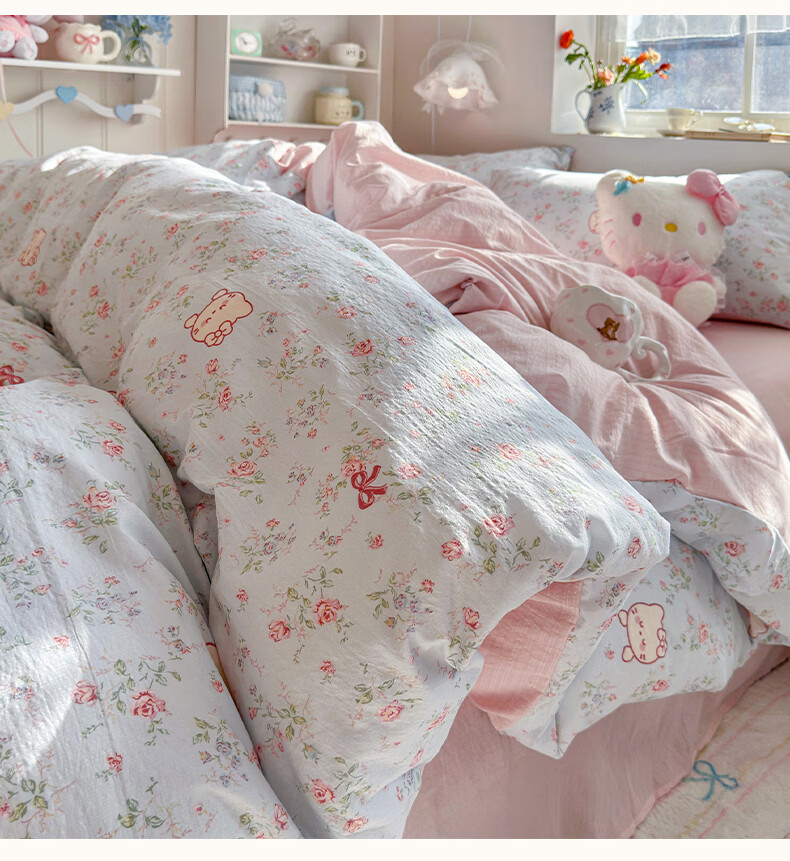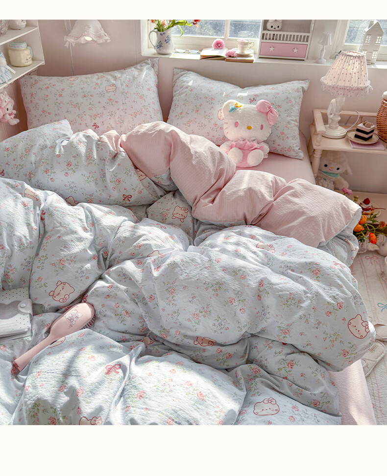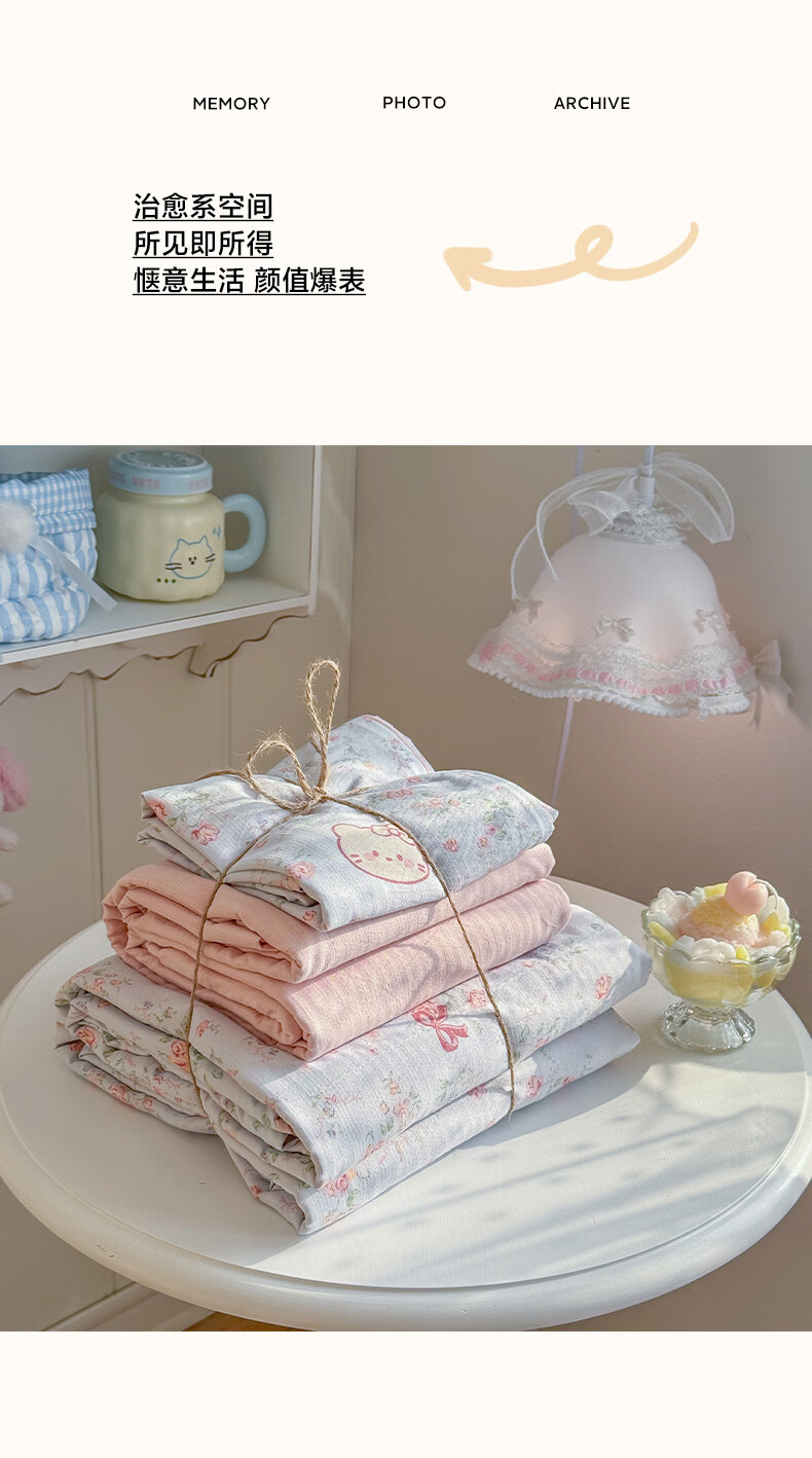 无印良品小清新双层纱四件套床上用品2026年新款卡通宿舍床单笠被套三件套 蓝蓝小奶狗 【细腻柔软 亲肤舒适】 1.8m 床单款 四件套-被套180x220cm