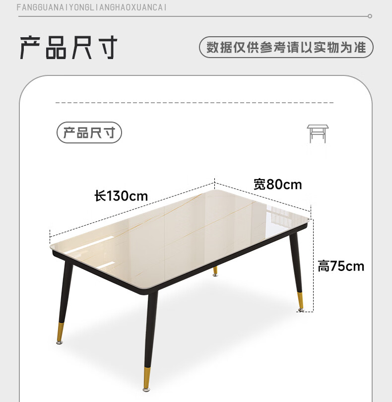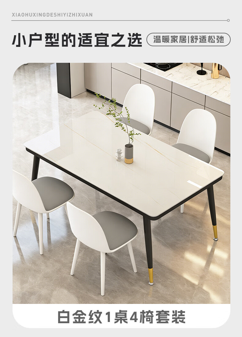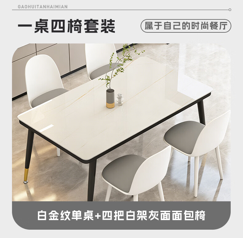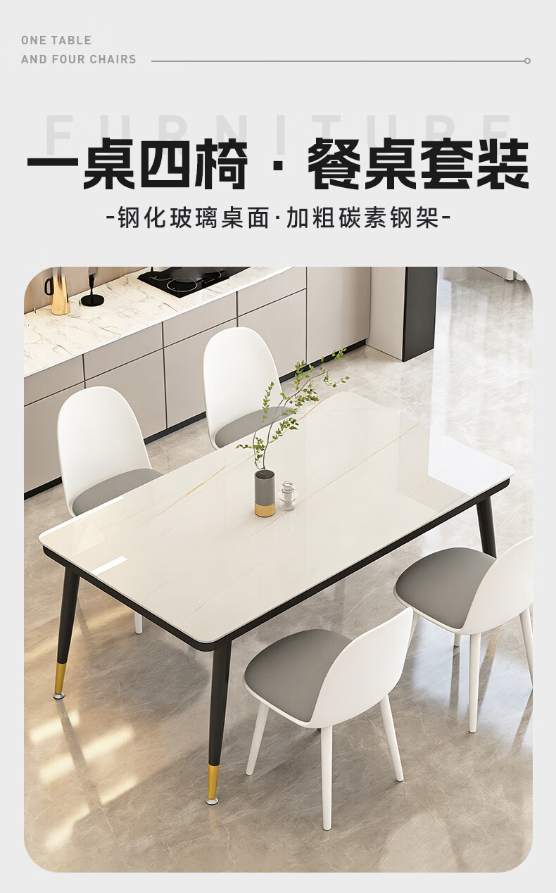 凡社一桌四椅 白金纹餐桌钢化玻璃1.3米+4把餐椅灰色