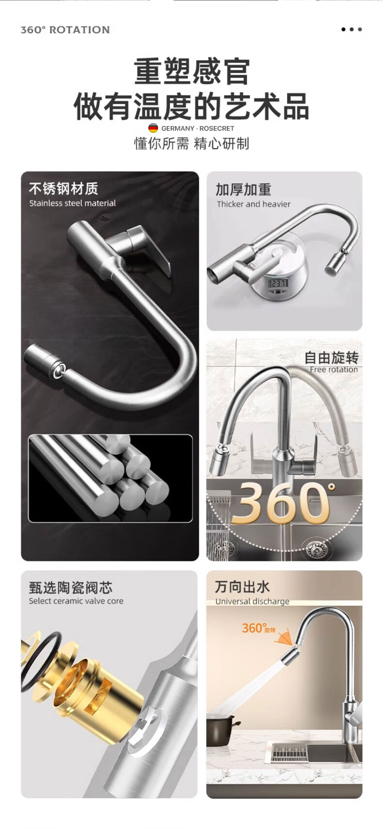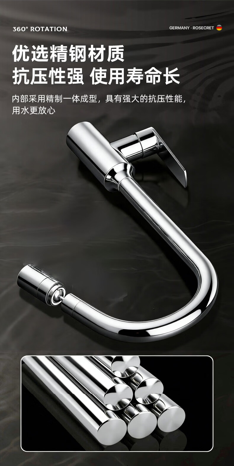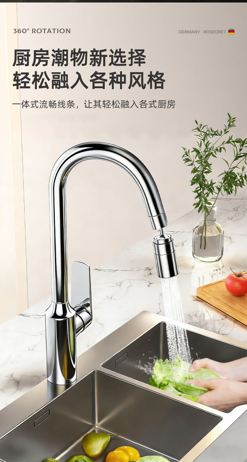 Rosecret【德国】厨房水龙头冷热双温二合一不锈钢洗菜盆万向旋转龙头 增压防溅【电镀银】厨房冷热龙头 两档调节丨赠80CM原装进水管*2