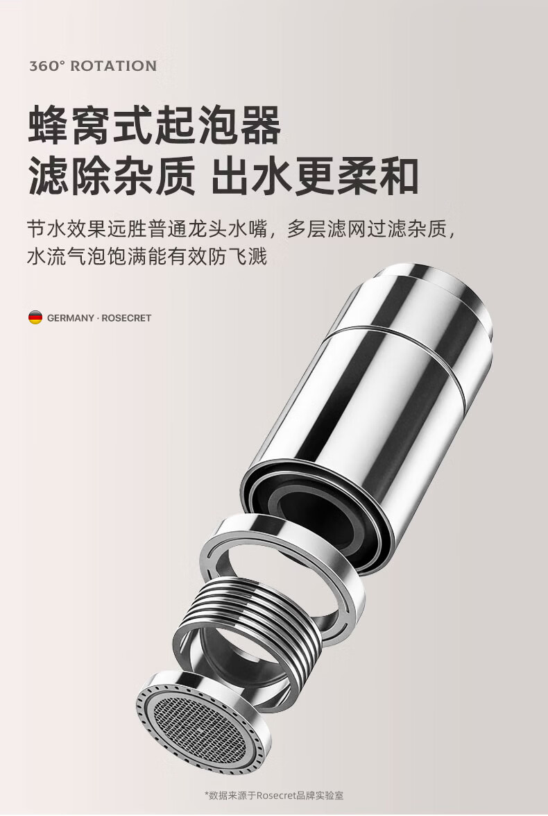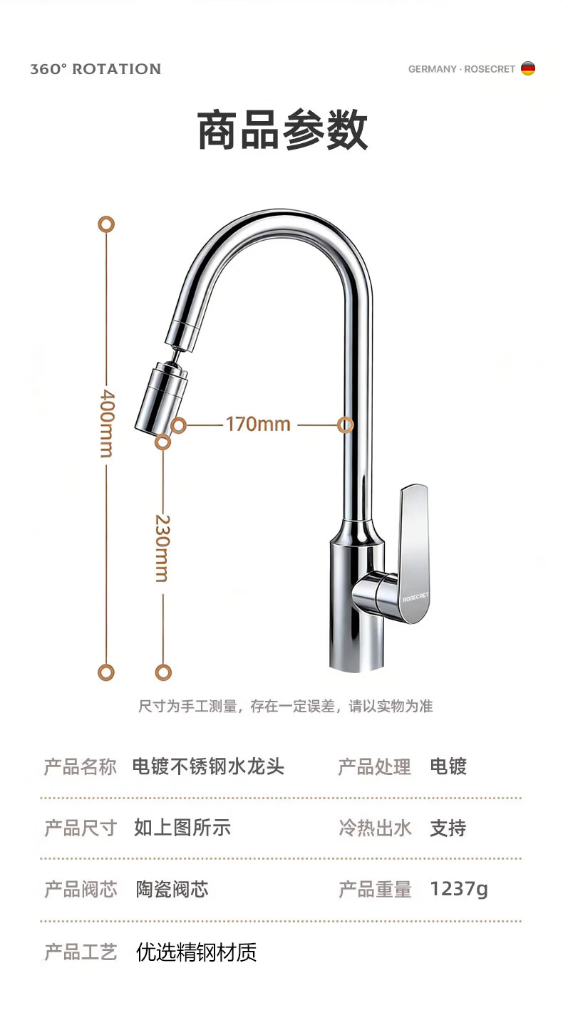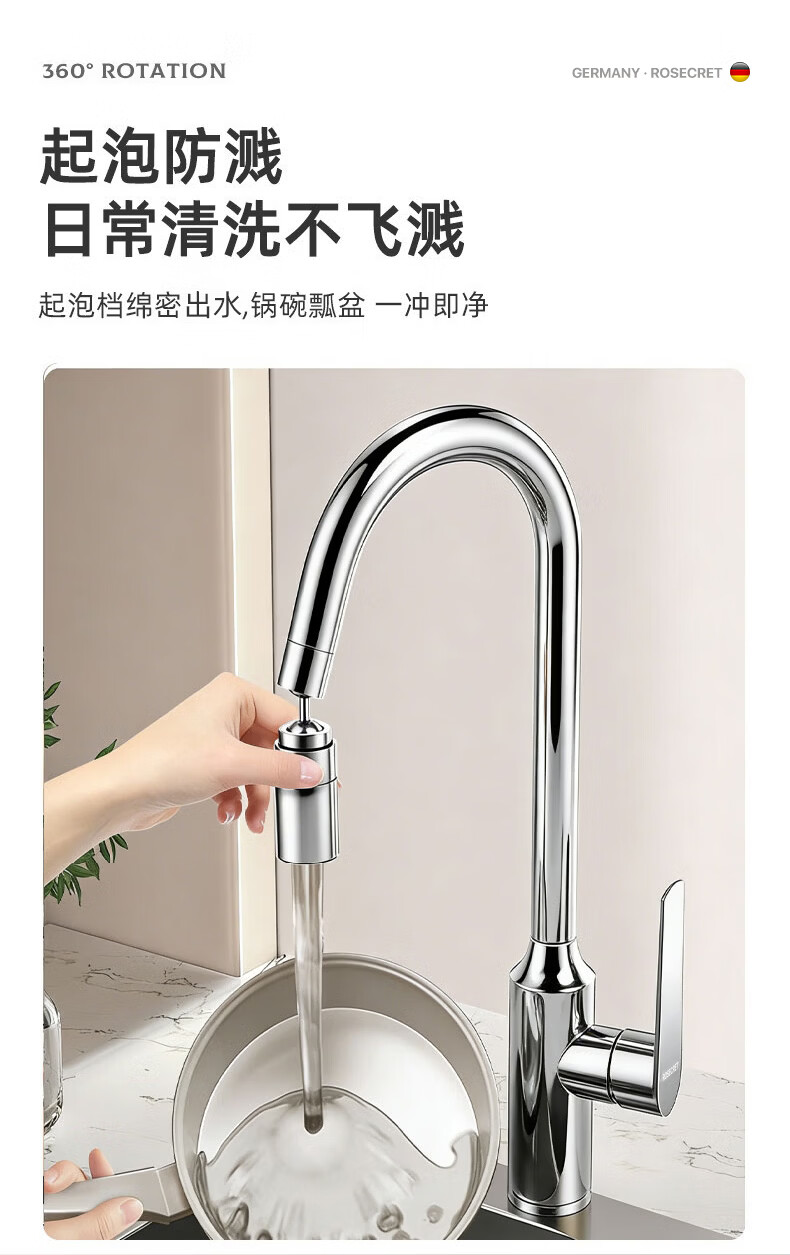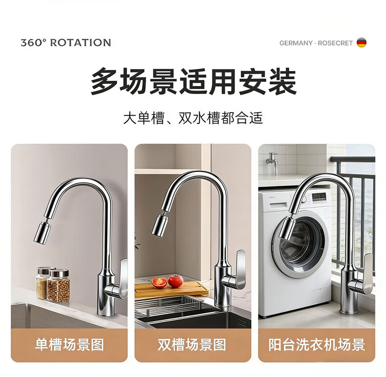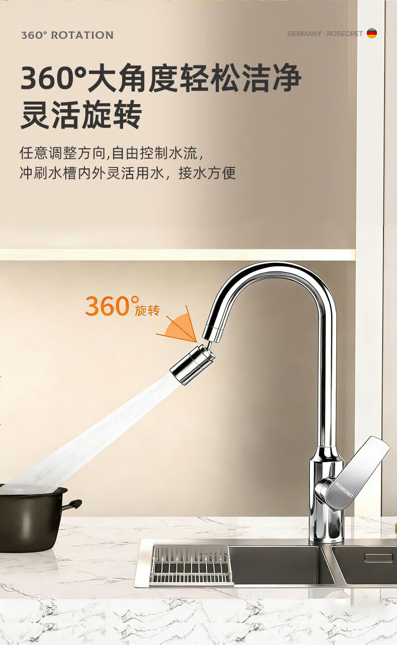 Rosecret【德国】厨房水龙头冷热双温二合一不锈钢洗菜盆万向旋转龙头 增压防溅【电镀银】厨房冷热龙头 两档调节丨赠80CM原装进水管*2