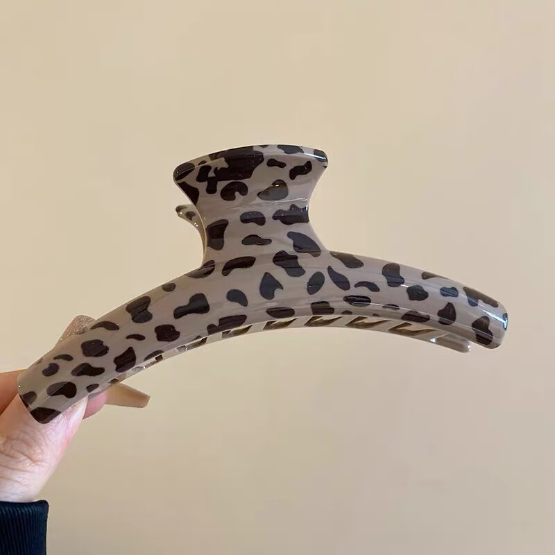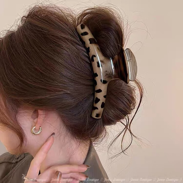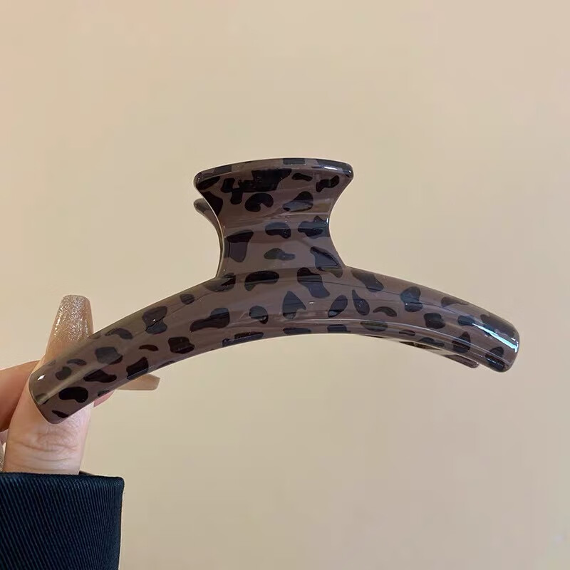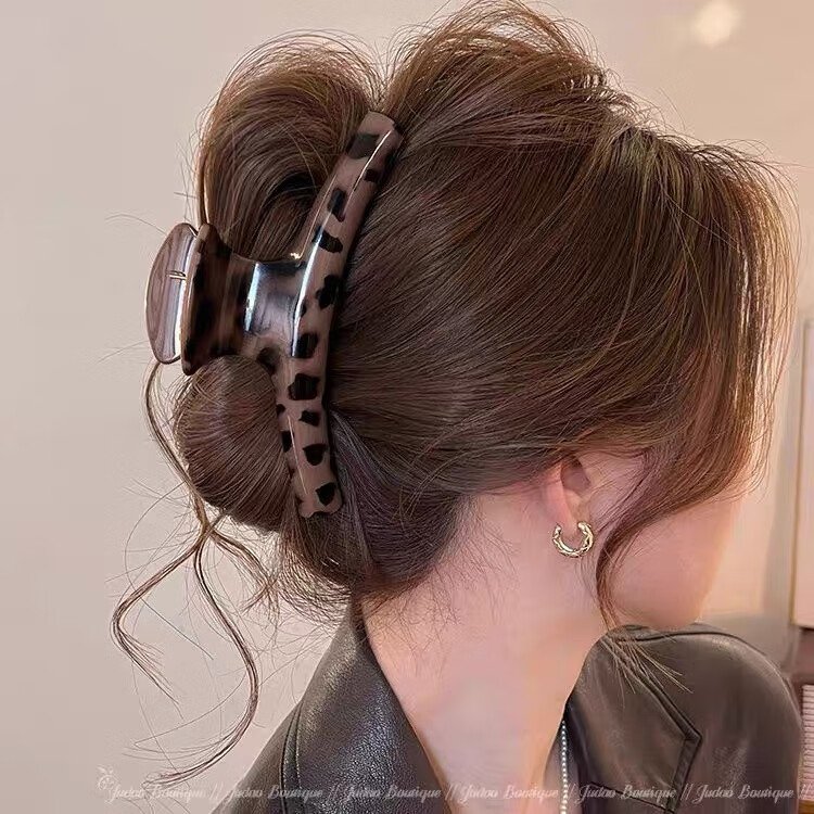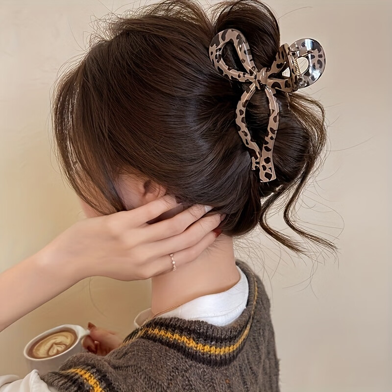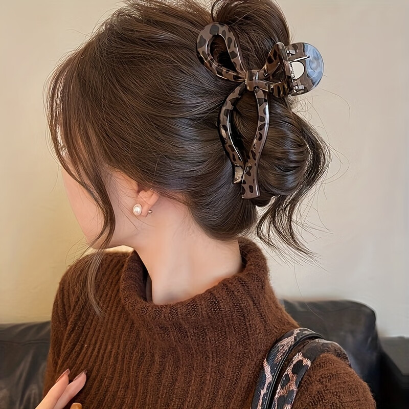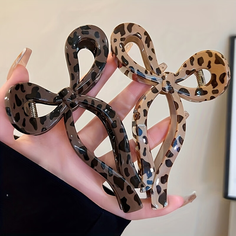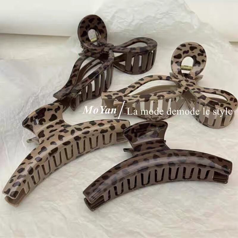 豹纹蝴蝶结抓夹大号夹子发量多发夹女后脑勺鲨鱼夹高级感新款发饰 领结深豹纹