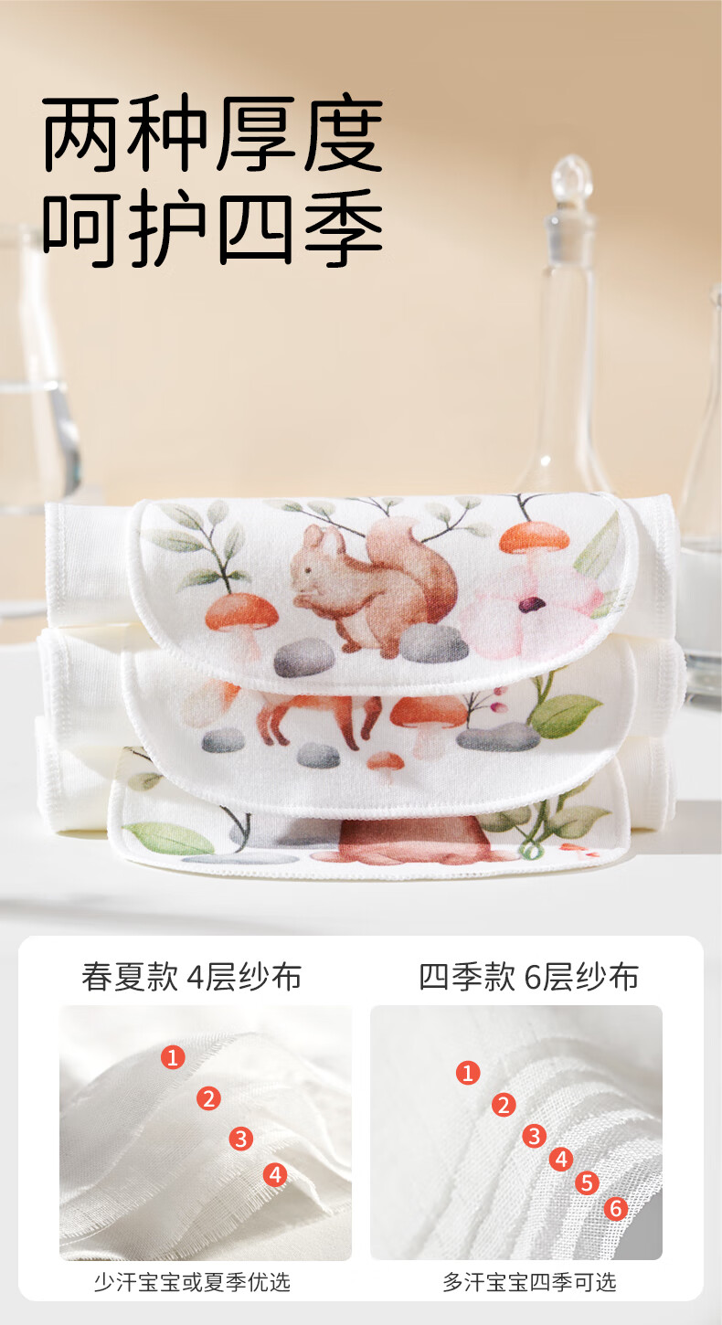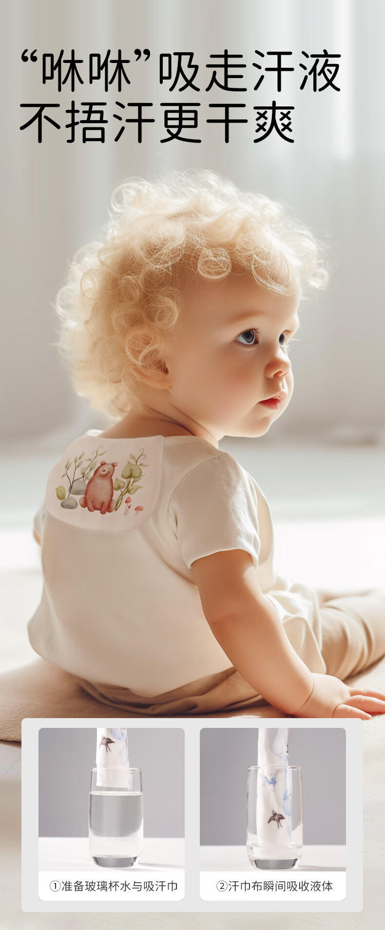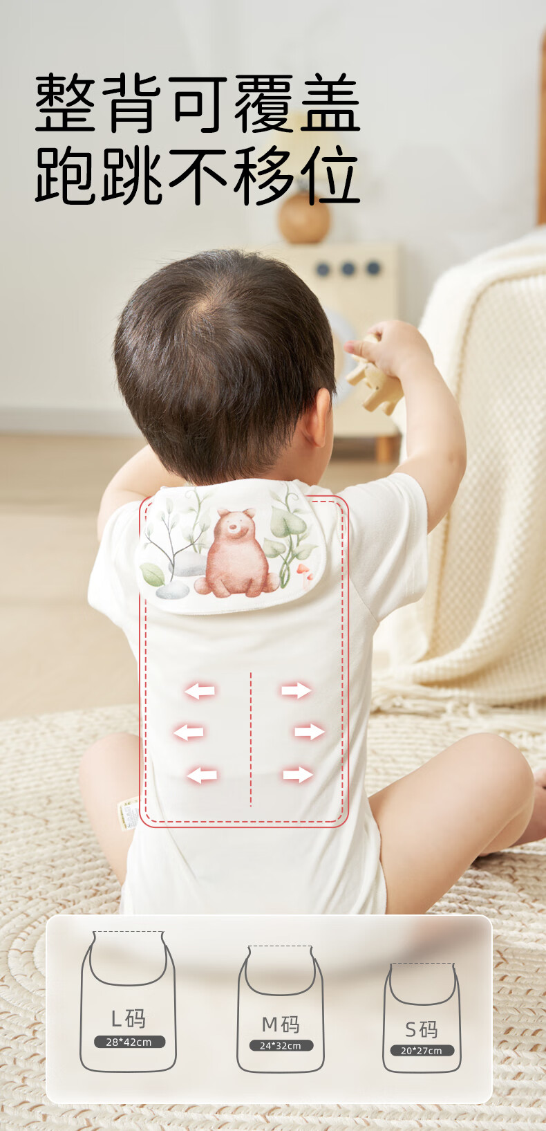 贝肽斯【胎脂皮】隔汗巾儿童3-6岁幼儿园A类宝宝大号透气垫背吸汗巾 竹棉×胎脂皮-熊熊乐园 3条装 【轻薄4层-10A抗菌】 S码【28*19cm】建议0-1岁