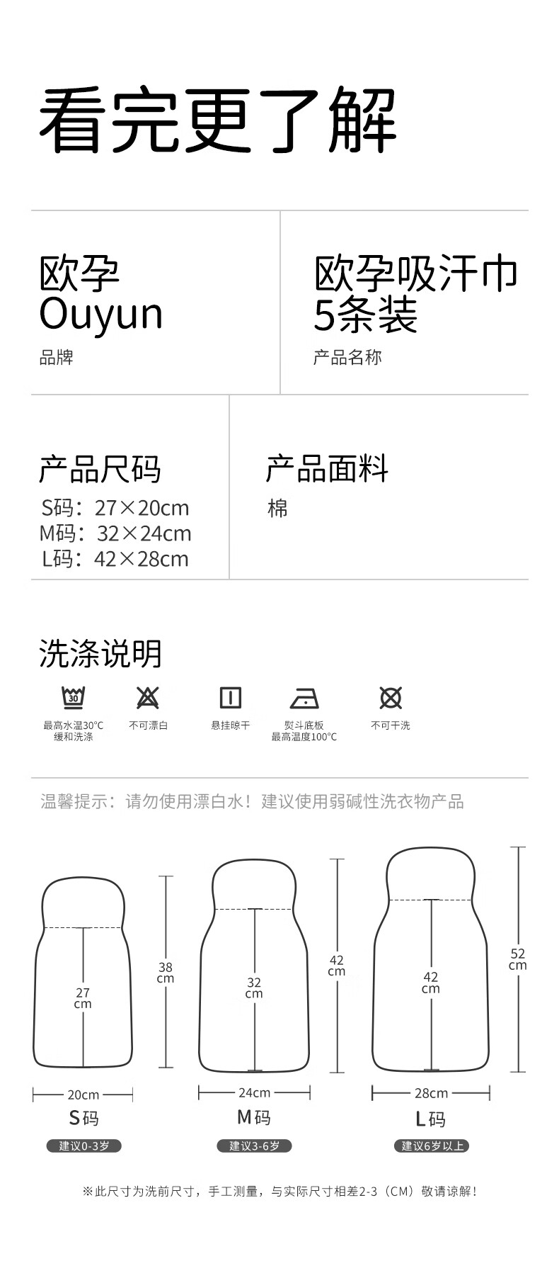 欧孕(OUYUN)汗巾儿童纯棉幼儿园隔汗巾男童女童宝宝吸汗巾婴儿垫背止汗巾冬季 【4层纱布】 5条装 萌趣伙伴 S码 (五条装)