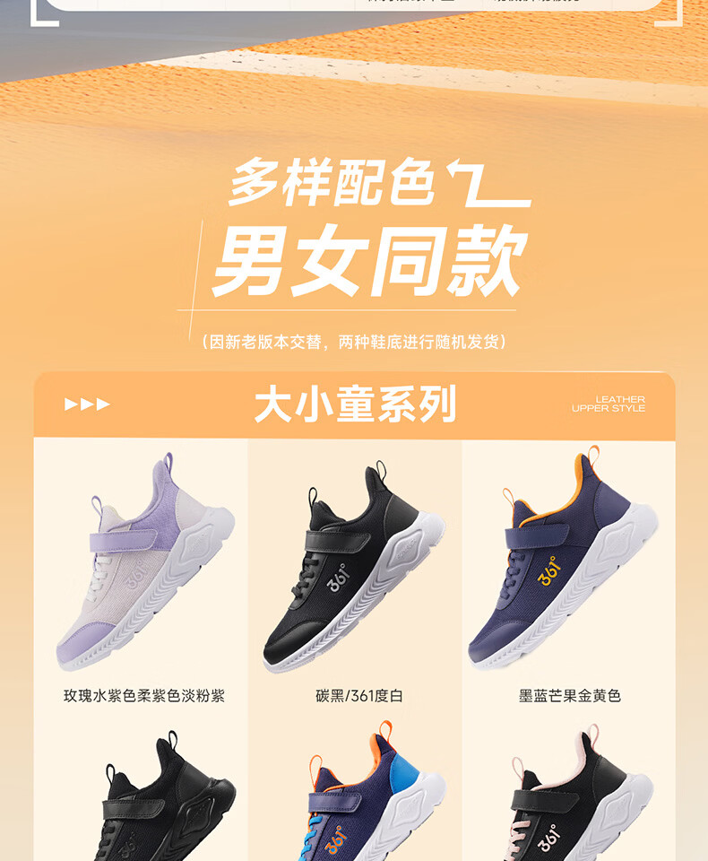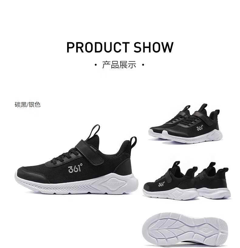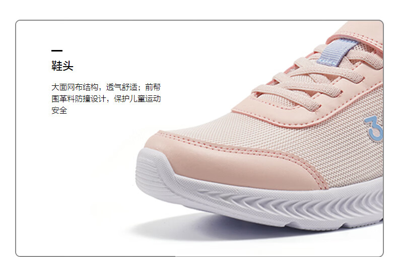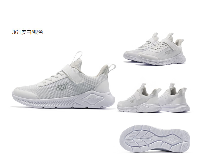 361°儿童运动鞋男女童(3-12岁)防撞鞋头密网休闲跑鞋 银 40