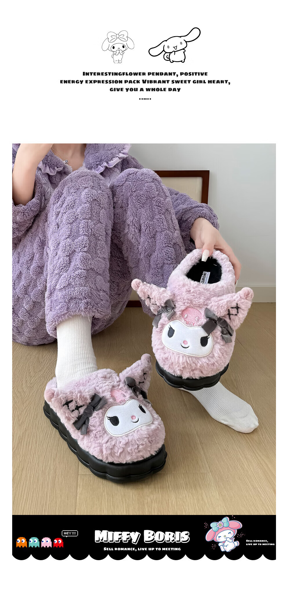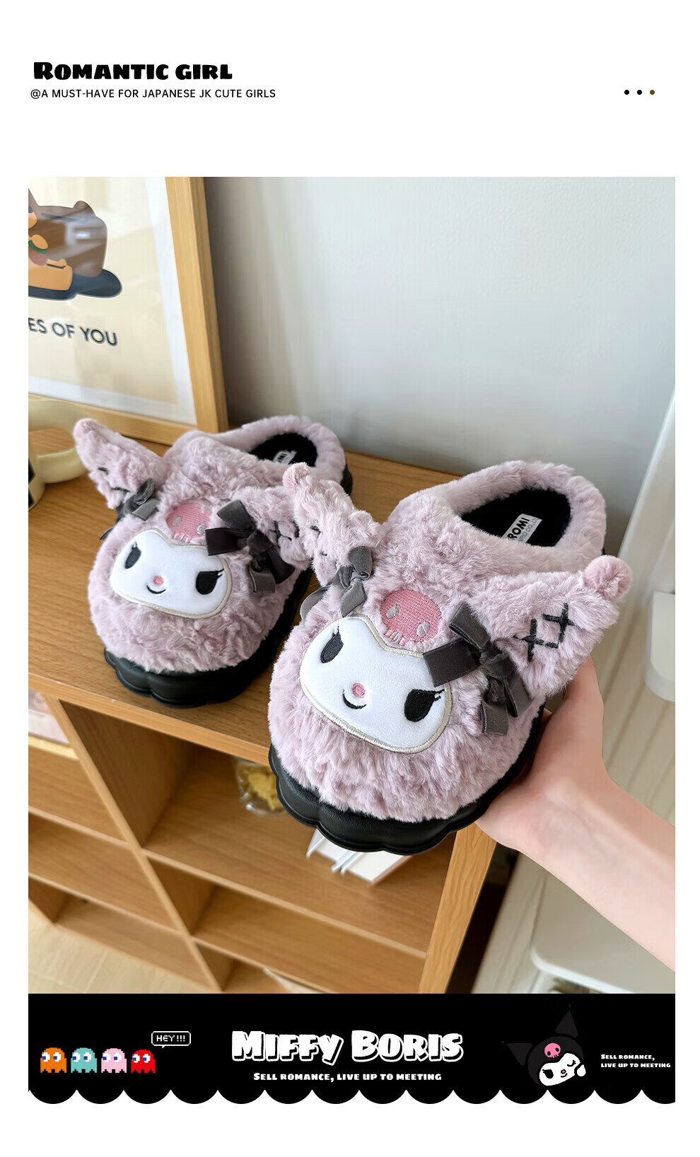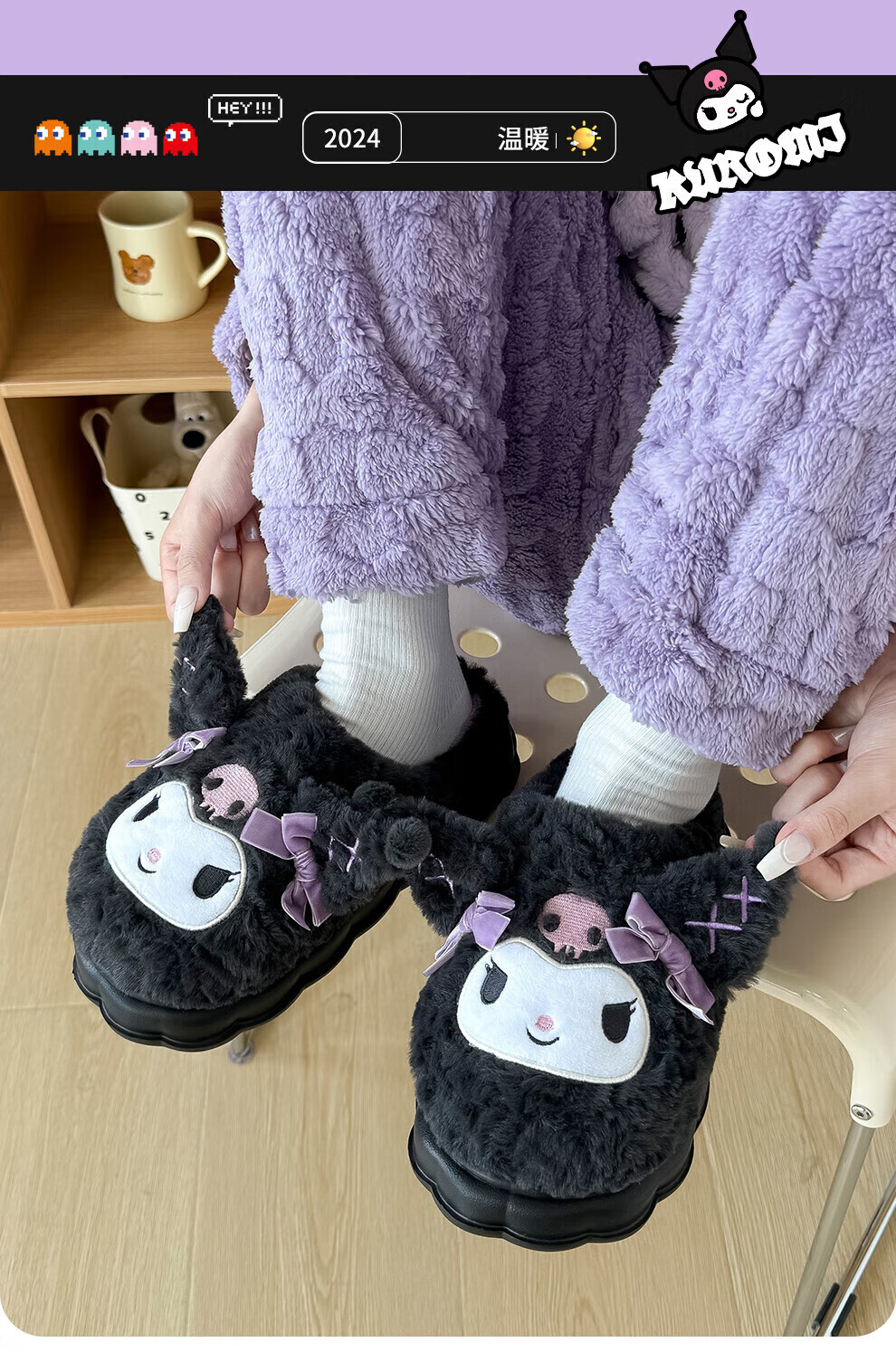FZT正版IP联名库洛米棉拖鞋女士秋冬季2025新款可爱毛绒加保暖拖鞋女 美乐蒂 40-41 适合39-40