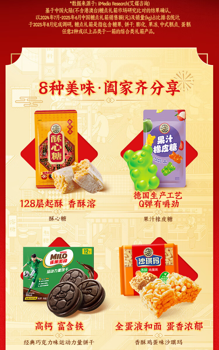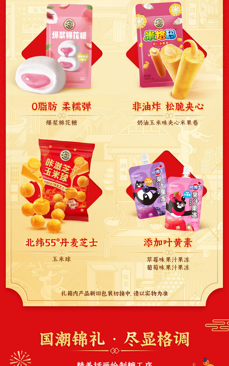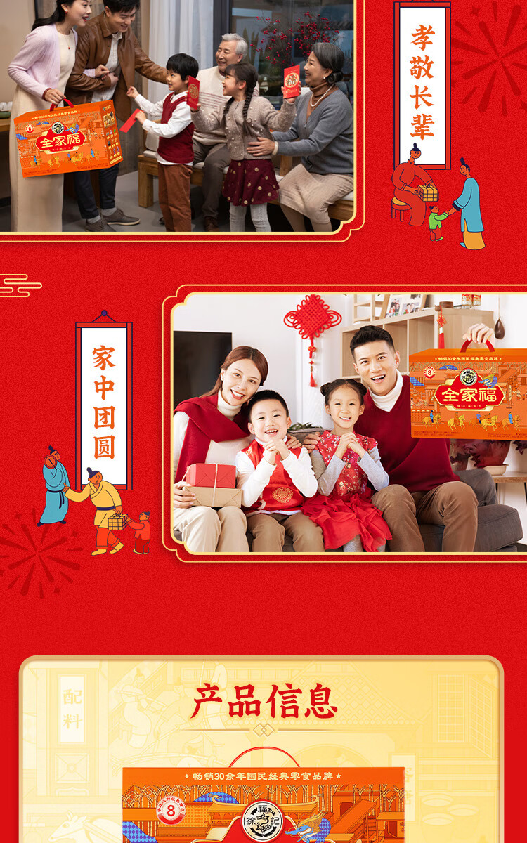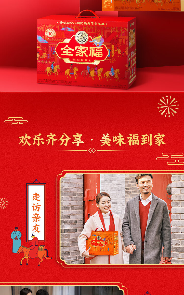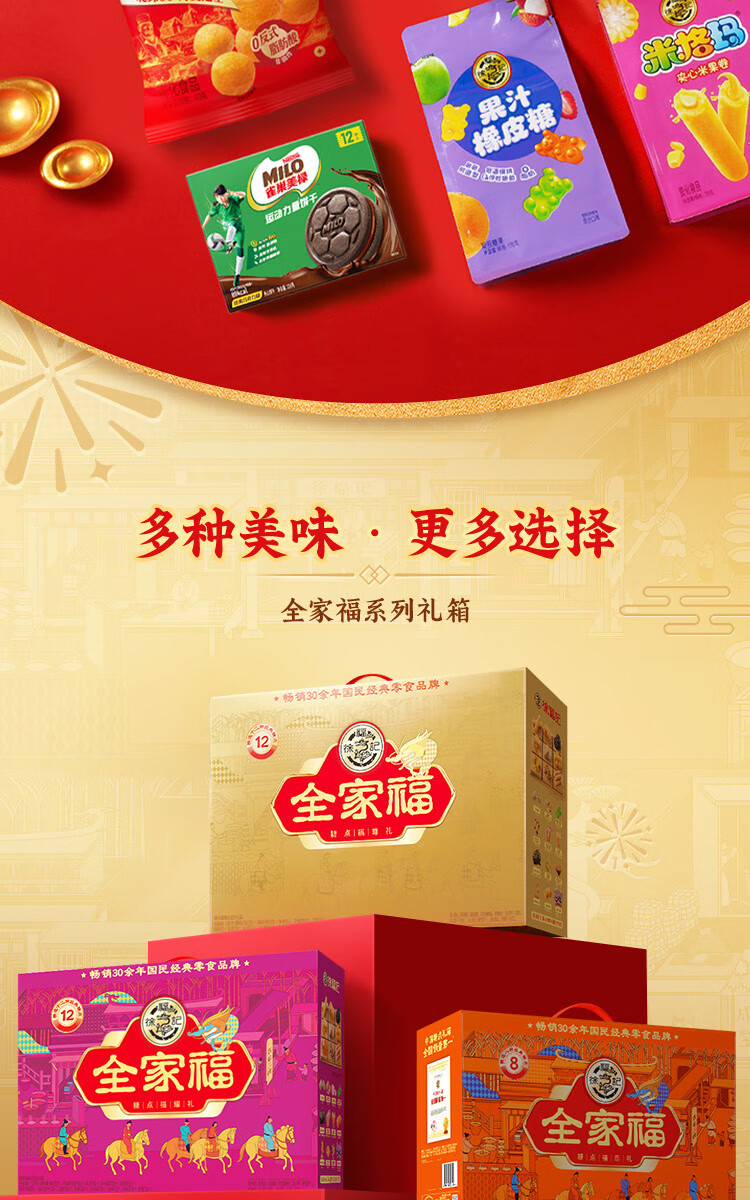 徐福记新年礼盒送礼 混合零食礼盒 休闲零食大礼包 年货礼盒团购 【内含9袋】全家福礼盒922g