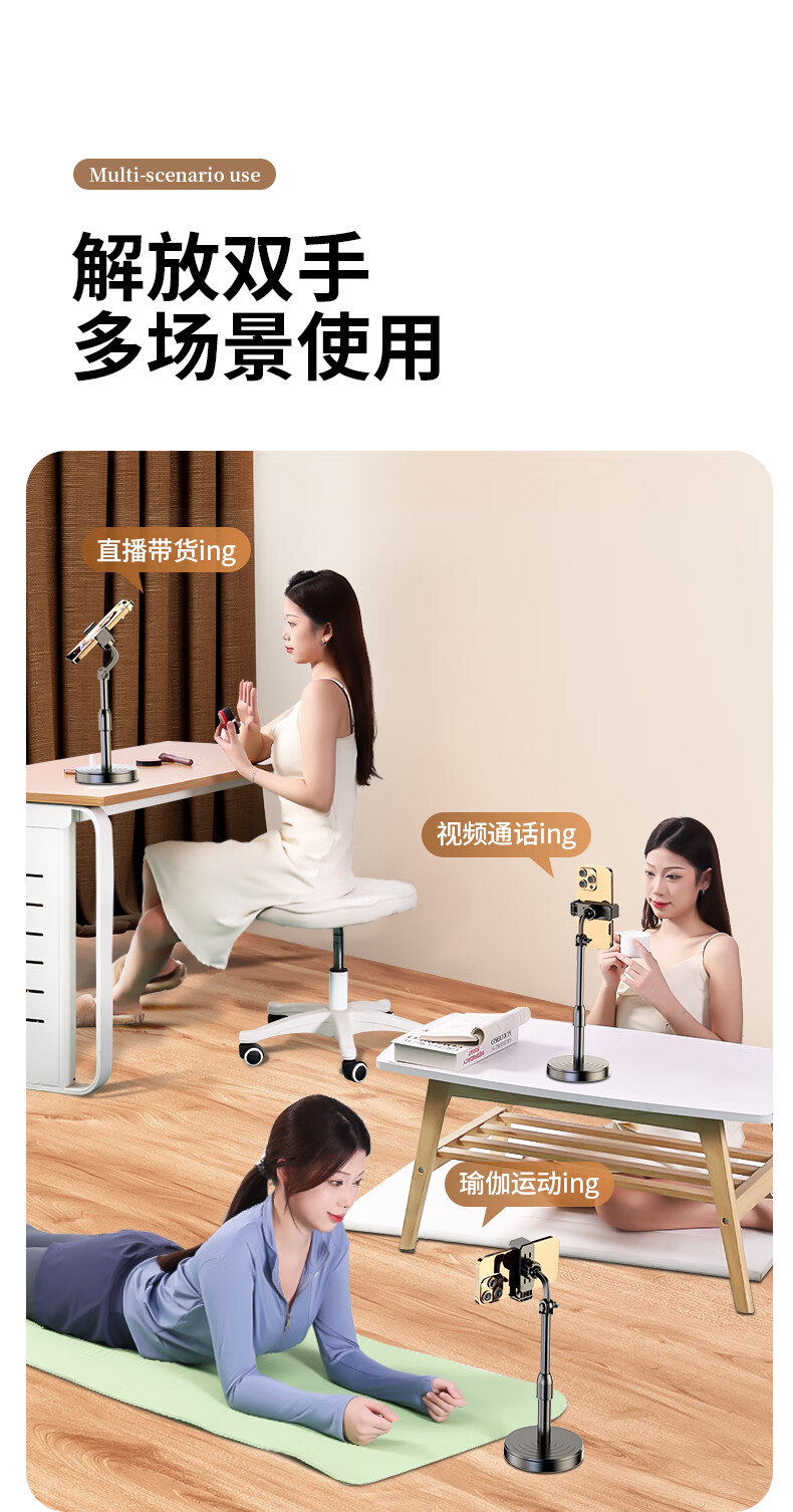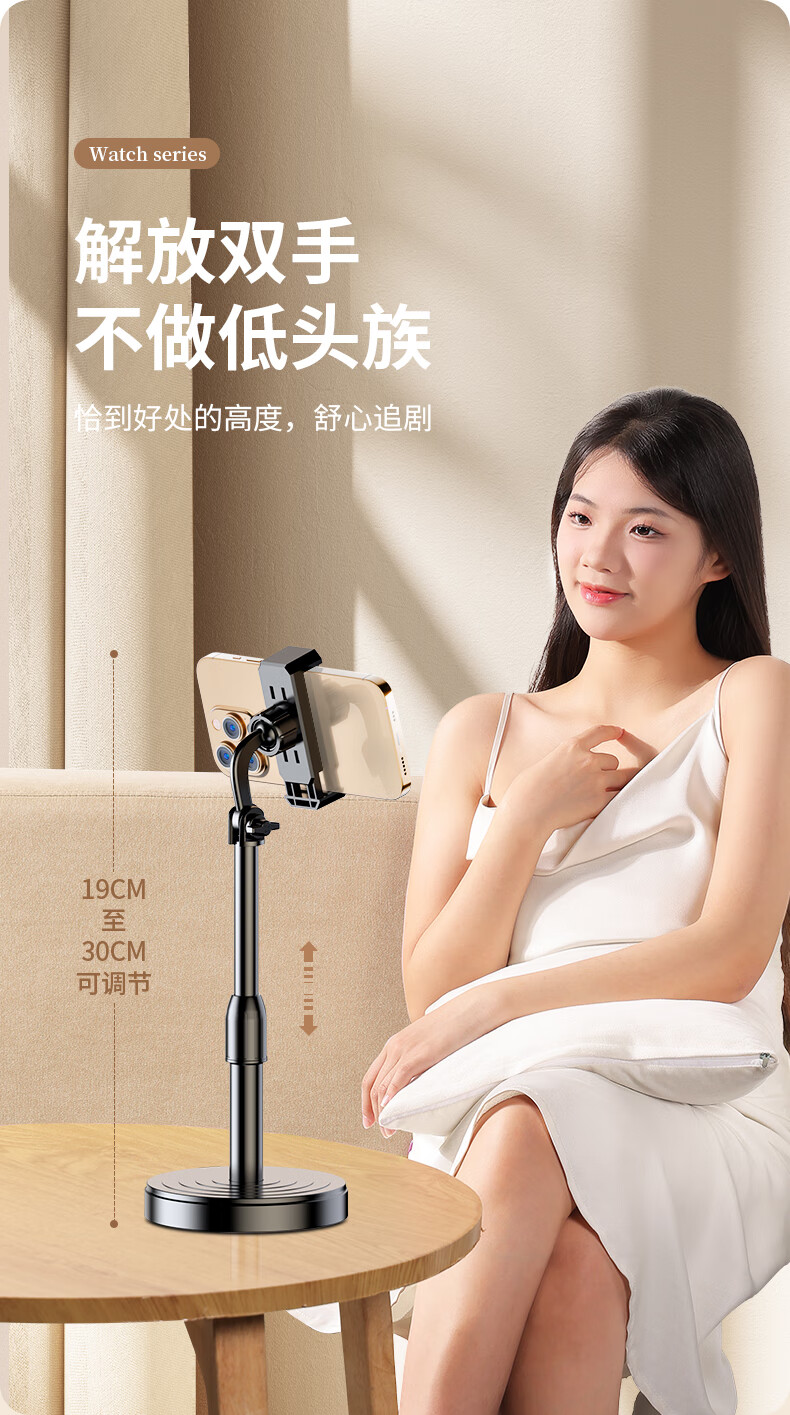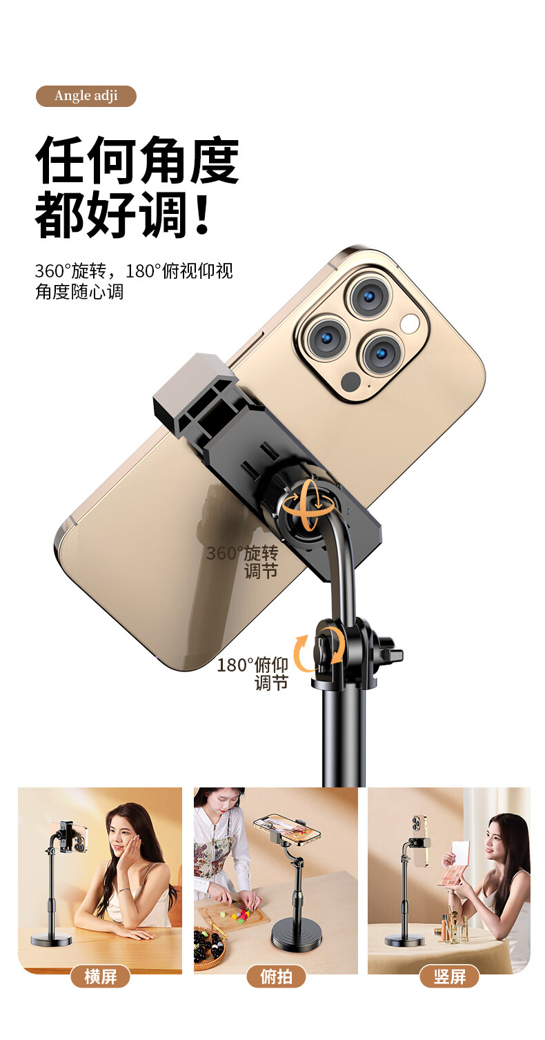 硕图手机支架桌面自拍直播多功能拍摄神器专用懒人支架万能通用拍照360旋转可升降调节伸缩抖音支撑架 《经典黑》标准版+可升降.