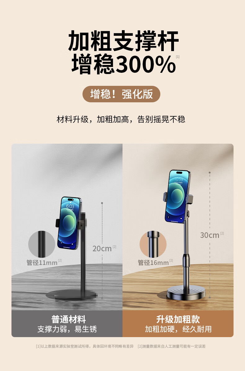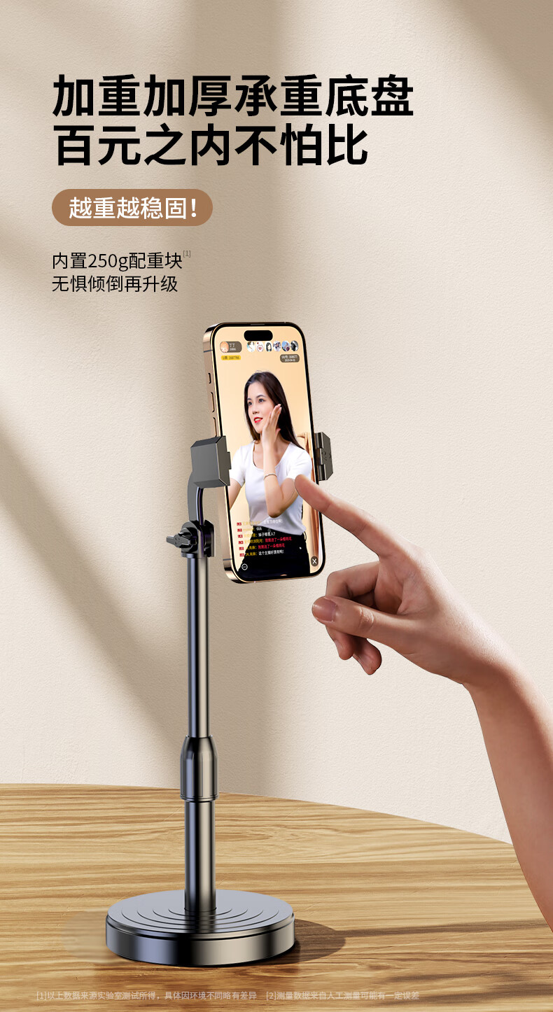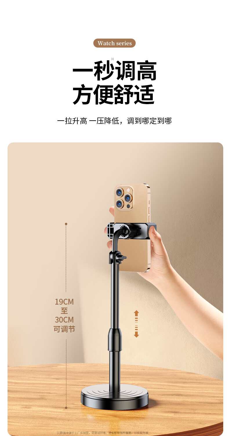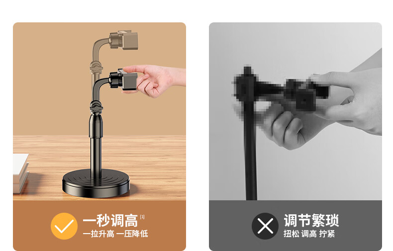硕图手机支架桌面自拍直播多功能拍摄神器专用懒人支架万能通用拍照360旋转可升降调节伸缩抖音支撑架 《经典黑》标准版+可升降.