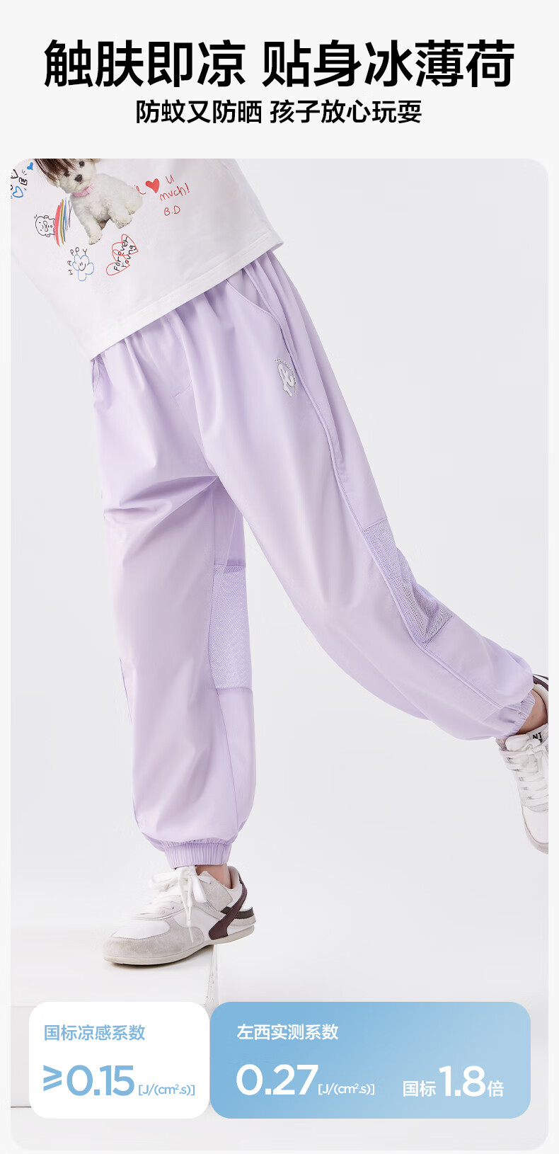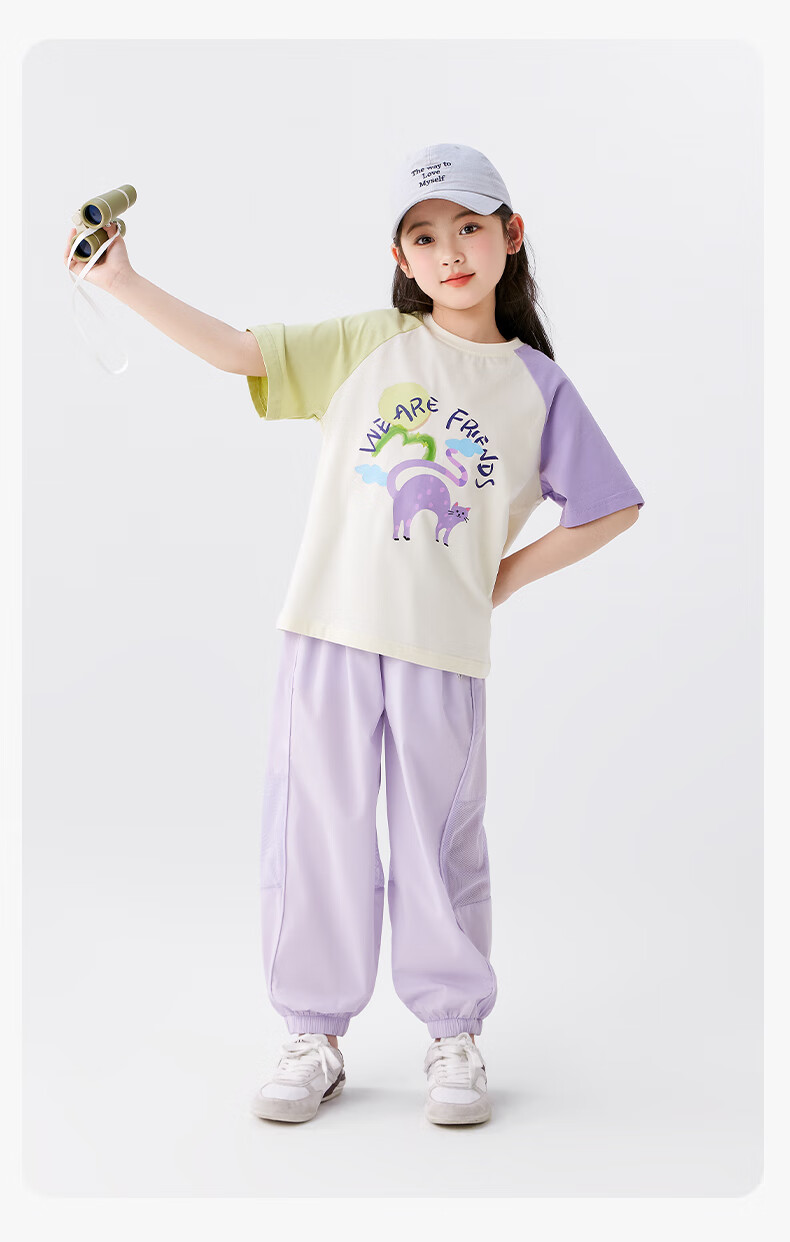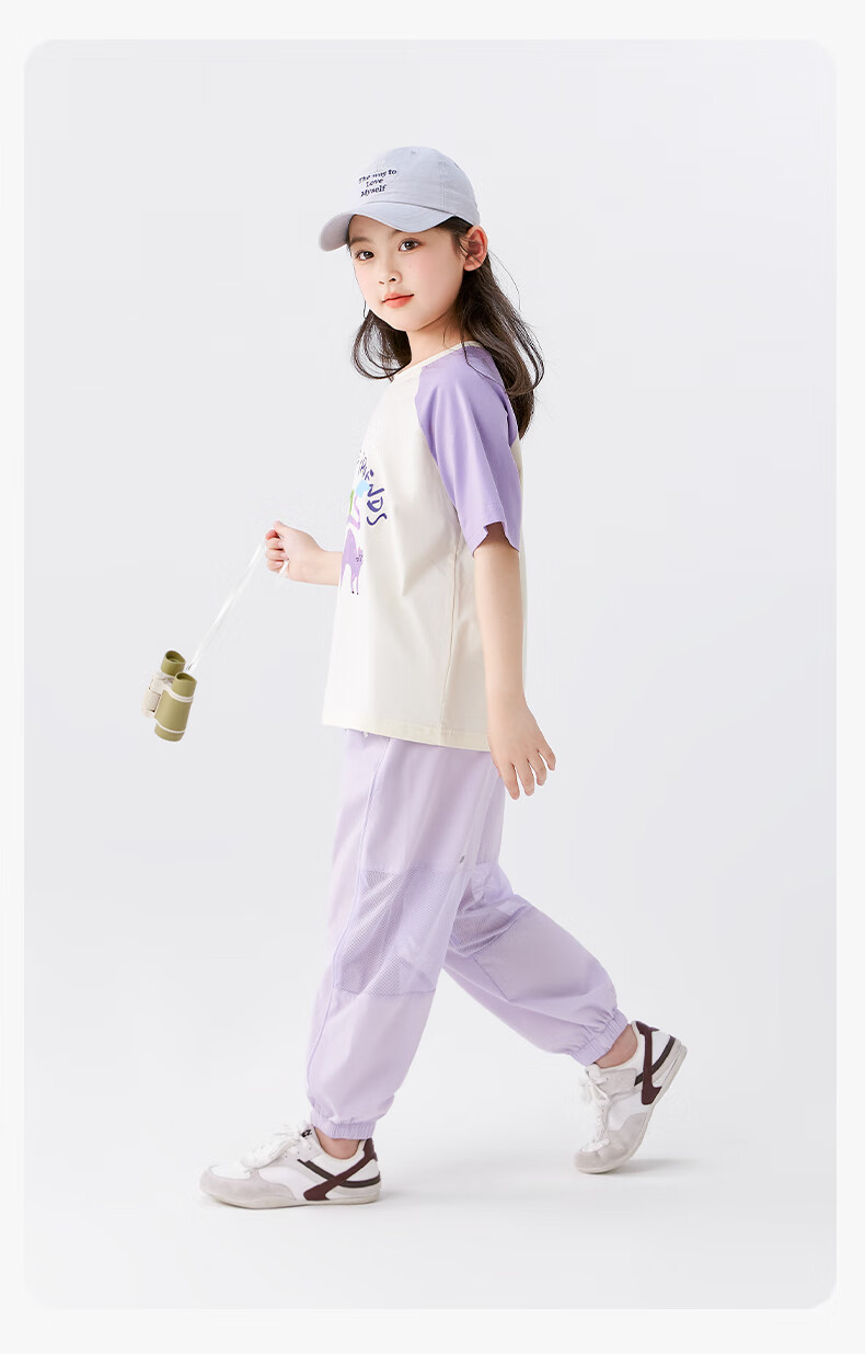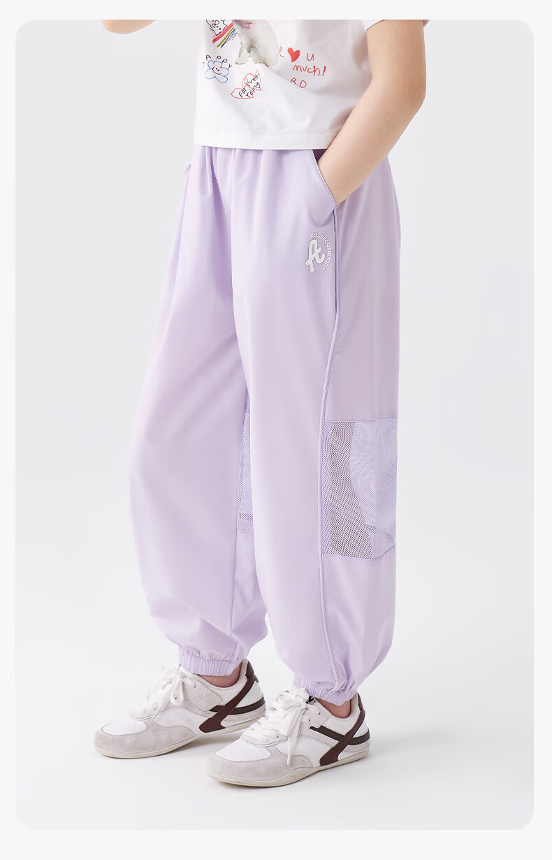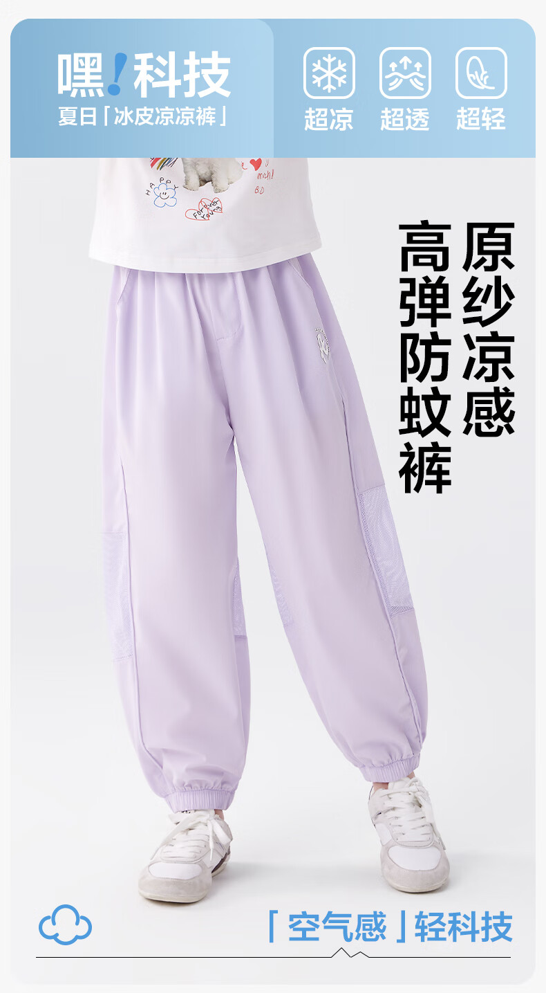 左西女童防蚊裤儿童裤子2026新款薄凉感透气女孩夏装休闲裤 紫色 130