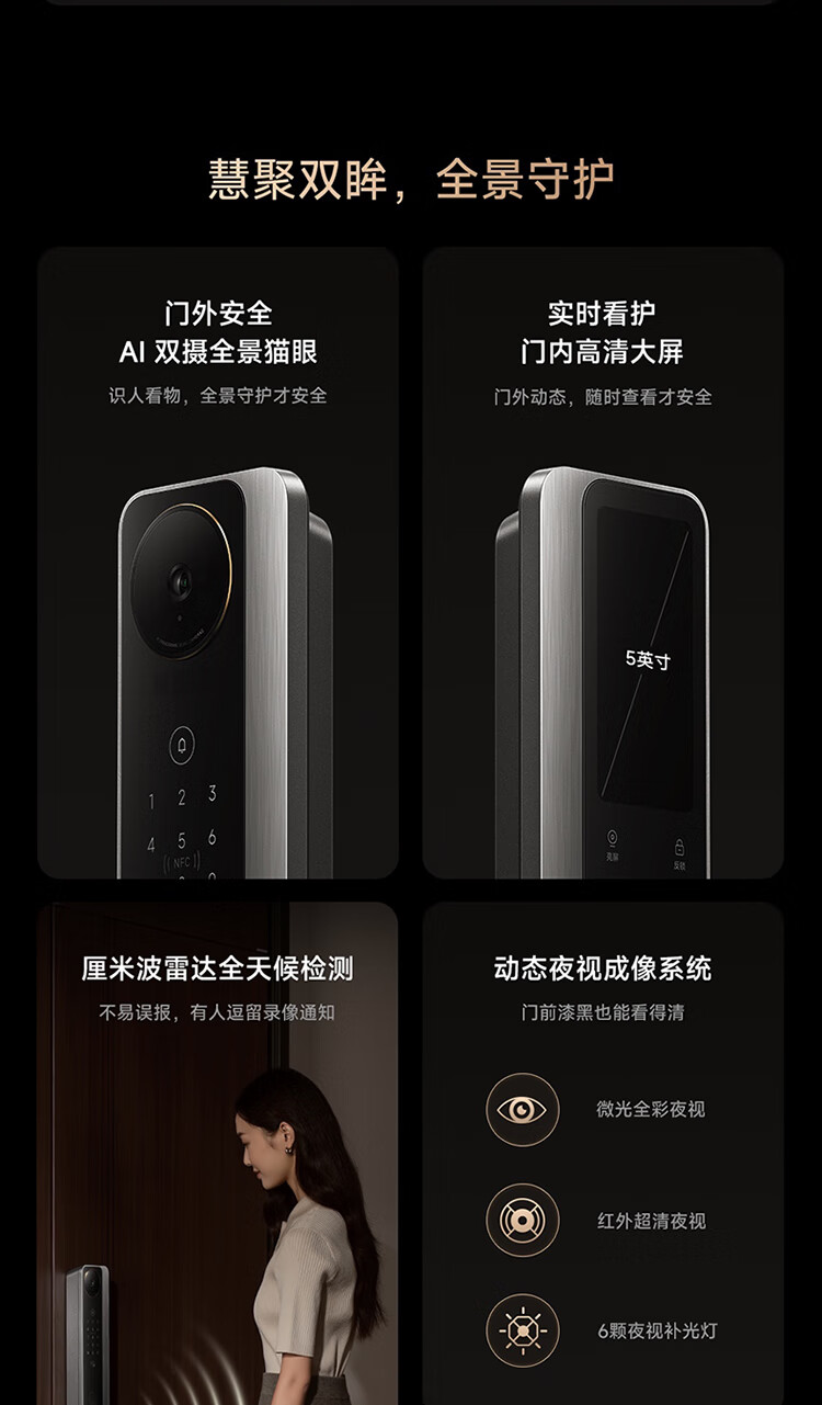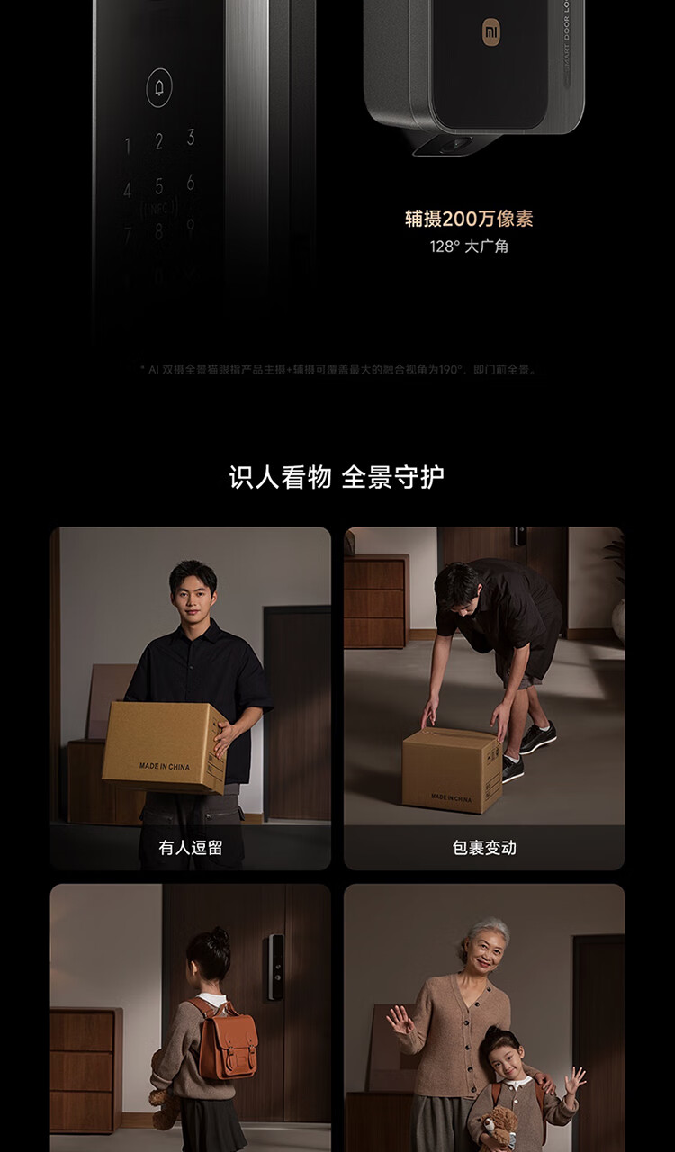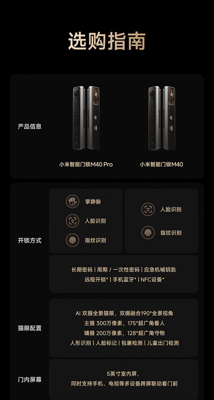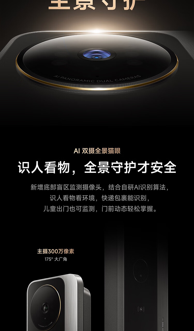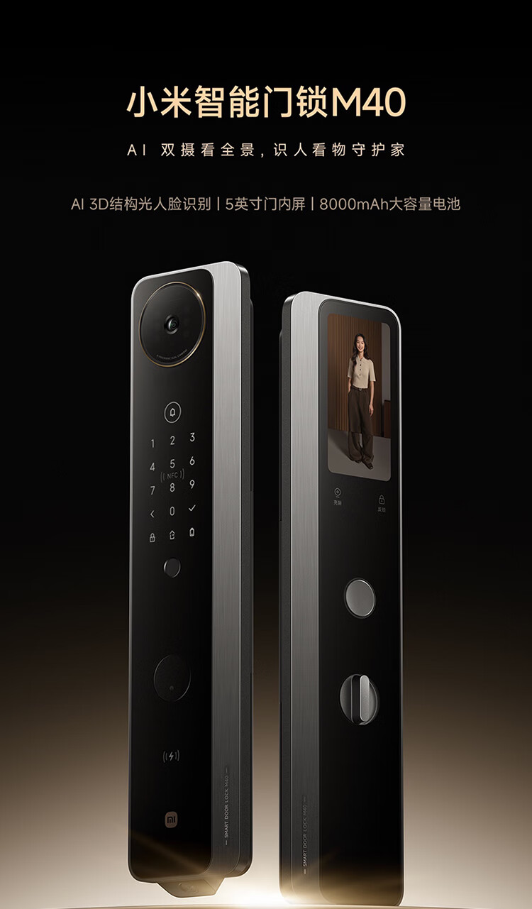 小米智能门锁 M40 双摄全景猫眼 人脸锁 指纹锁 电子锁防盗门锁