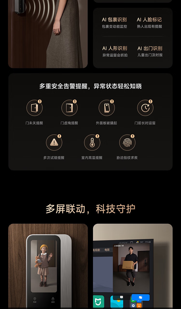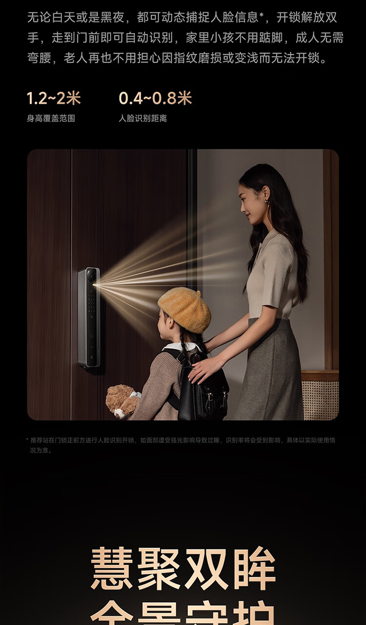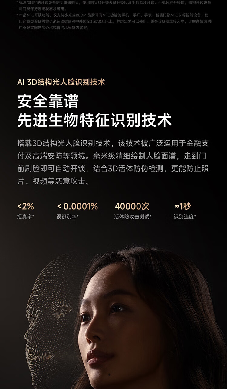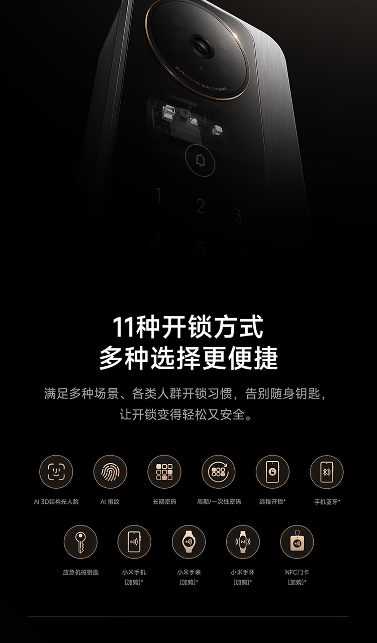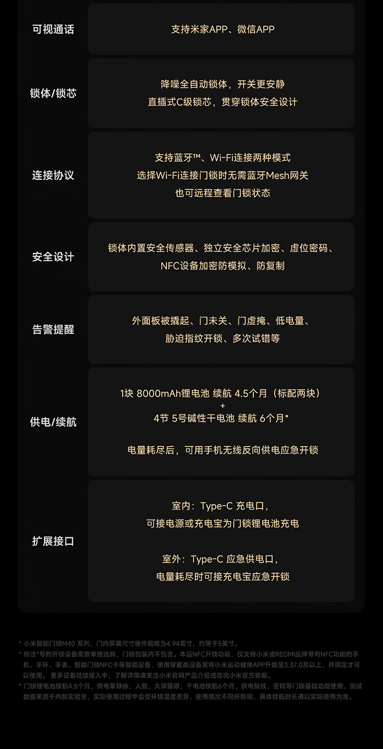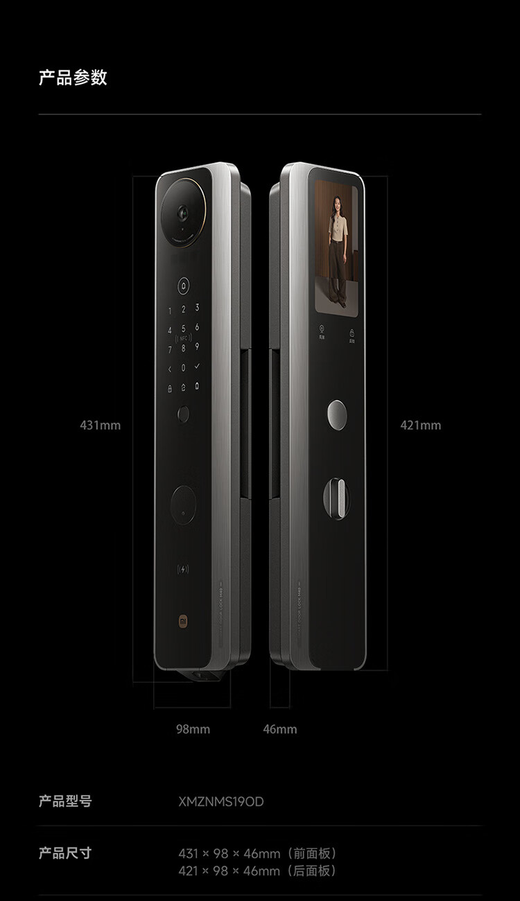 小米智能门锁 M40 双摄全景猫眼 人脸锁 指纹锁 电子锁防盗门锁