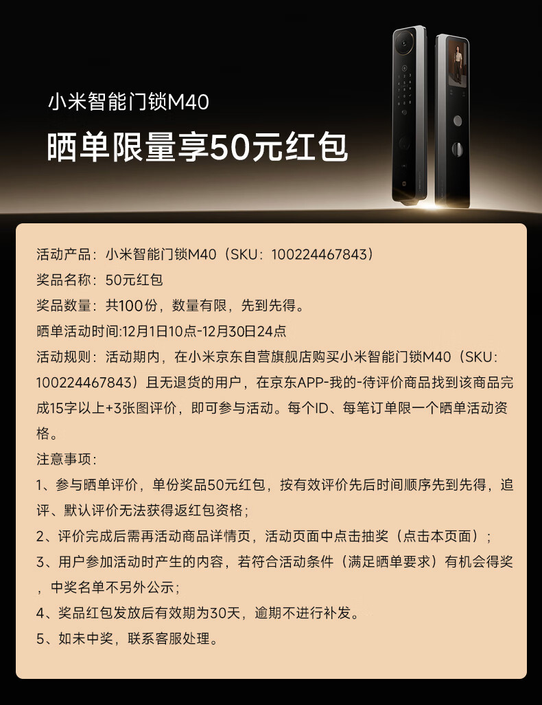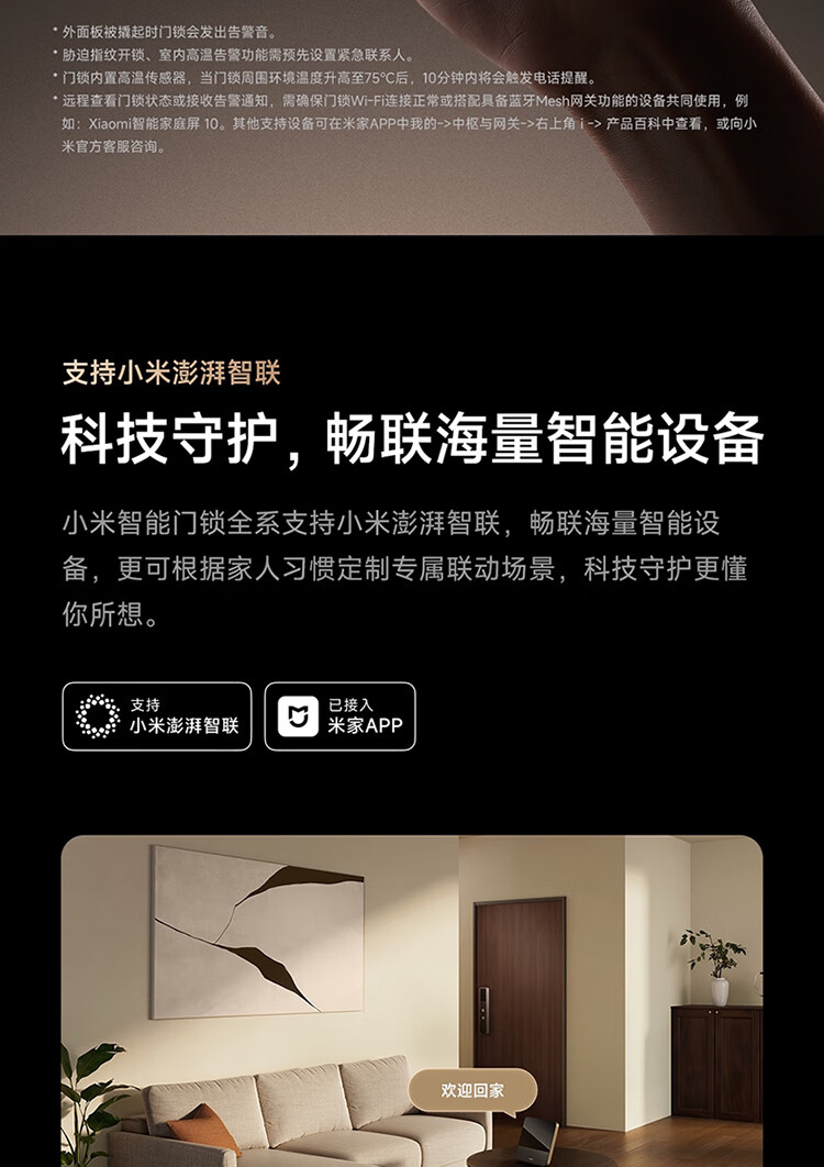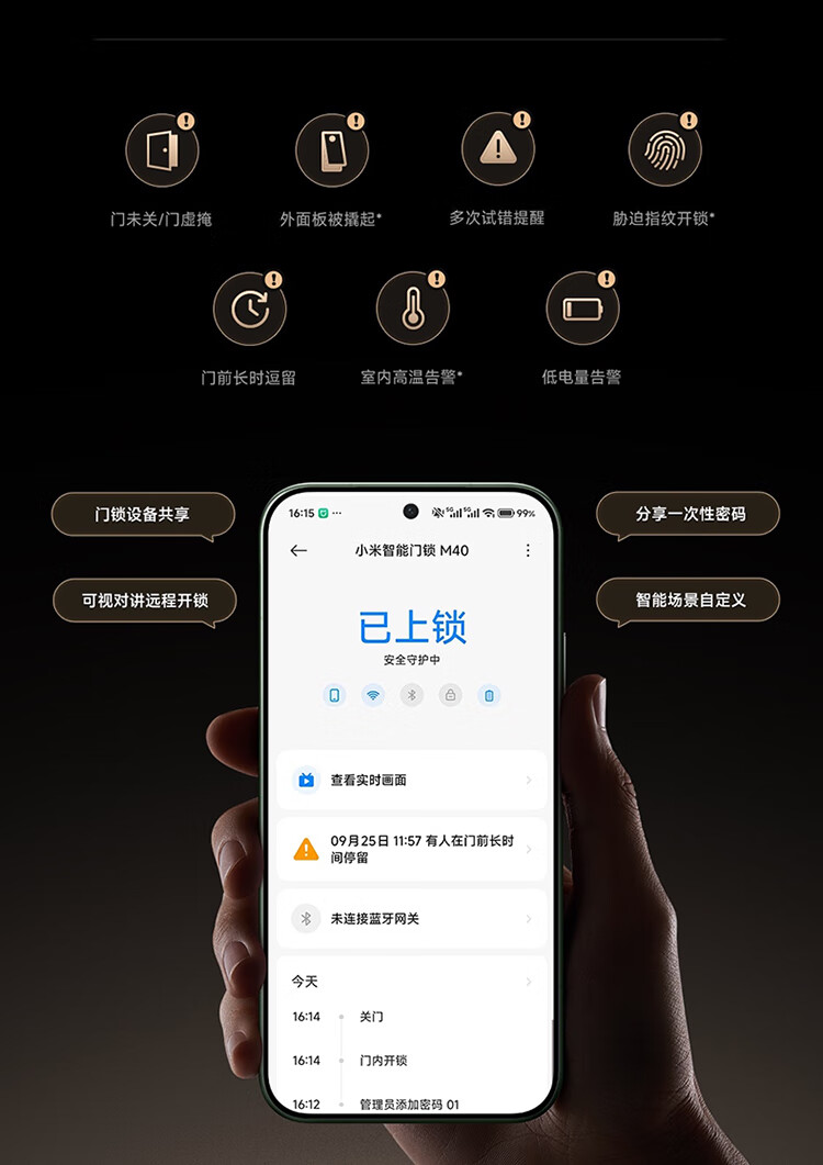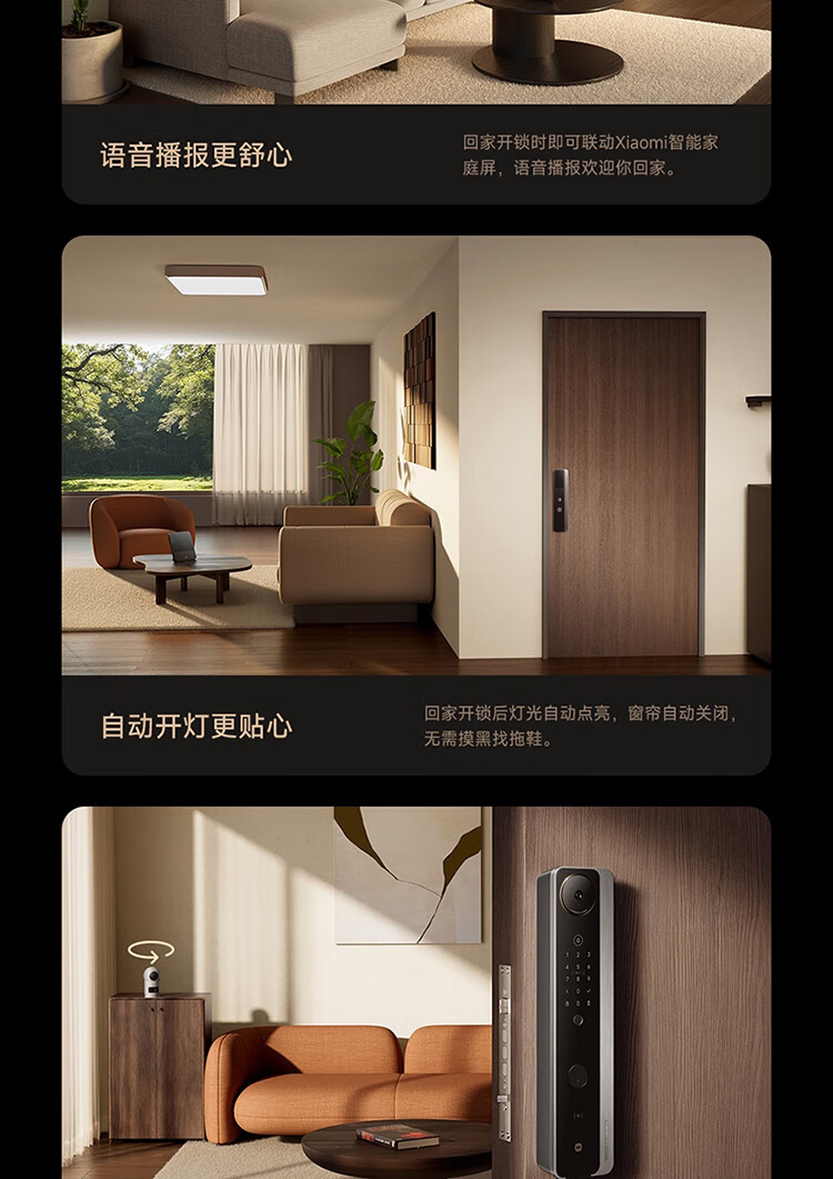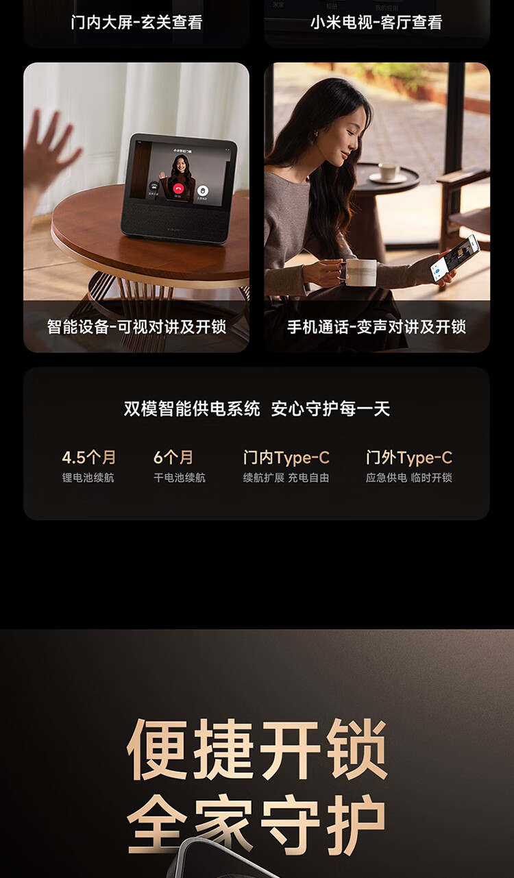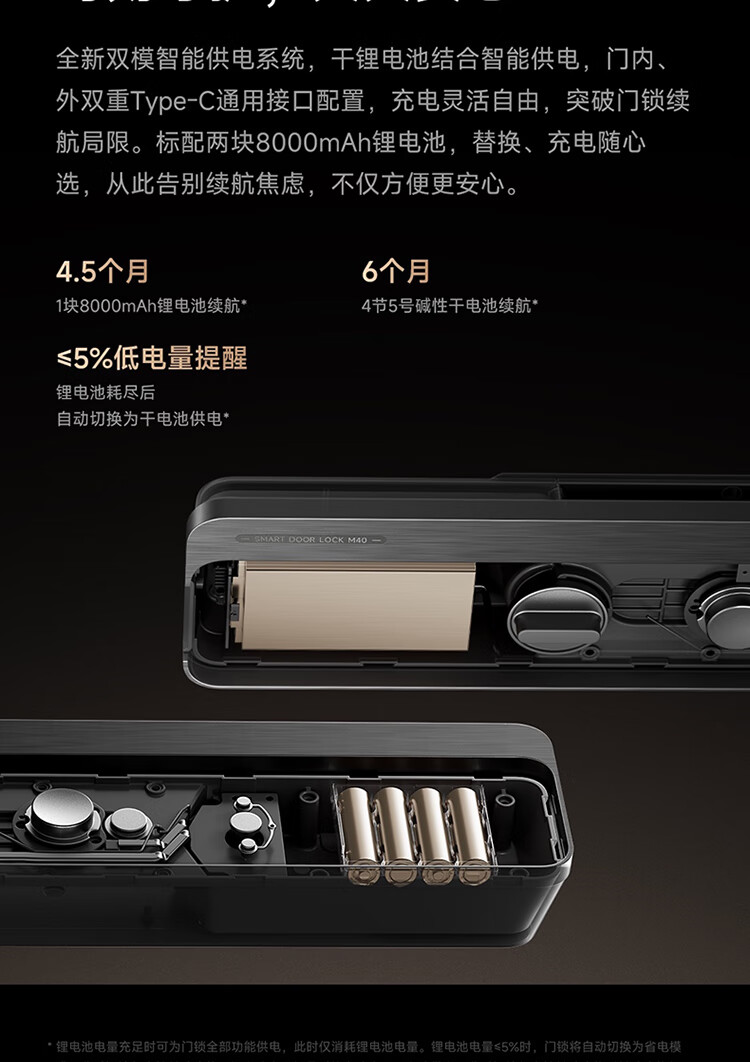 小米智能门锁 M40 双摄全景猫眼 人脸锁 指纹锁 电子锁防盗门锁