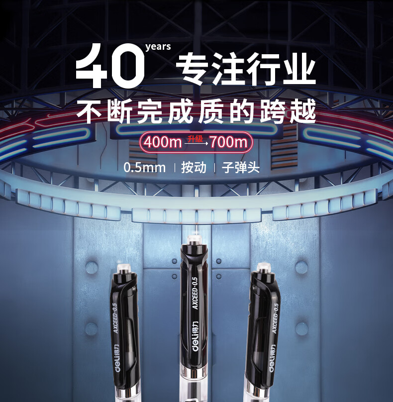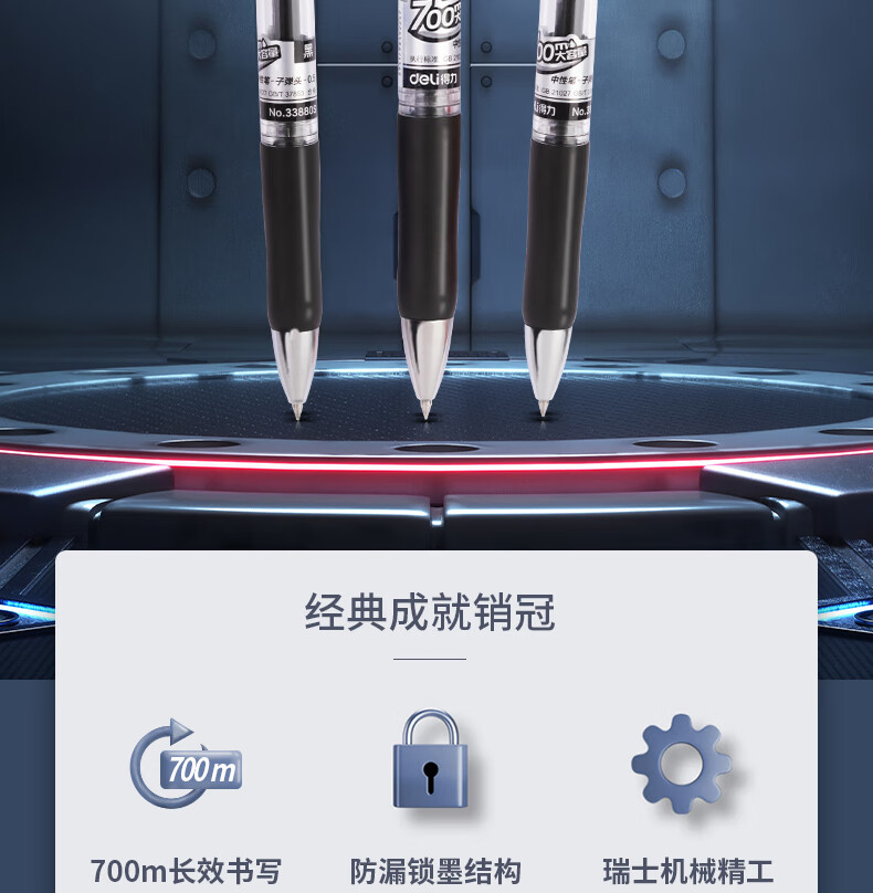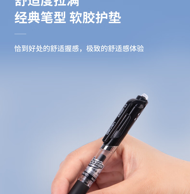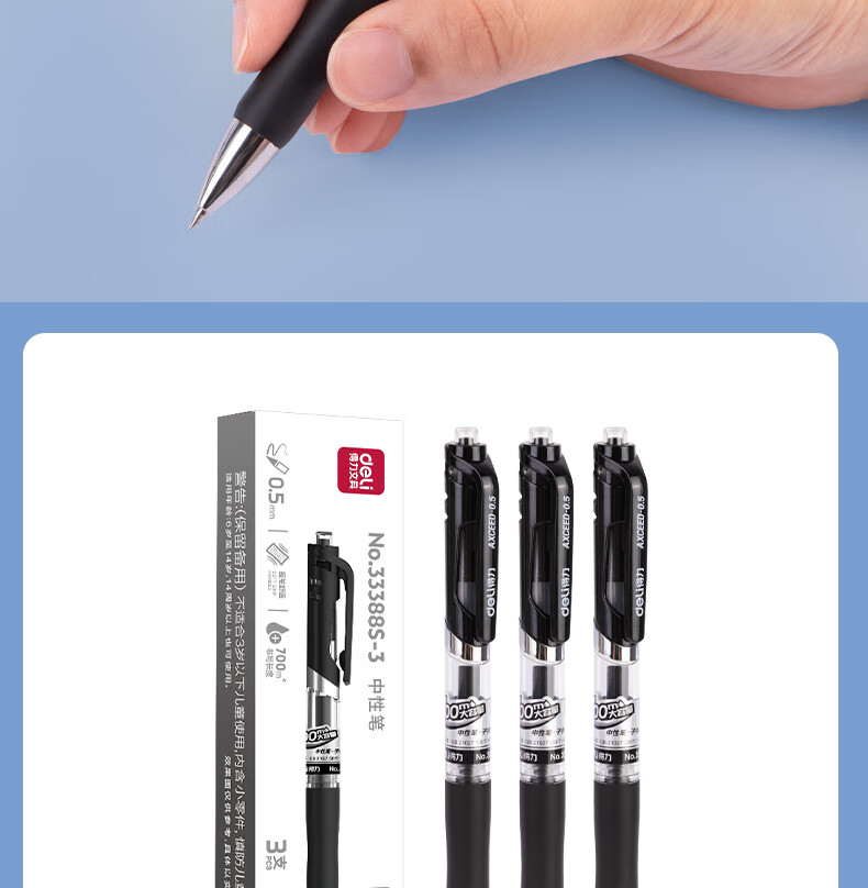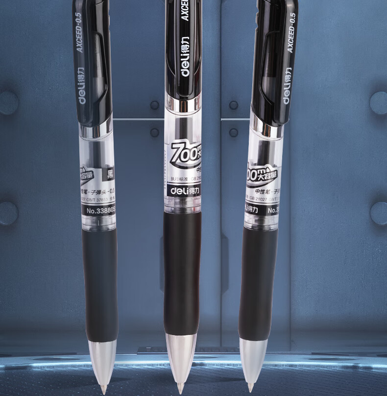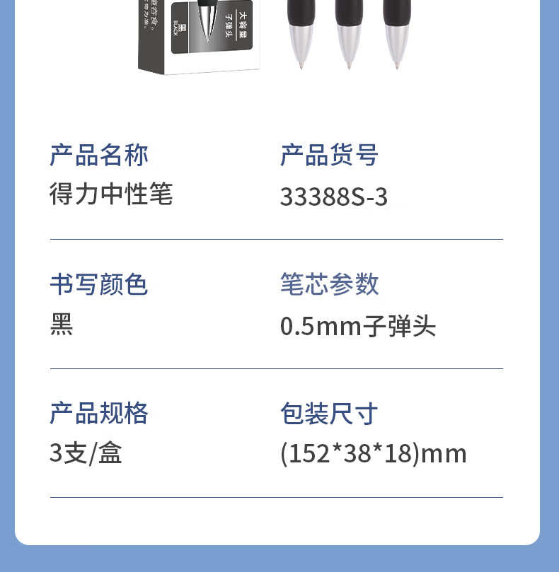 得力(deli)S01中性笔签字笔 0.5mm子弹头经典办公按动笔水笔 S01升级大容量长续航 黑色3支/盒 33388S-3
