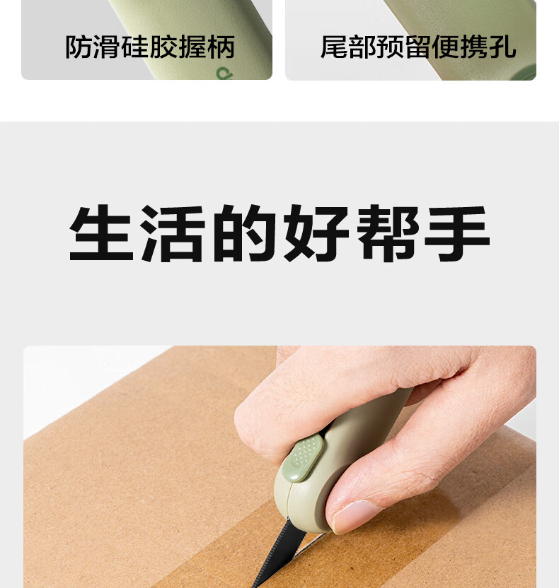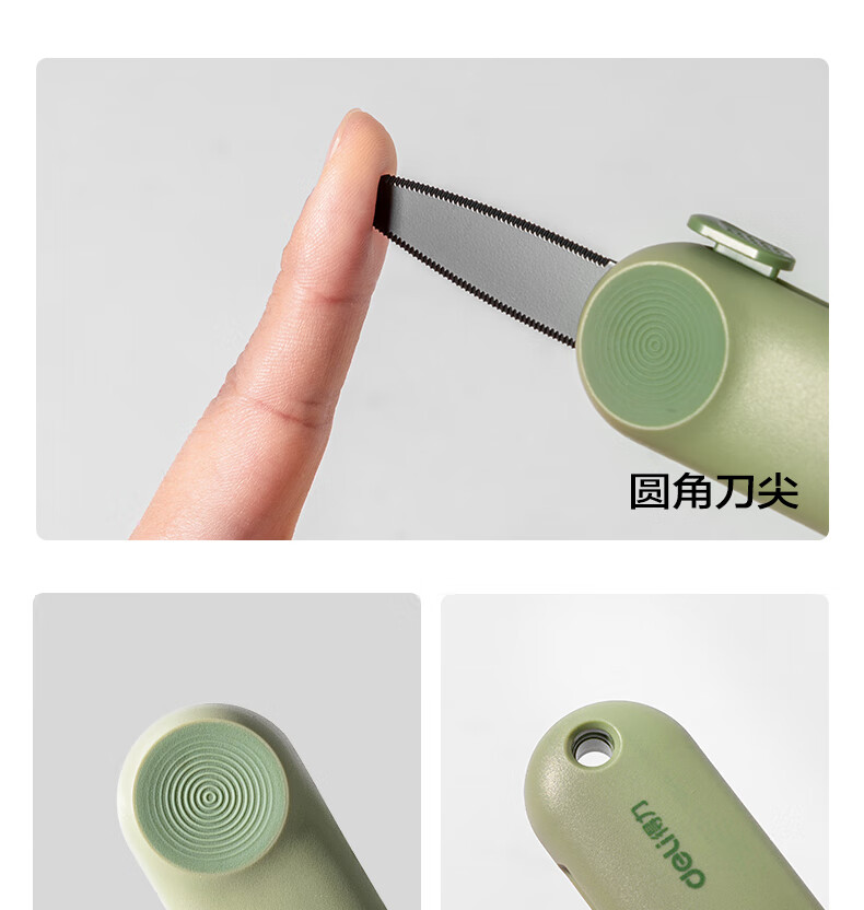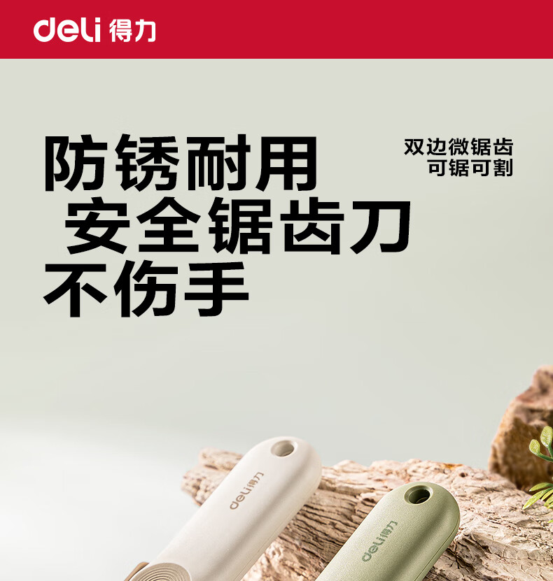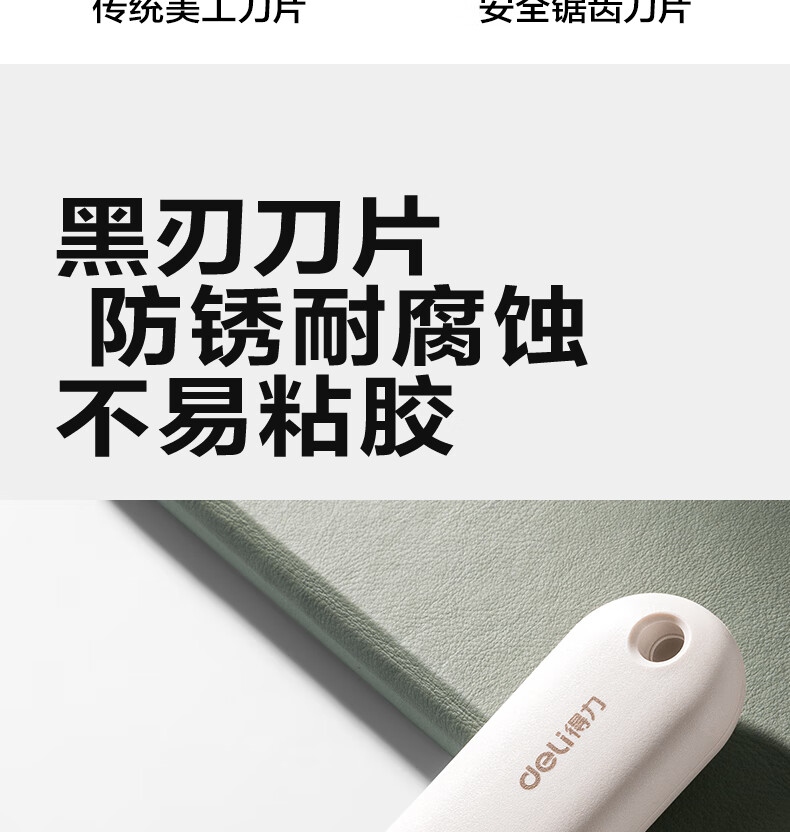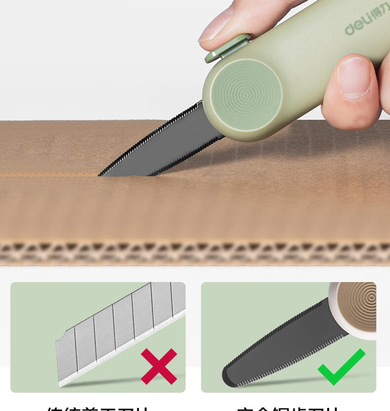得力(deli)美工刀小号黑刃防锈学生锯齿刀创意便携裁纸刀快递开箱神器安全开箱刀可锯可割办公用品 TD5绿