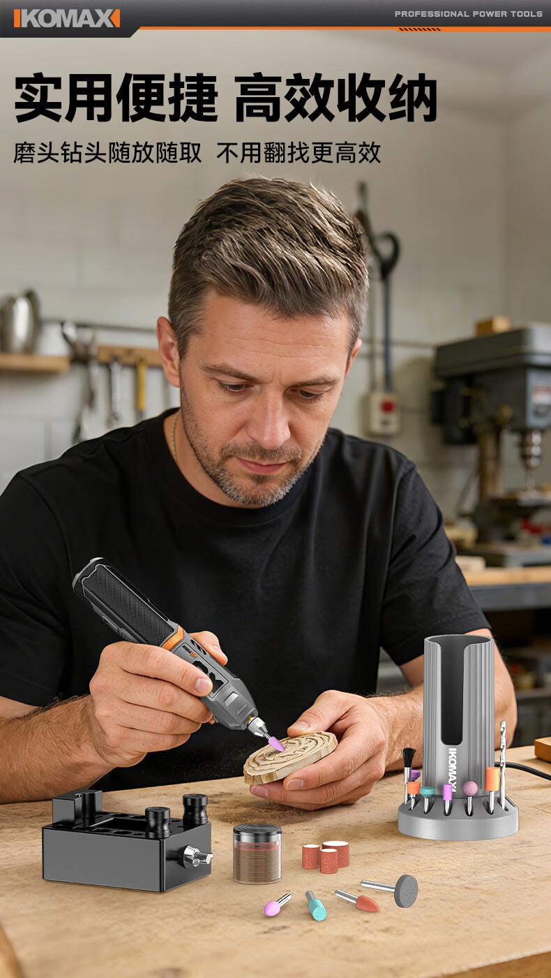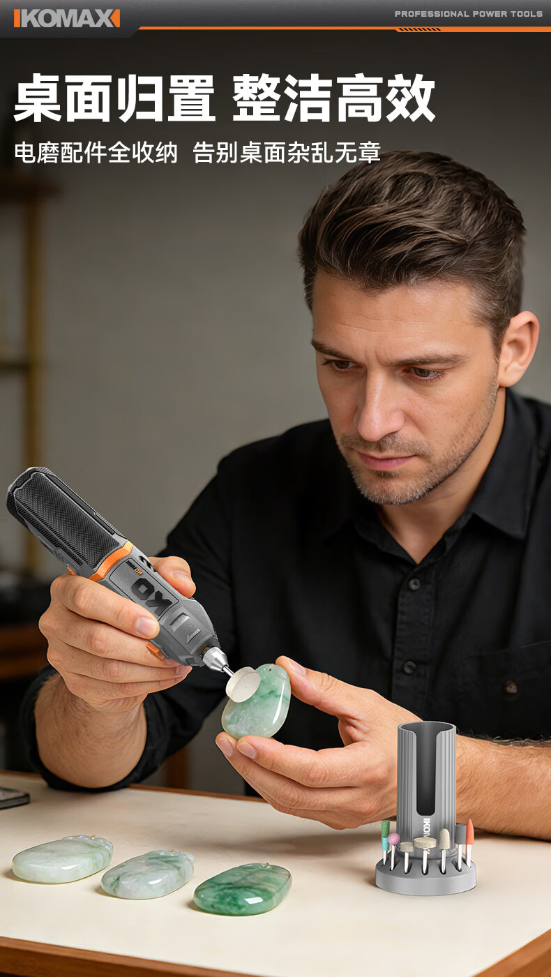 科麦斯(KOMAX)电磨充电底座便携锂电切割打磨抛光神器便携充电工具 灰色小电磨底座+31件套