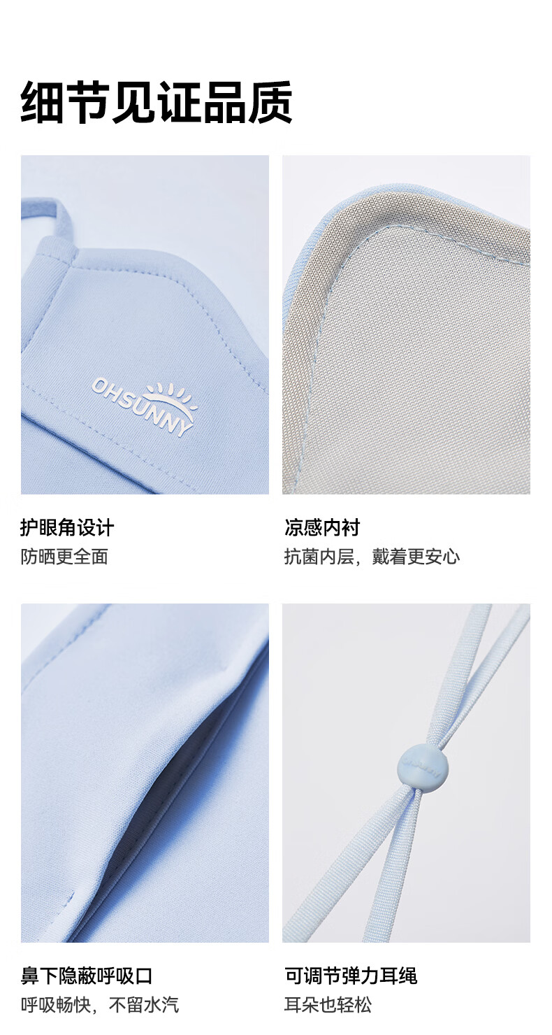 OhSunny防晒口罩女防紫外线护眼角户外骑行透气显瘦凉感遮阳面罩 云霜灰 奈娃联名款面罩