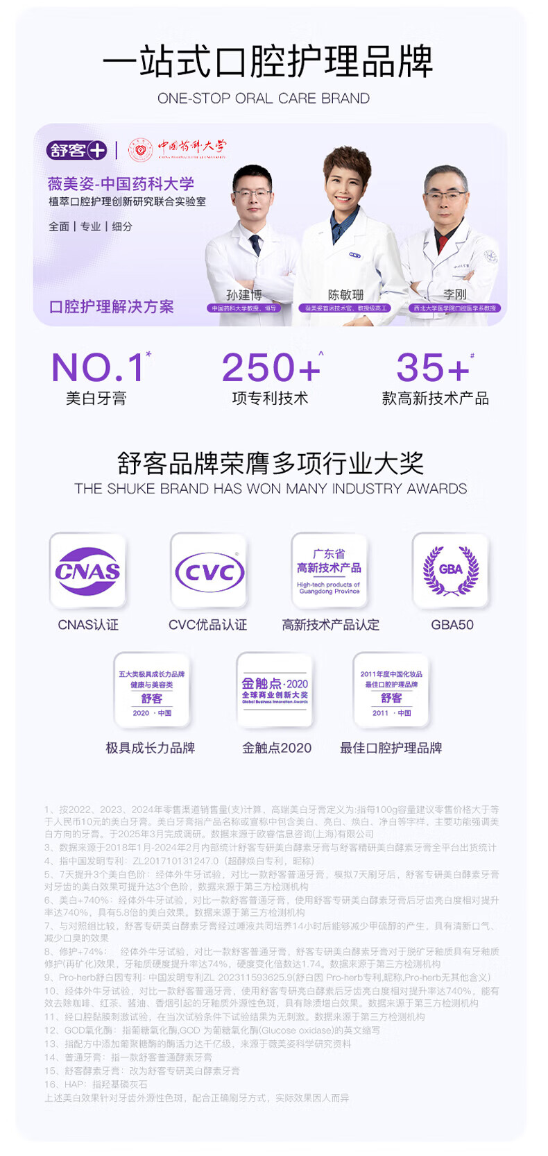 舒客爆款酵素牙膏去黄亮白清新口气护龈舒敏多种功效家庭装5件牙膏 多功效爆款酵素牙膏组合