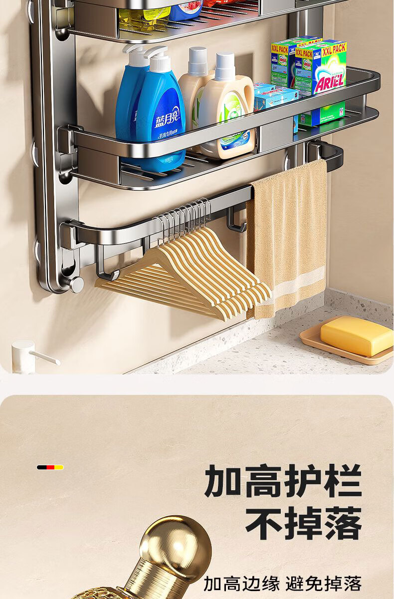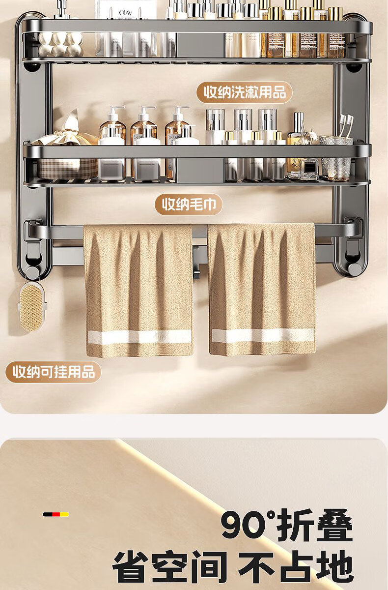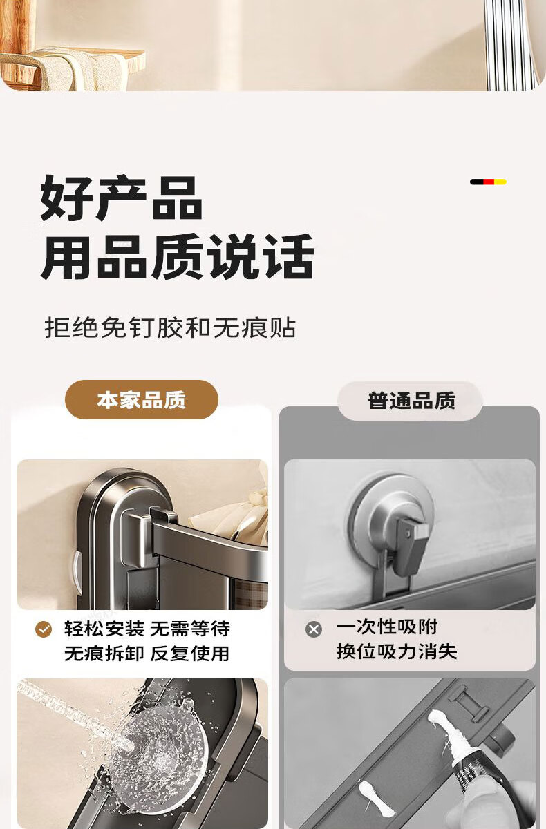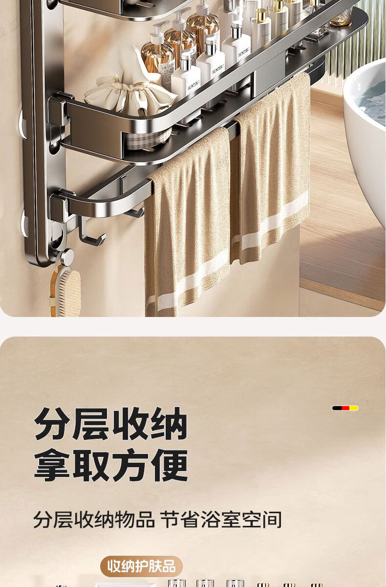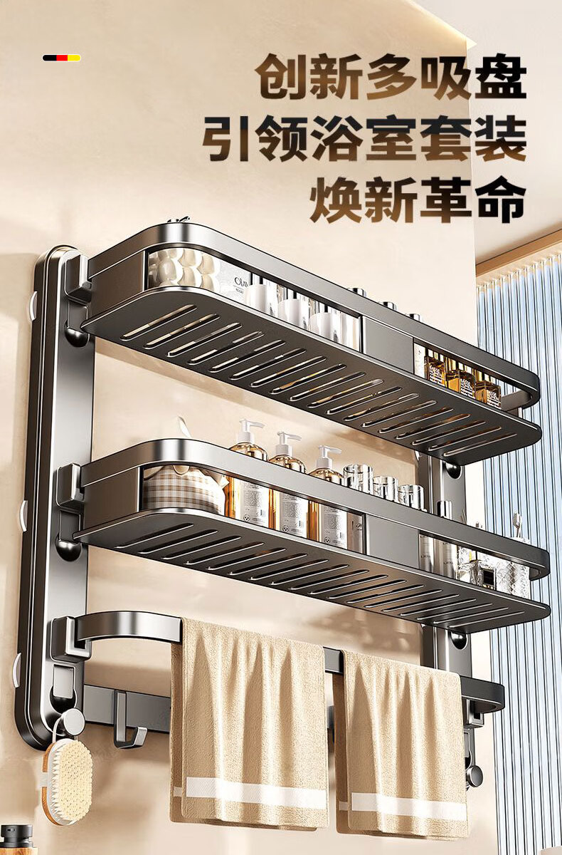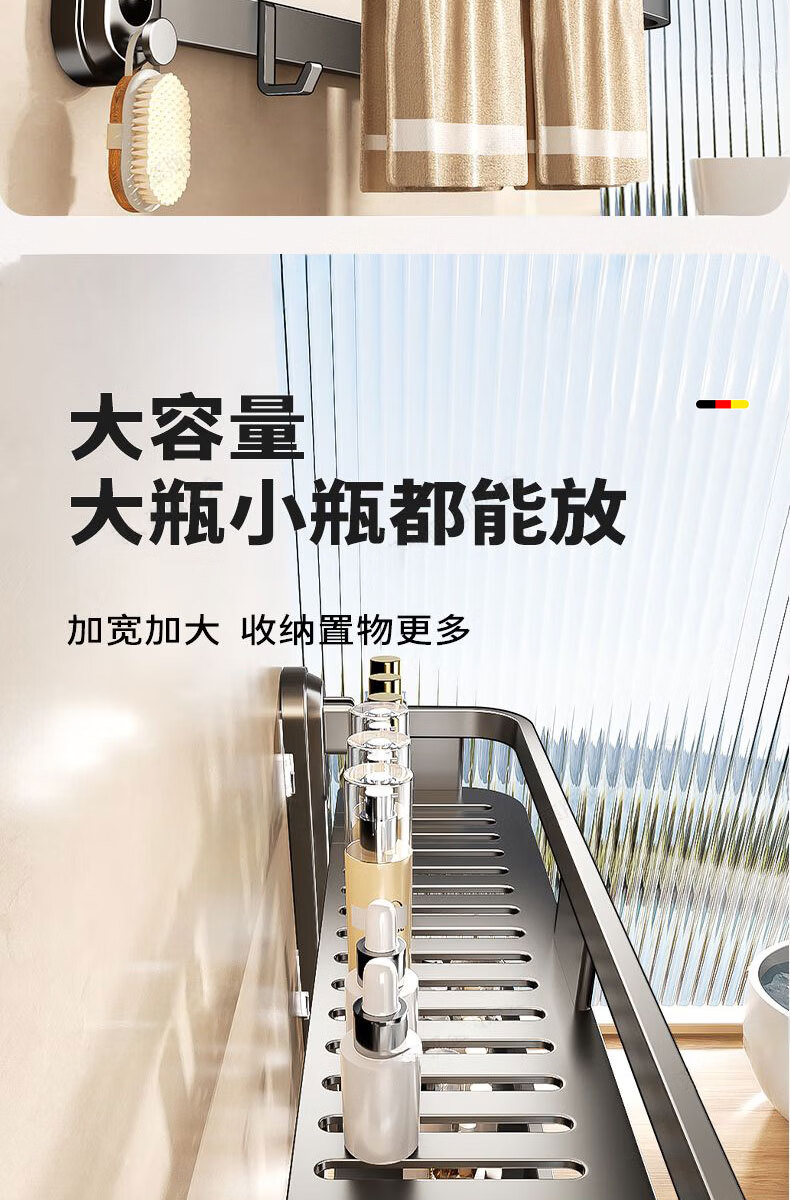 HOMK【德国】吸盘浴室置物架免打孔厕所洗手间收纳卫生间墙上毛巾挂架 【超大空间】免钉毛巾架50CM 免钉安装丨加厚材质丨强效吸力