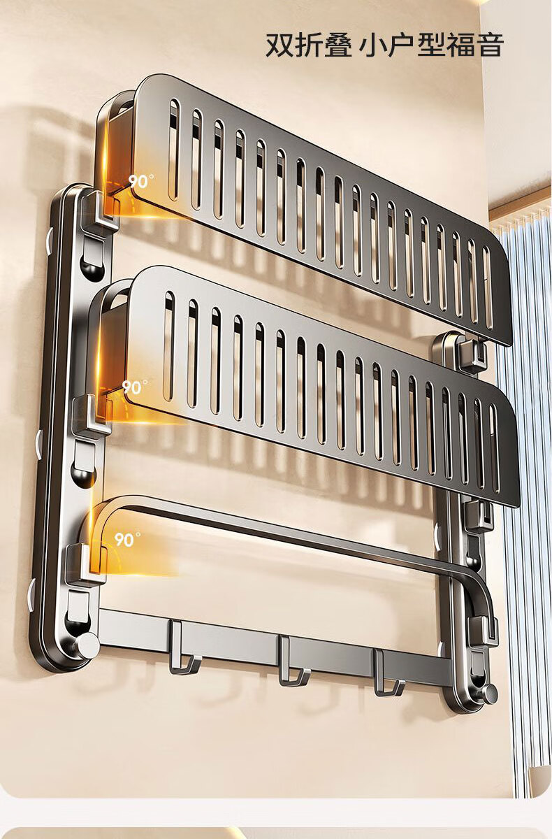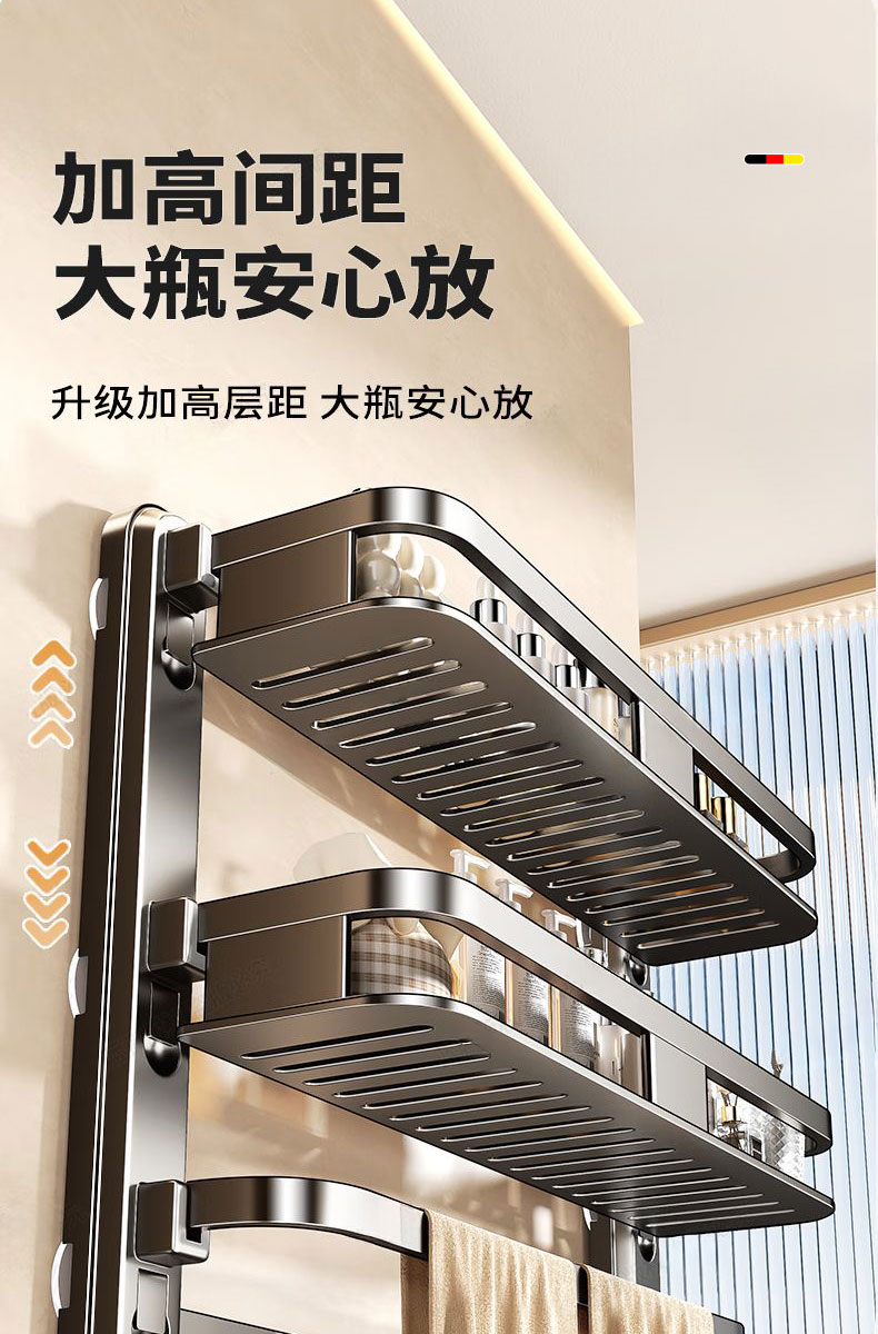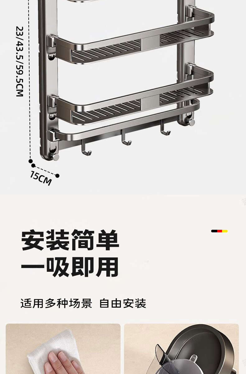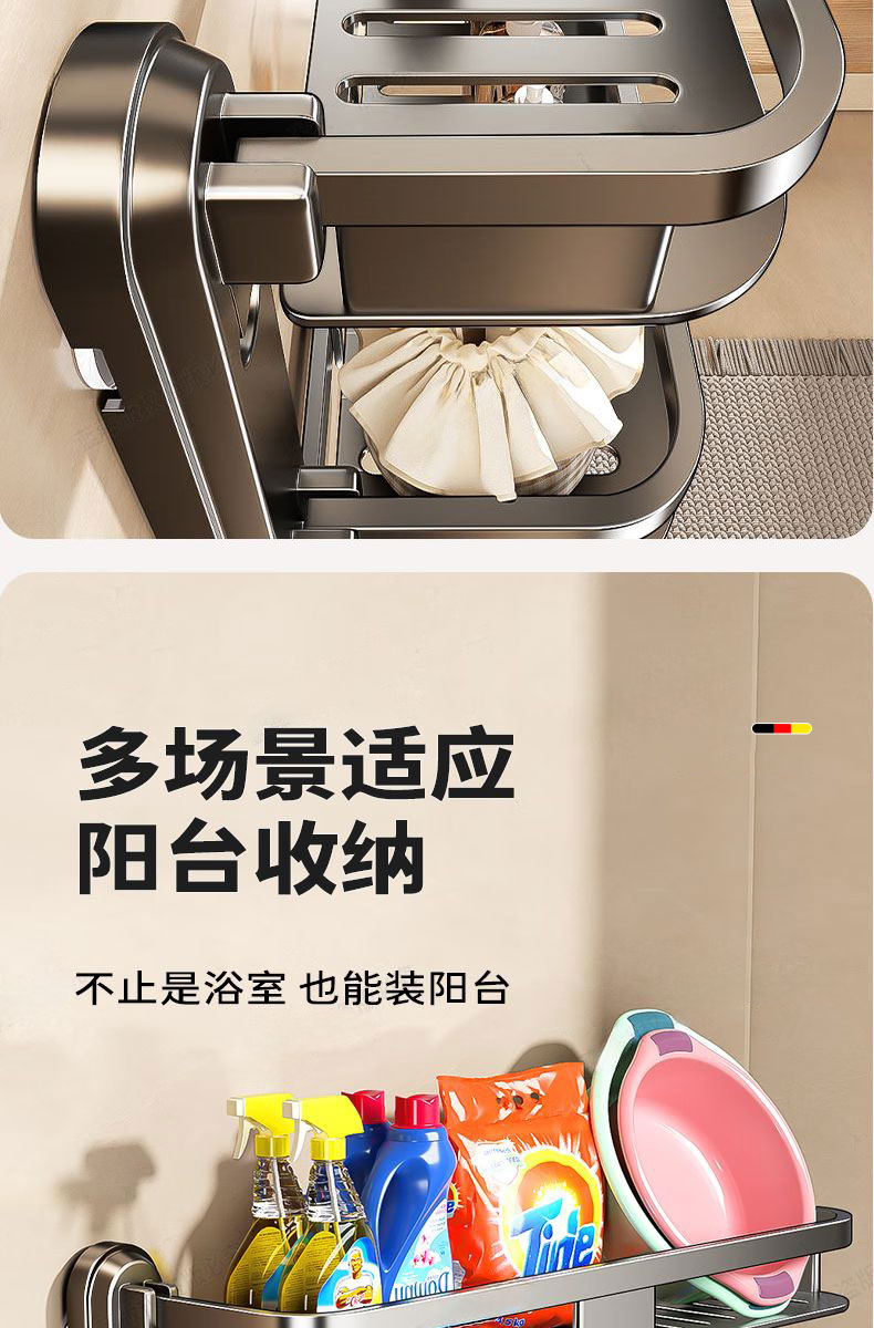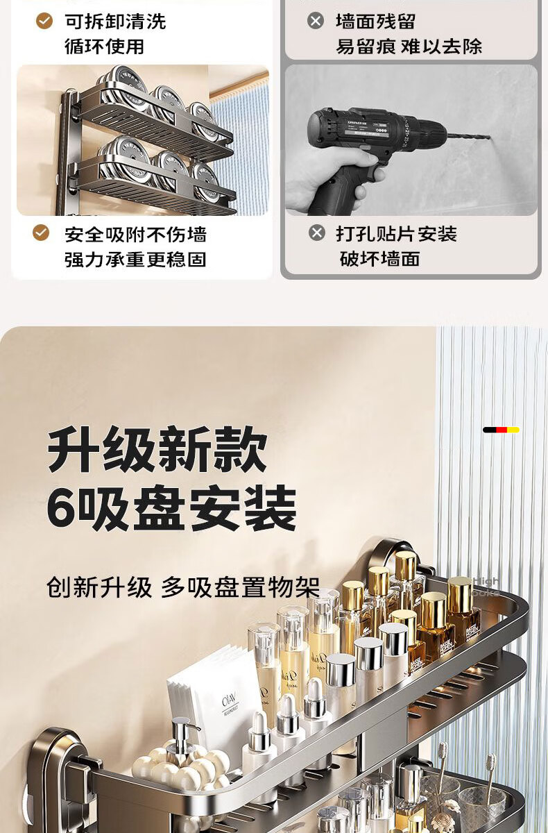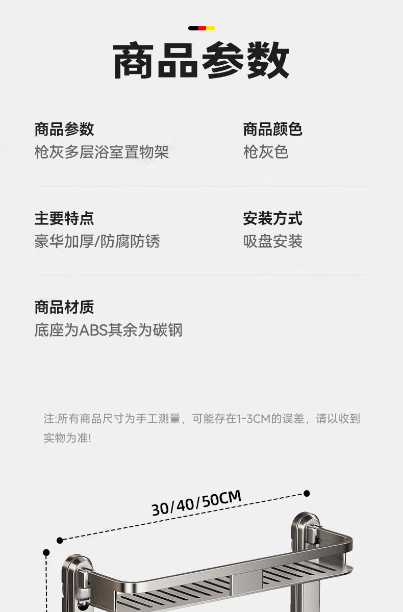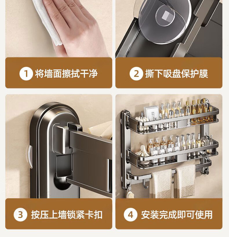 HOMK【德国】吸盘浴室置物架免打孔厕所洗手间收纳卫生间墙上毛巾挂架 【超大空间】免钉毛巾架50CM 免钉安装丨加厚材质丨强效吸力