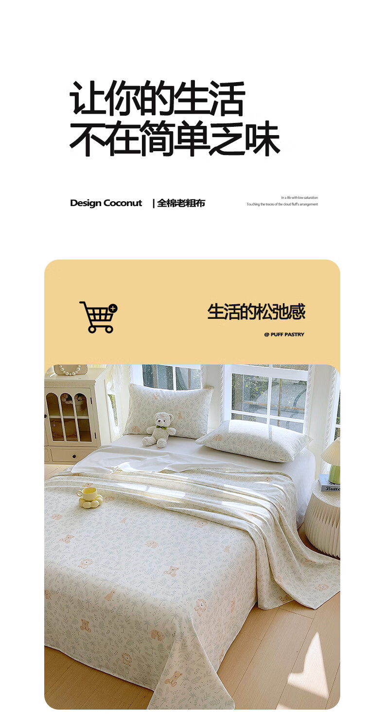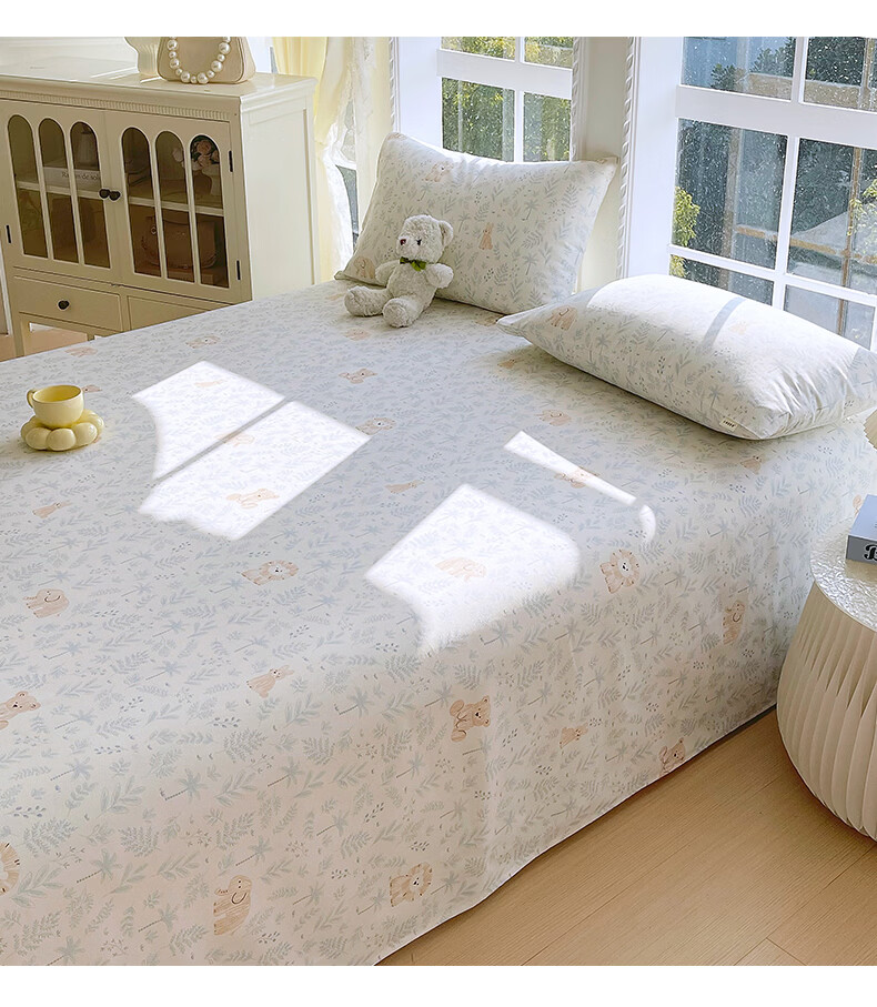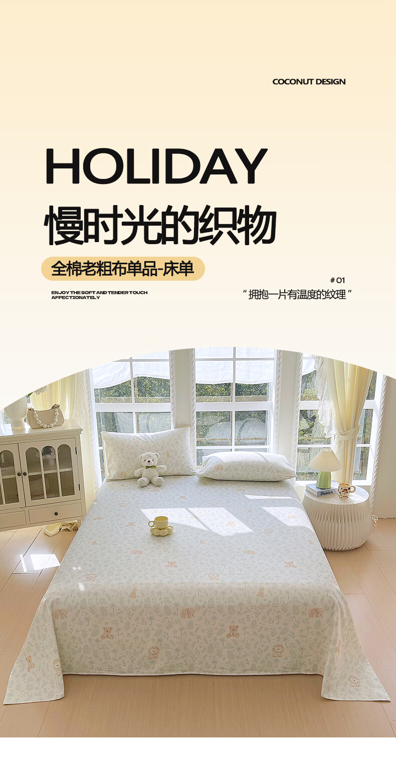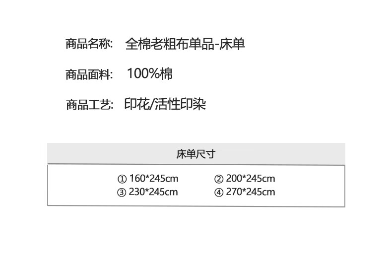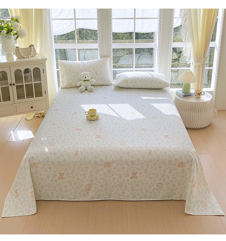 雅鹿纯棉老粗布床单1.5x2米可裸睡床单枕套三件套宿舍单人100全棉被单 森趣 【100%全棉老粗布】 单床单-200*245cm 【适合1.5m床】