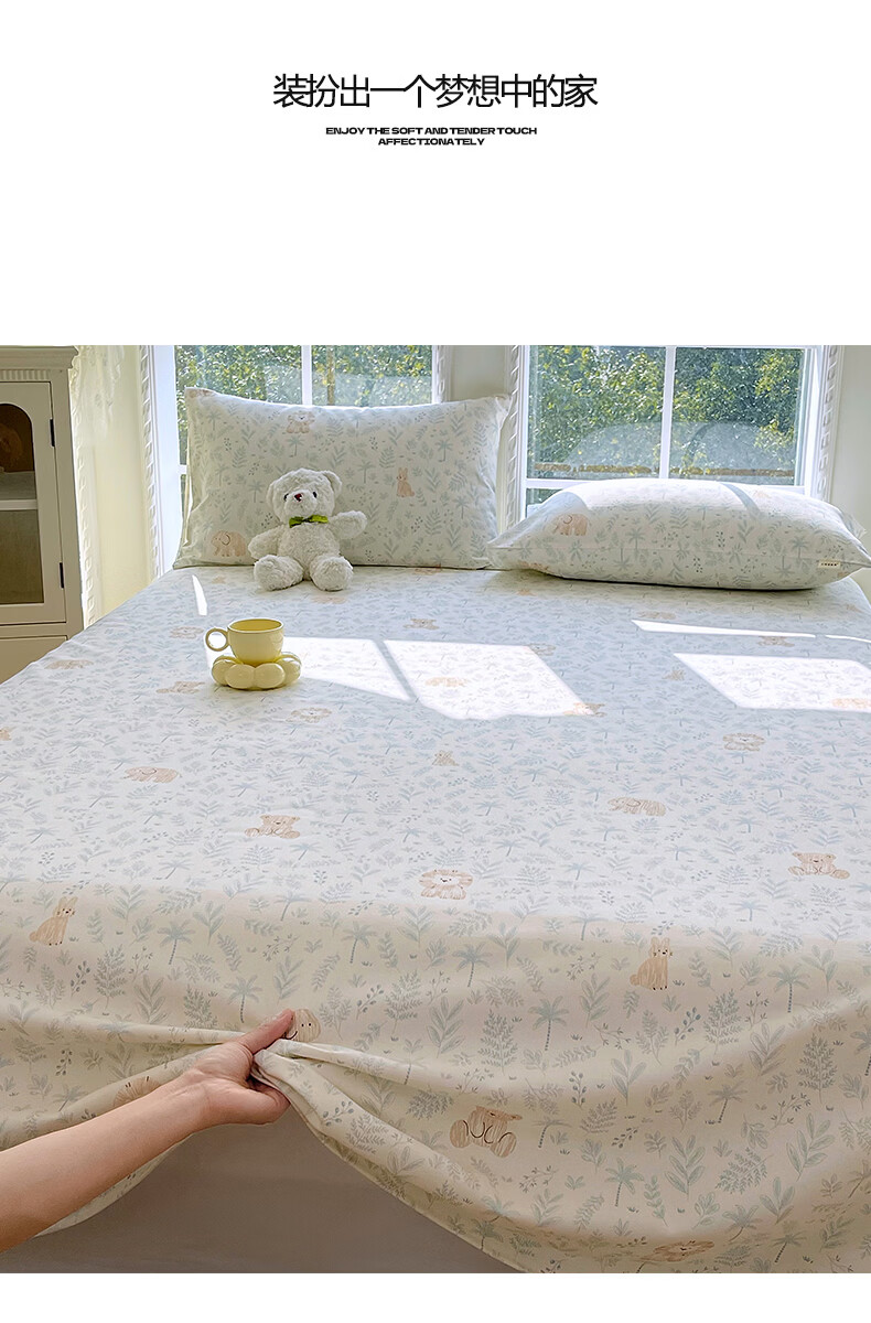 无印良品A类100%纯棉床上四件套全棉家用可裸睡床单被套床笠款床品三件套4 奶白薄荷绿【A类全棉面料】 1.8m 床单款 四件套-被套200x230cm