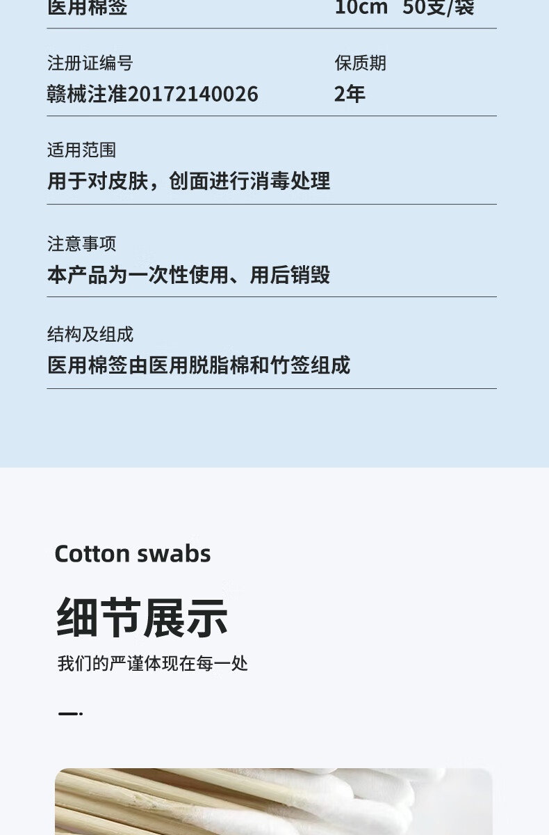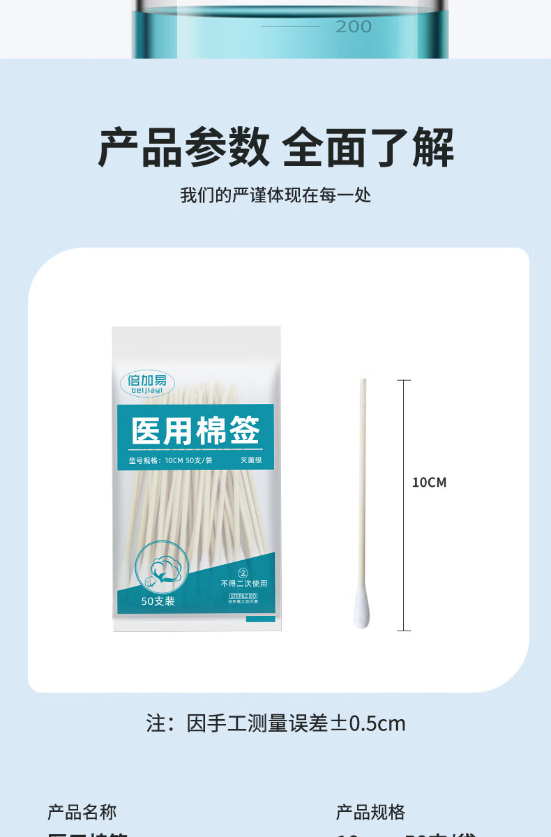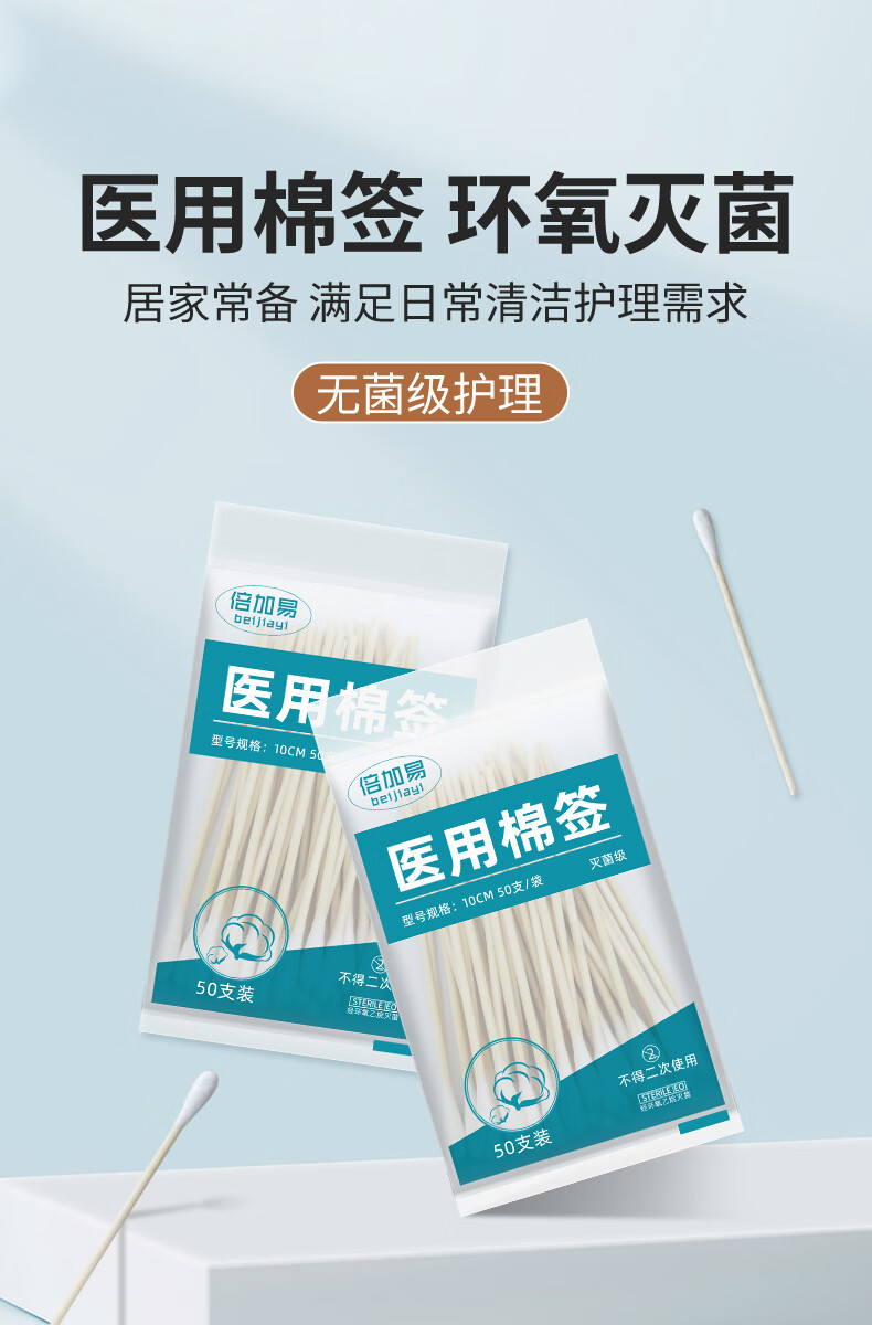医用棉签无菌医疗一次性消毒伤口清洁单头掏耳医药用灭菌木棉花棒 灭菌级10cm-2袋【共100支】
