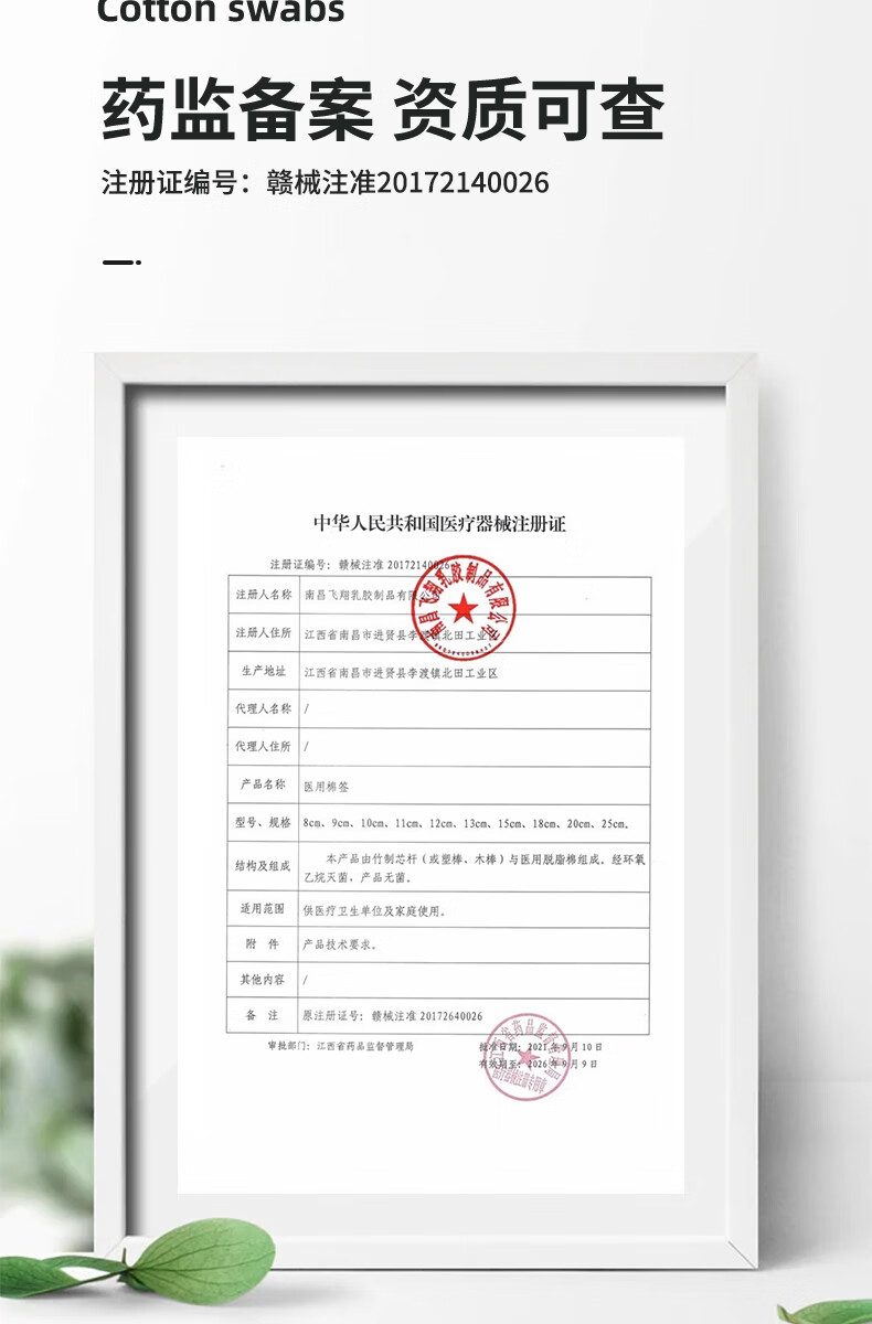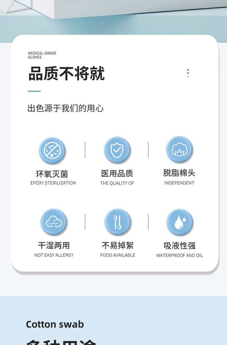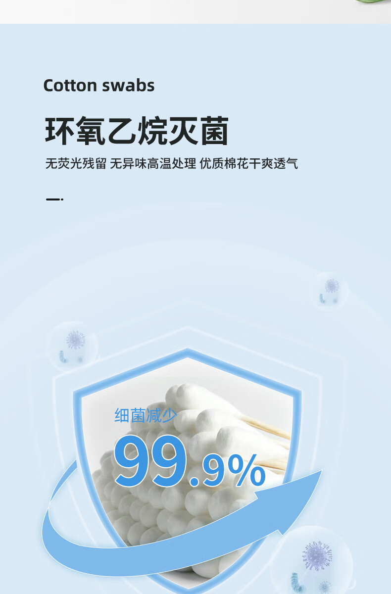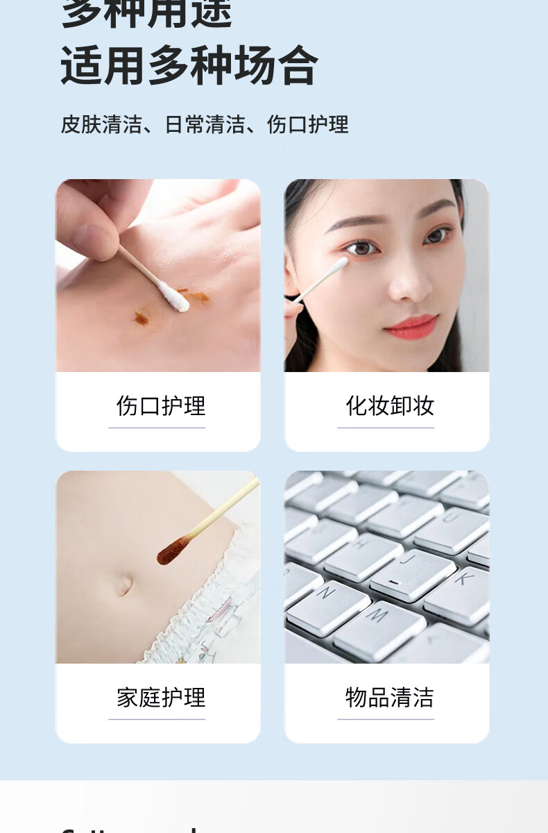 医用棉签无菌医疗一次性消毒伤口清洁单头掏耳医药用灭菌木棉花棒 灭菌级10cm-2袋【共100支】