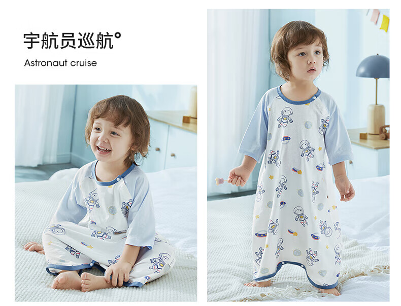 贝肽斯婴儿睡袋夏季薄款儿童睡裙纯棉家居空调防踢被一体睡衣宇航员90码