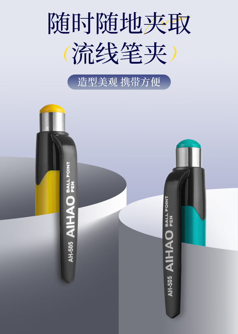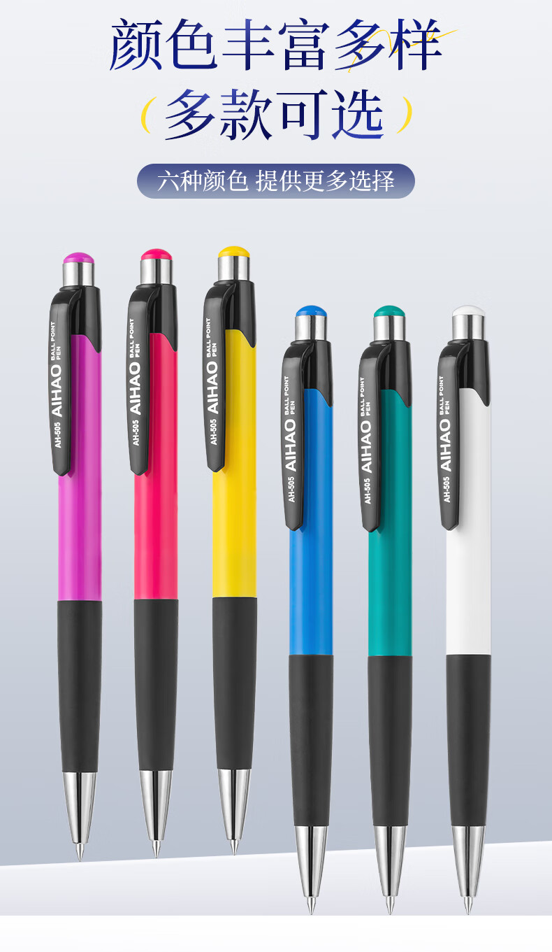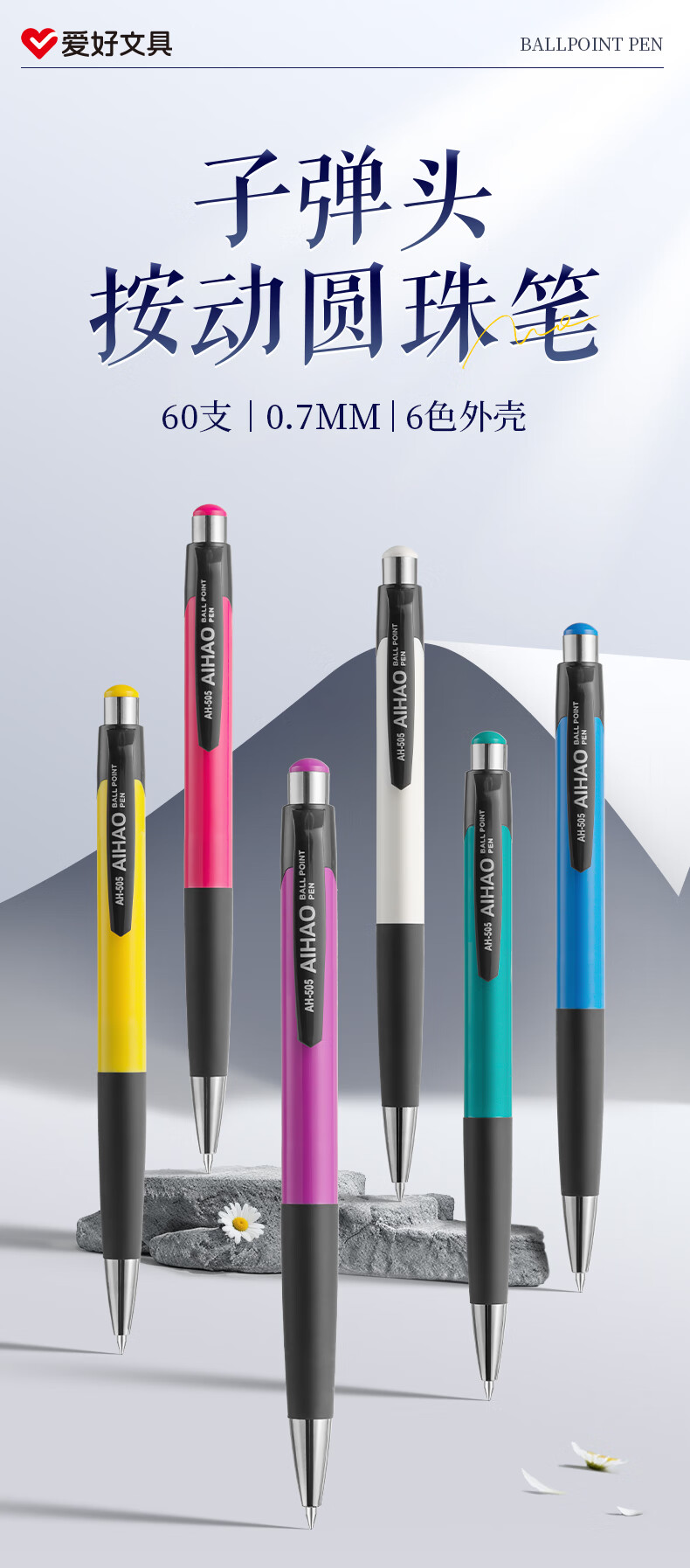 爱好(AIHAO)按动圆珠笔0.7mm中油笔子弹头原珠笔商务办公笔学生蓝色经典圆珠笔12支/盒 ah505
