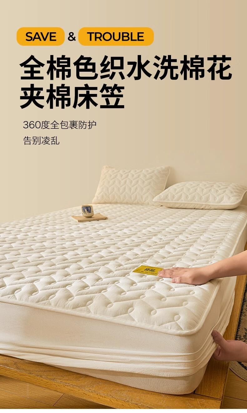 红蜻蜓(RED DRAGONFLY)A类全棉床笠1.5x2米家用单双人床垫保护套加厚纯棉全包床罩床套 星芒-奶白【100%甄选全棉 质保】 单床笠-150x200cm【全包裹 不位移】
