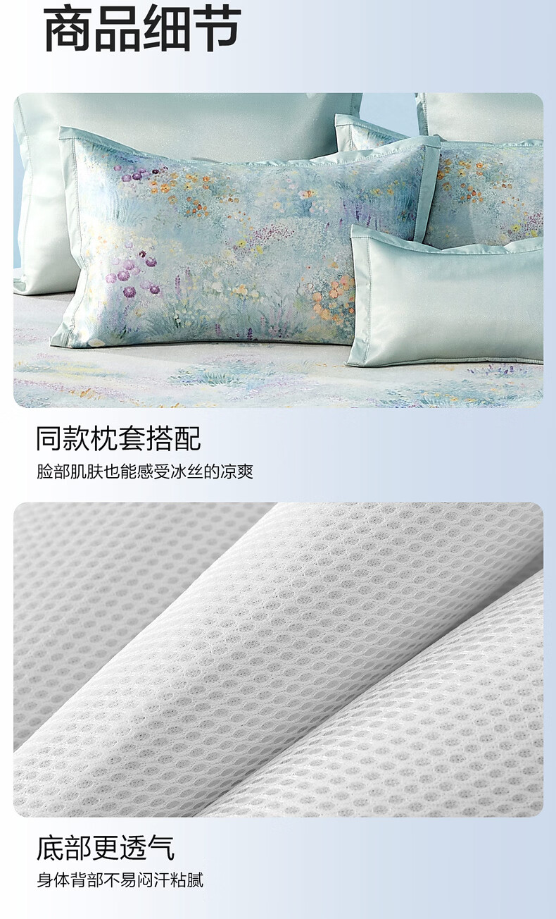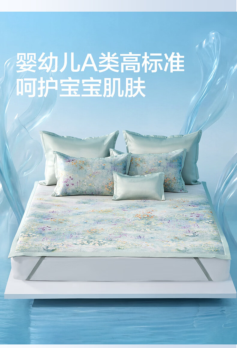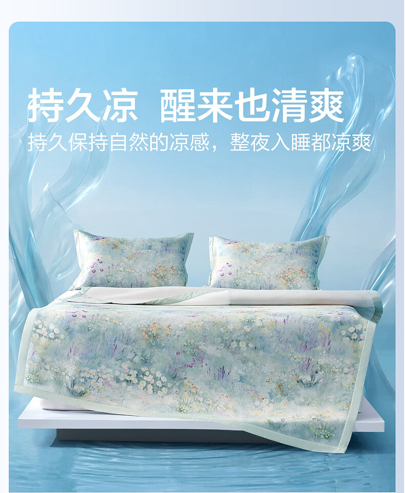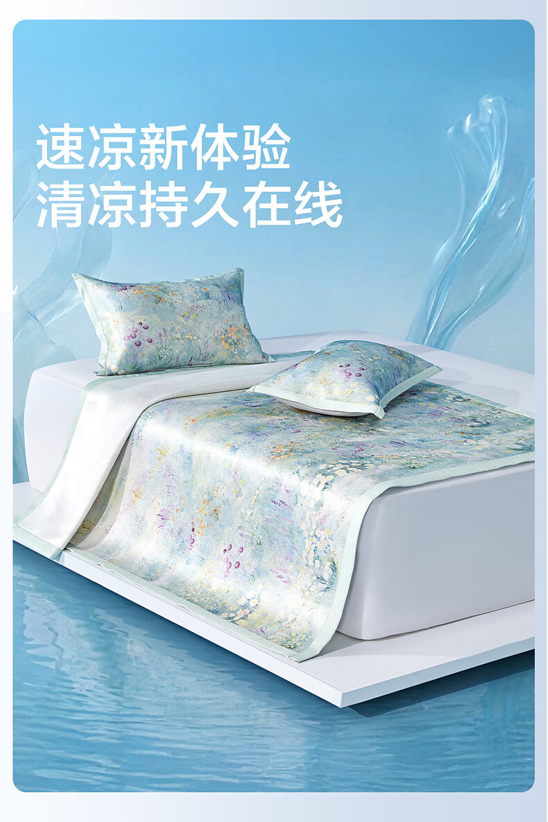 水星家纺澄净·澜色旷野可水洗印花冰丝席 澄净·澜色旷野可水洗印花冰丝席三件套(绿光色) 三件套 1.5m 200cm*150cm