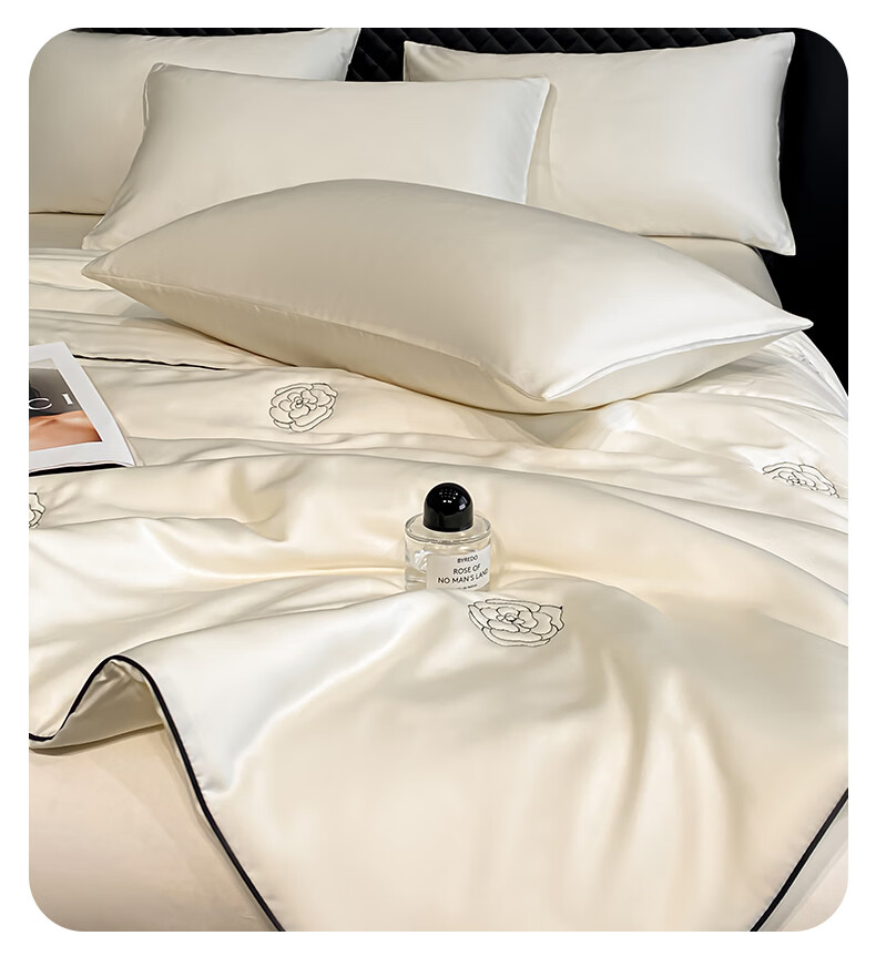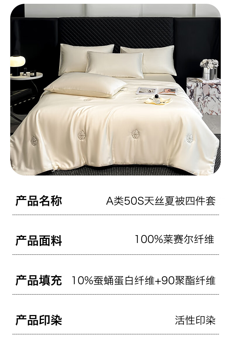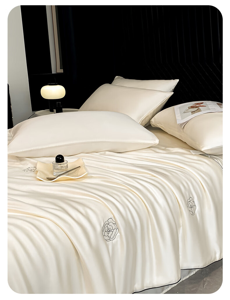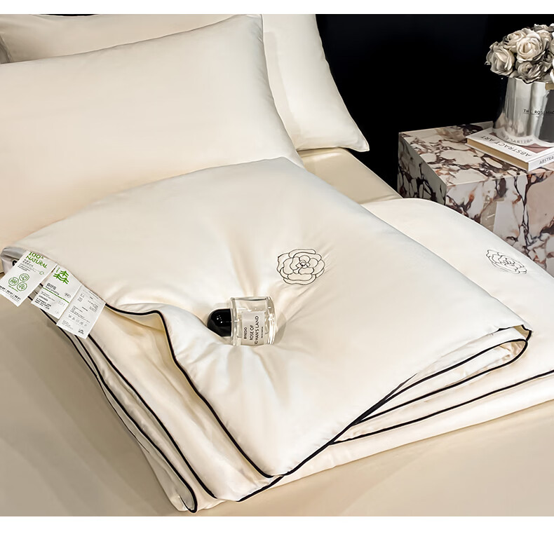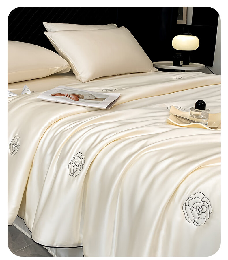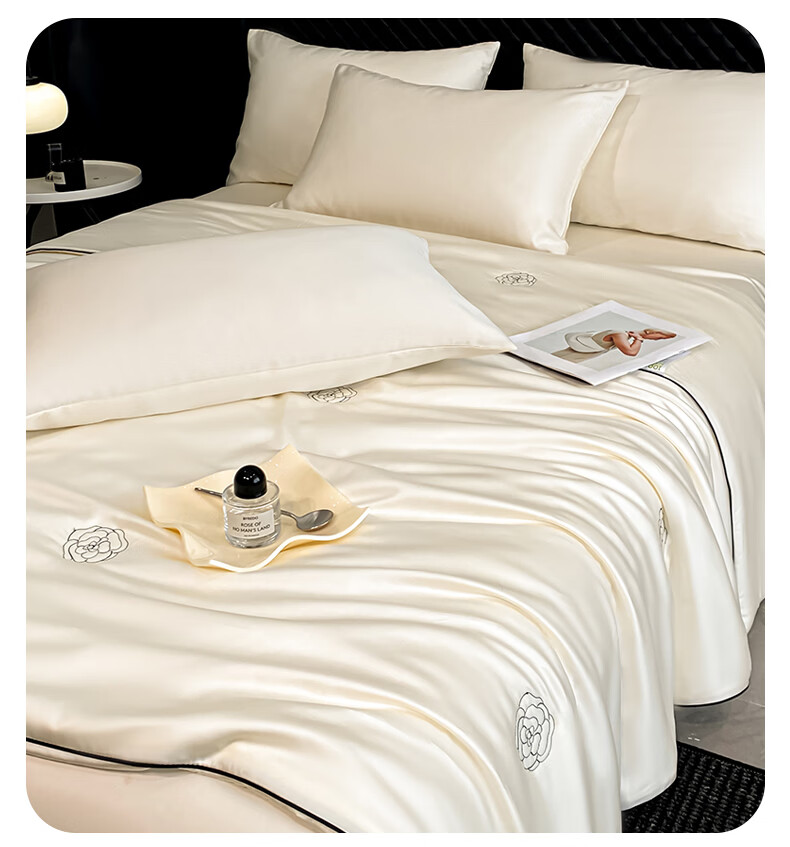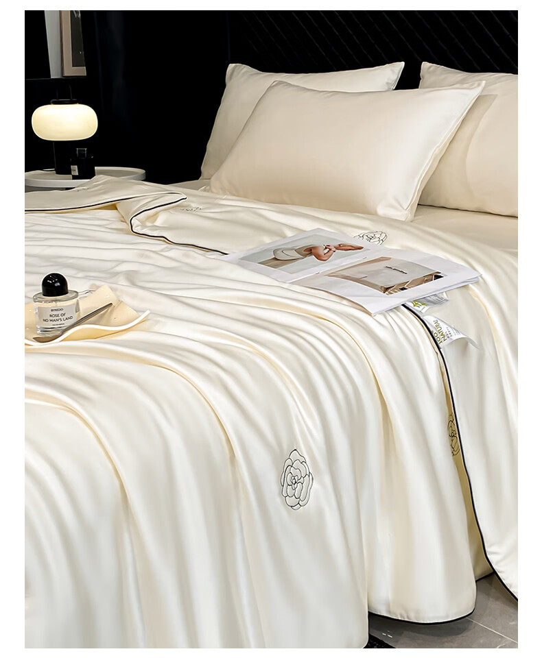 无印良品A类莱赛尔天丝夏凉被单人空调被1.5x2米夏季被子薄款可机水洗夏被 天丝山茶之恋-净白【A类天丝 细腻亲肤】 150*200cm单夏被