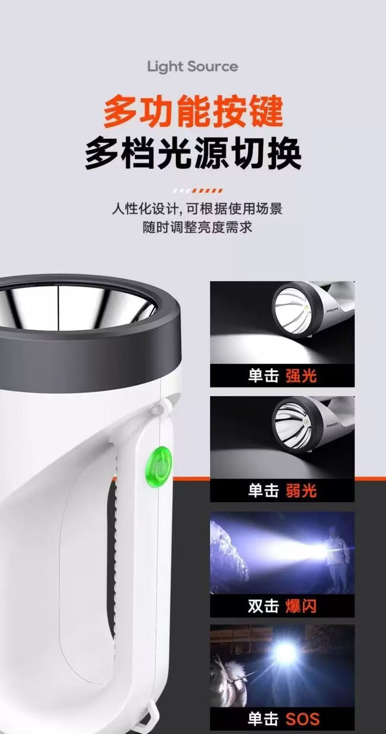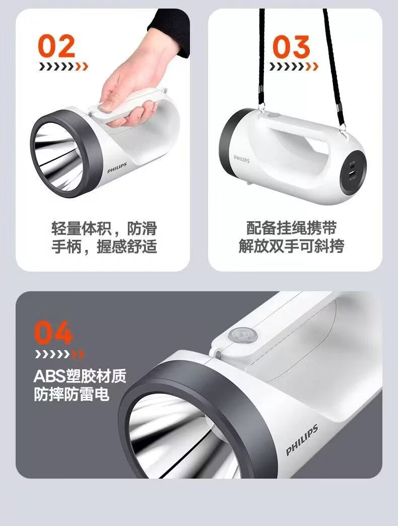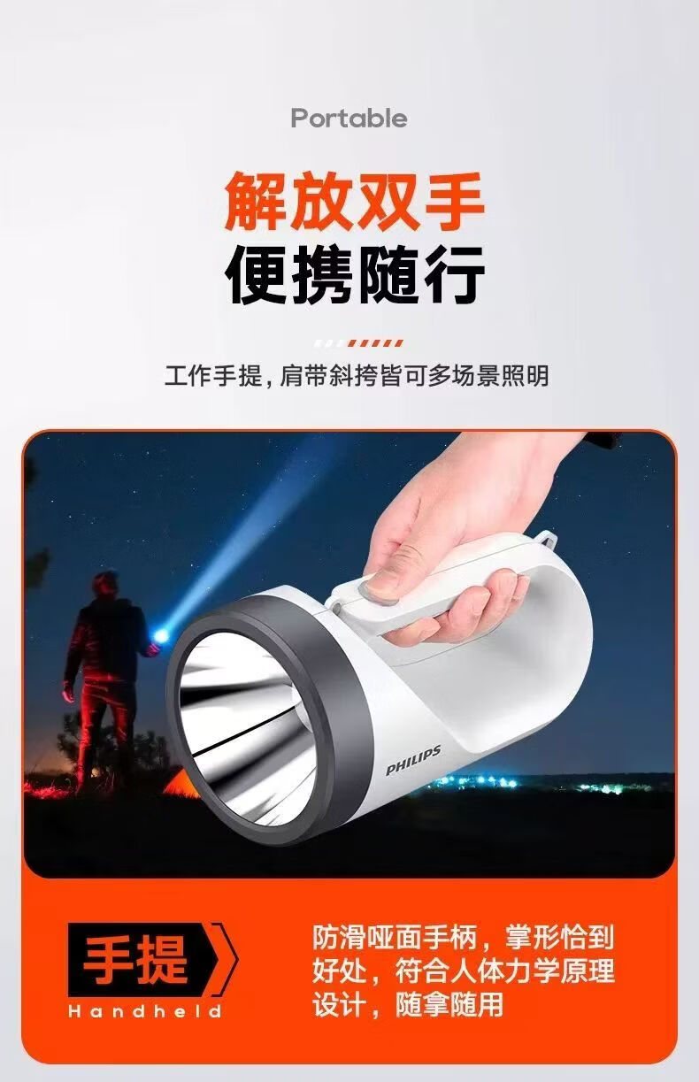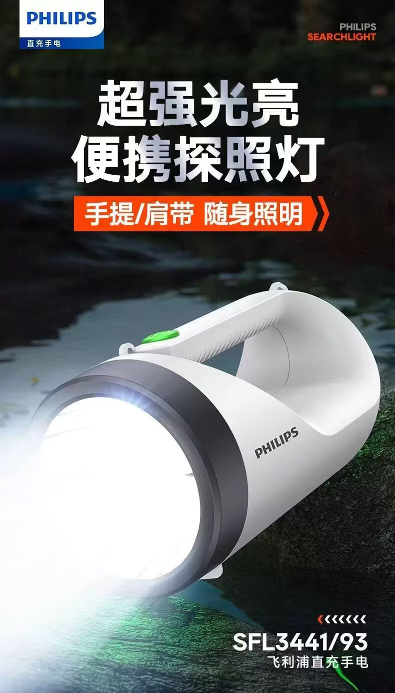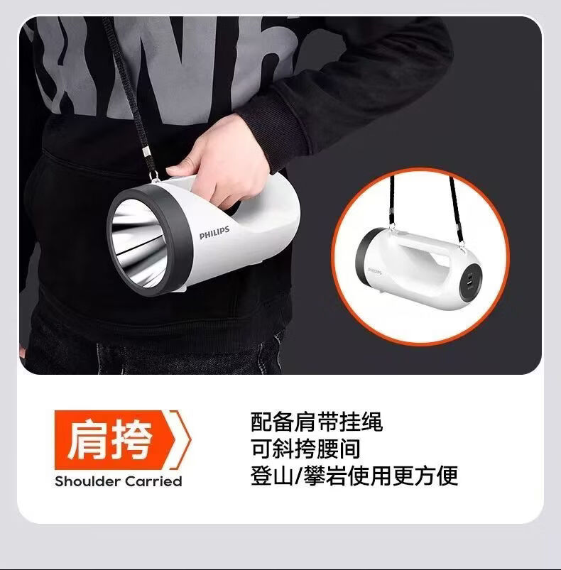 飞利浦(PHILIPS)手电筒强光广角远射超亮便携手提探照灯露营巡逻灯SFL3441W 5W/3600毫安/SFL3441W