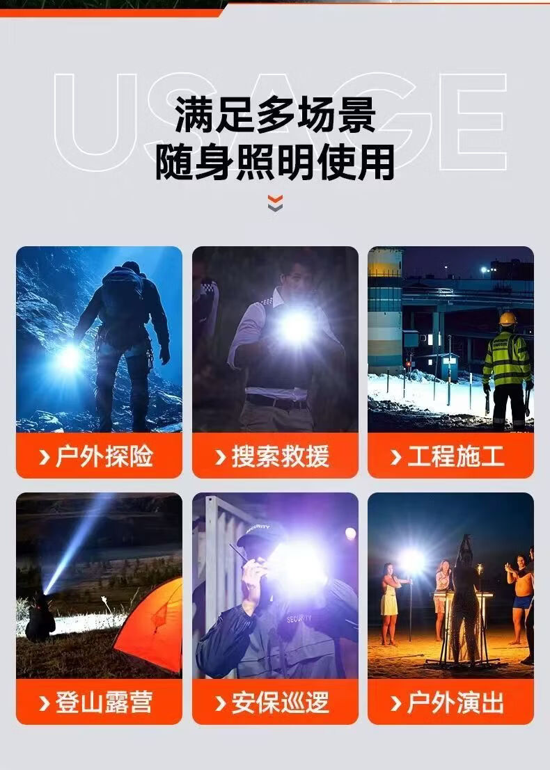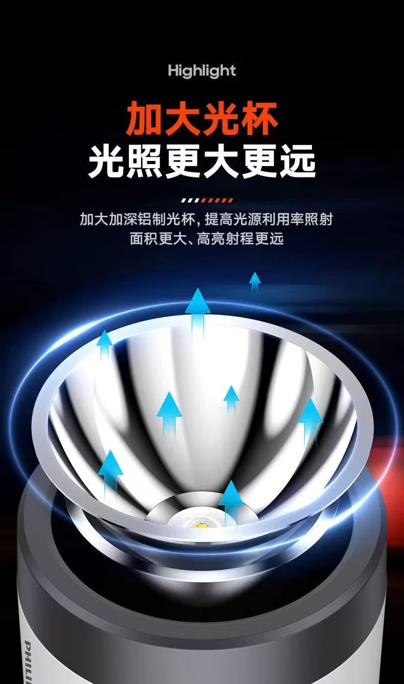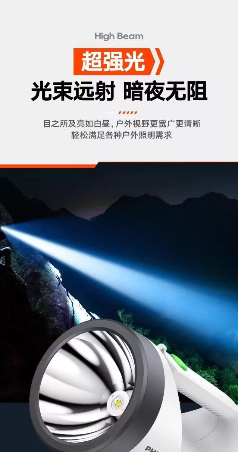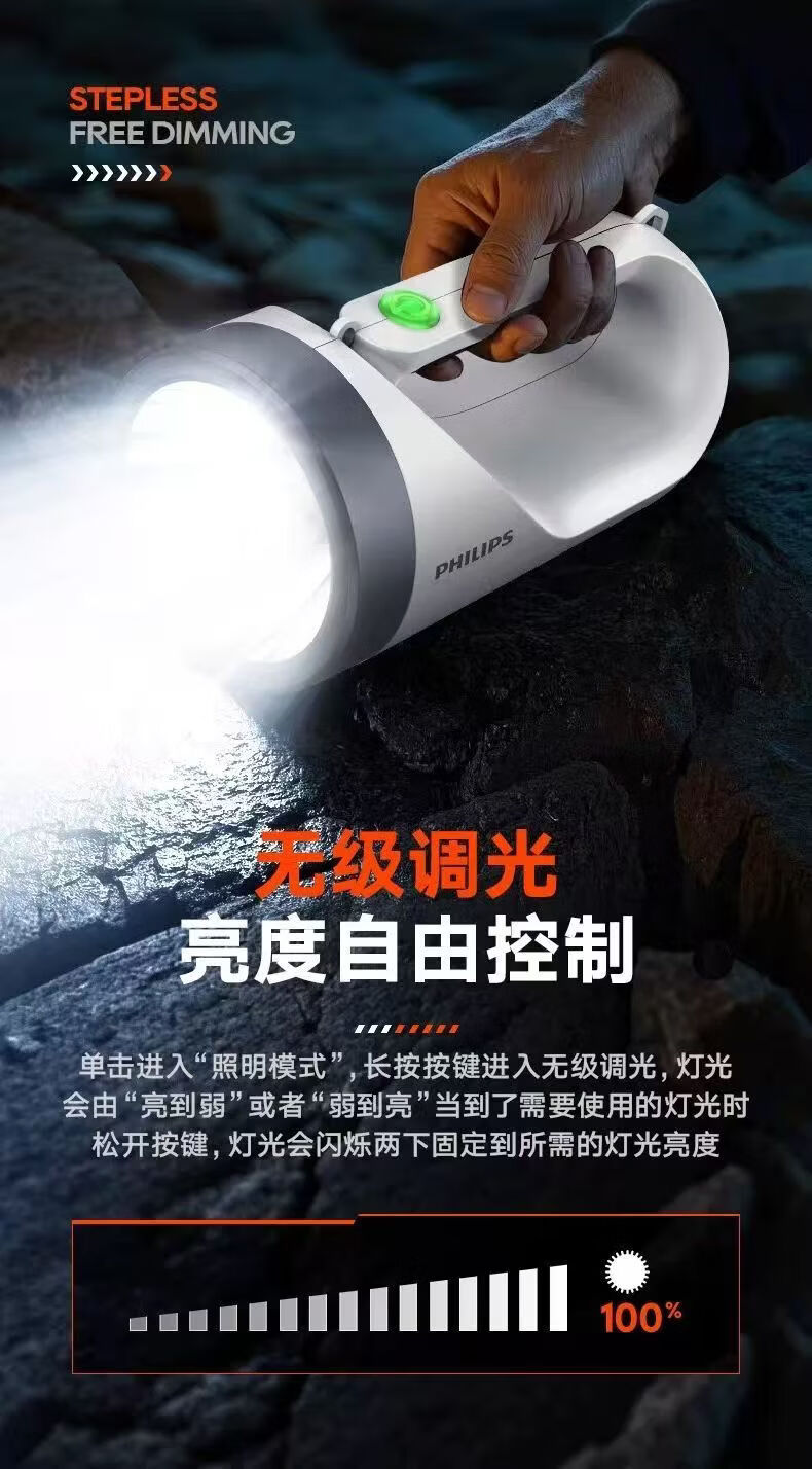 飞利浦(PHILIPS)手电筒强光广角远射超亮便携手提探照灯露营巡逻灯SFL3441W 5W/3600毫安/SFL3441W
